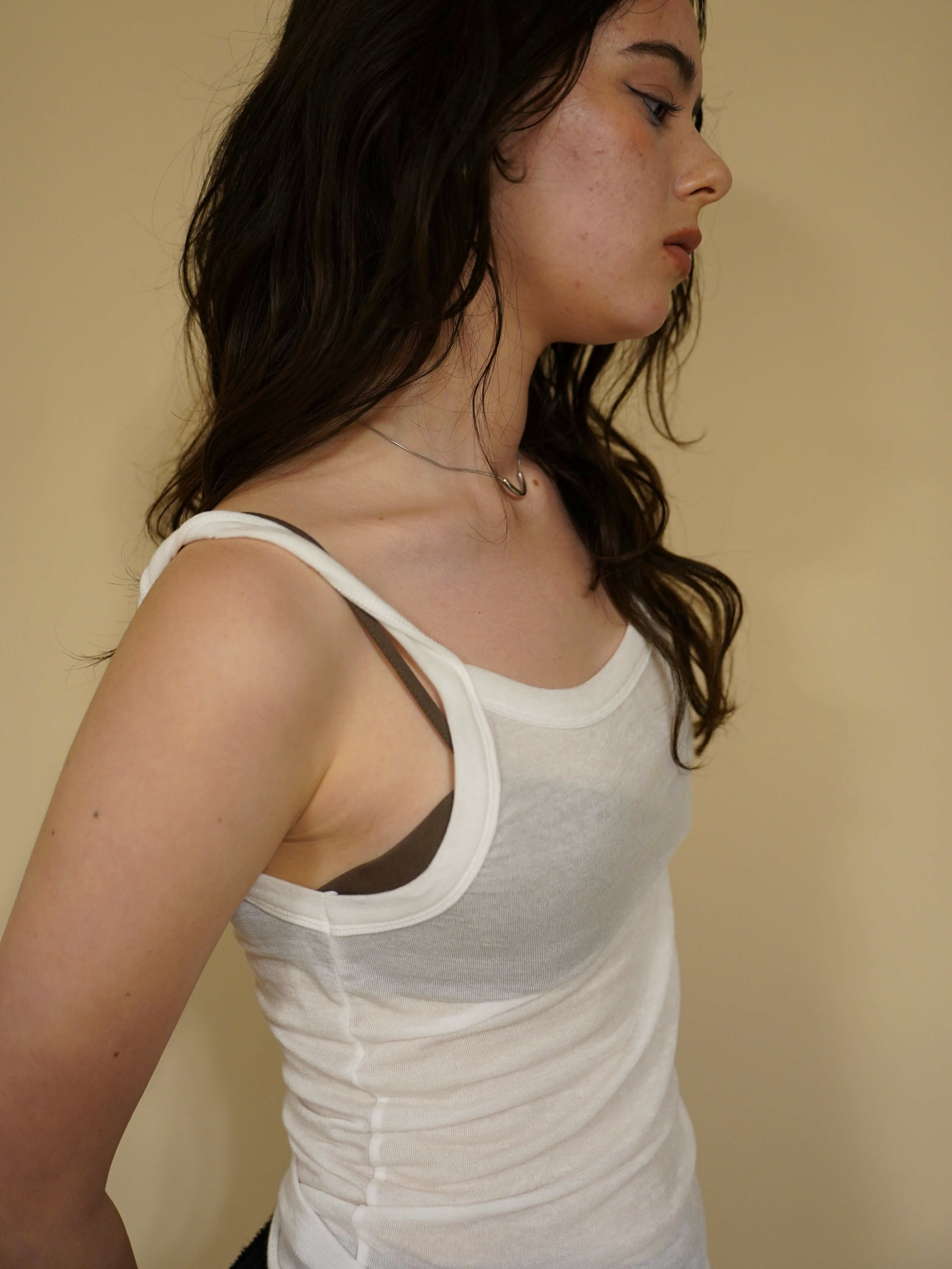 シンプルながらも、肩紐のねじりデザインが目を引くキャミソール。