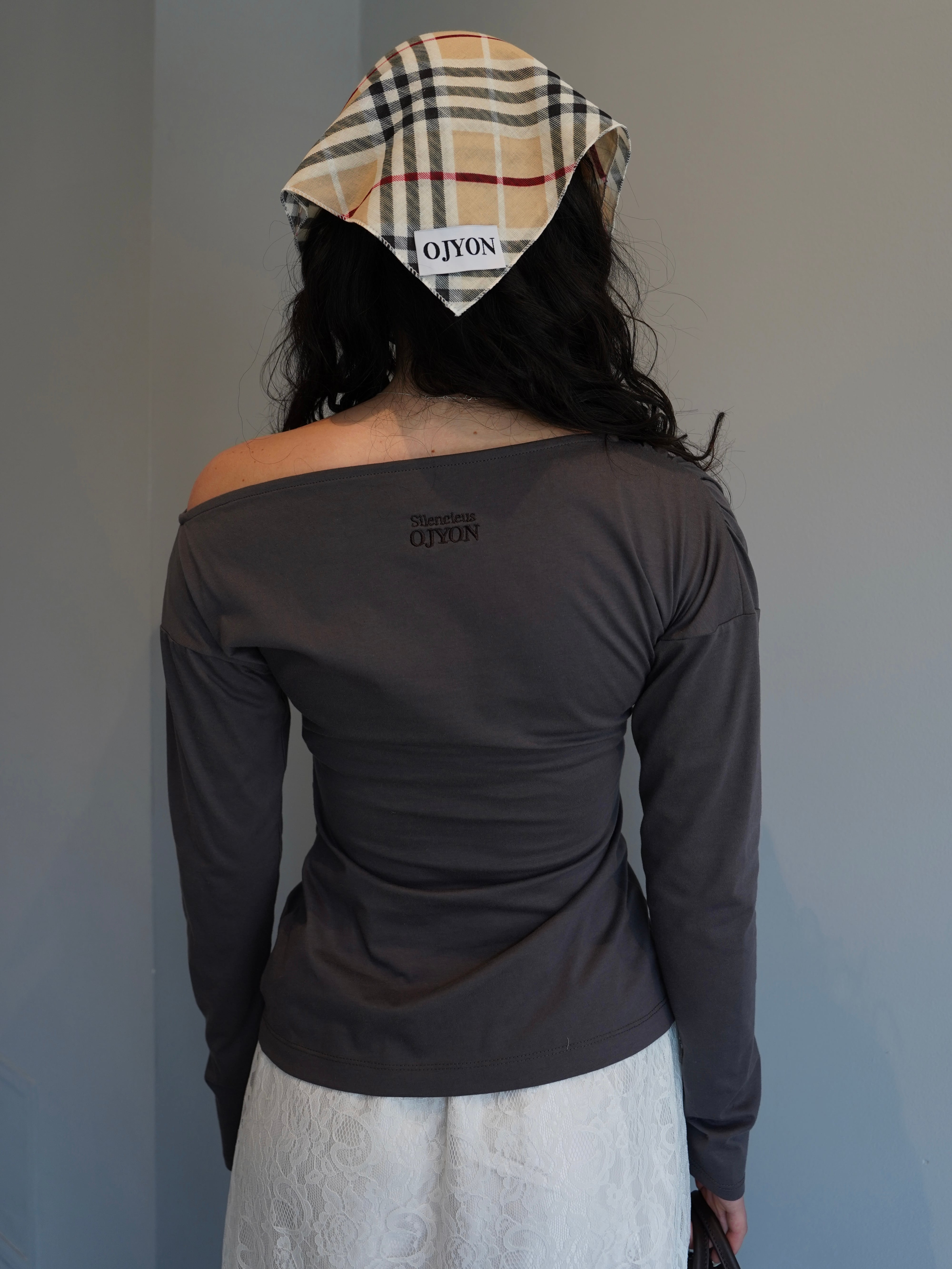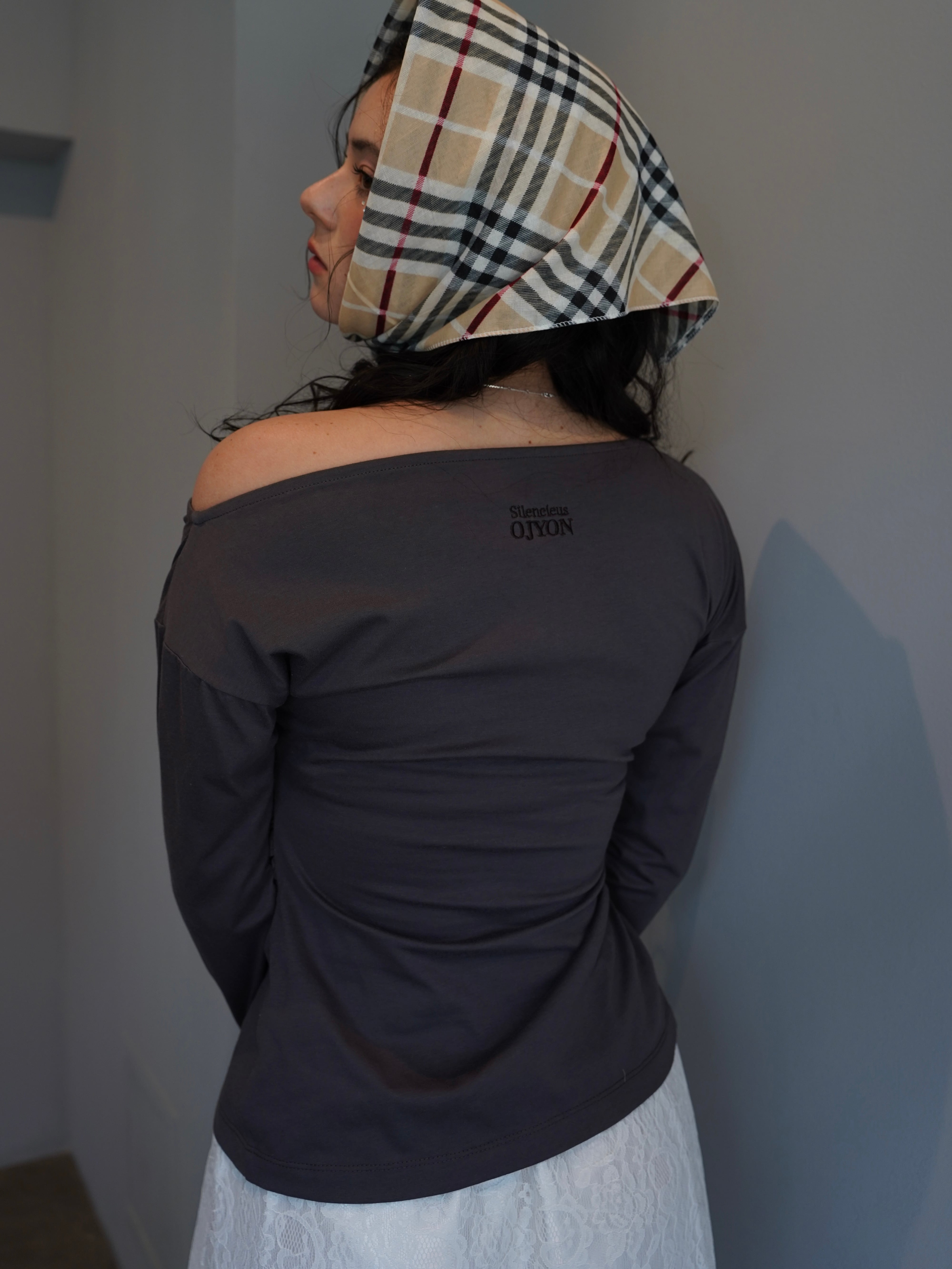 コレクションタイトル “Silencieuse”の刺繍をバックデザインに施した、デザイントップス。