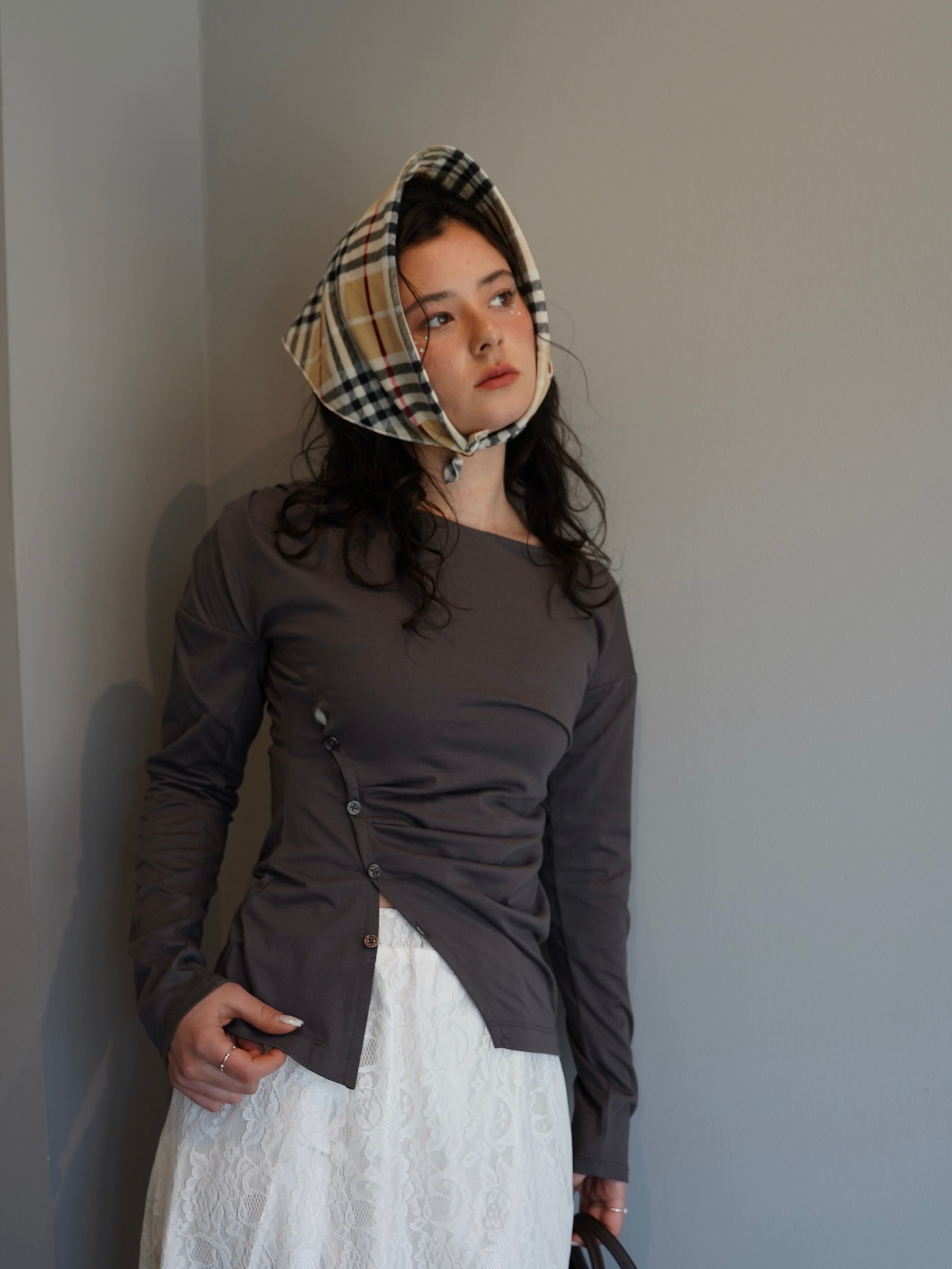 たっぷりとギャザーを寄せることで、ロンTでありながらも動きのあるシルエットを実現。