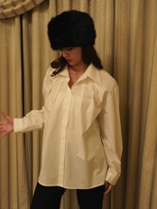 フロントにタックを入れ、立体的なシルエットに仕上げたシャツ。