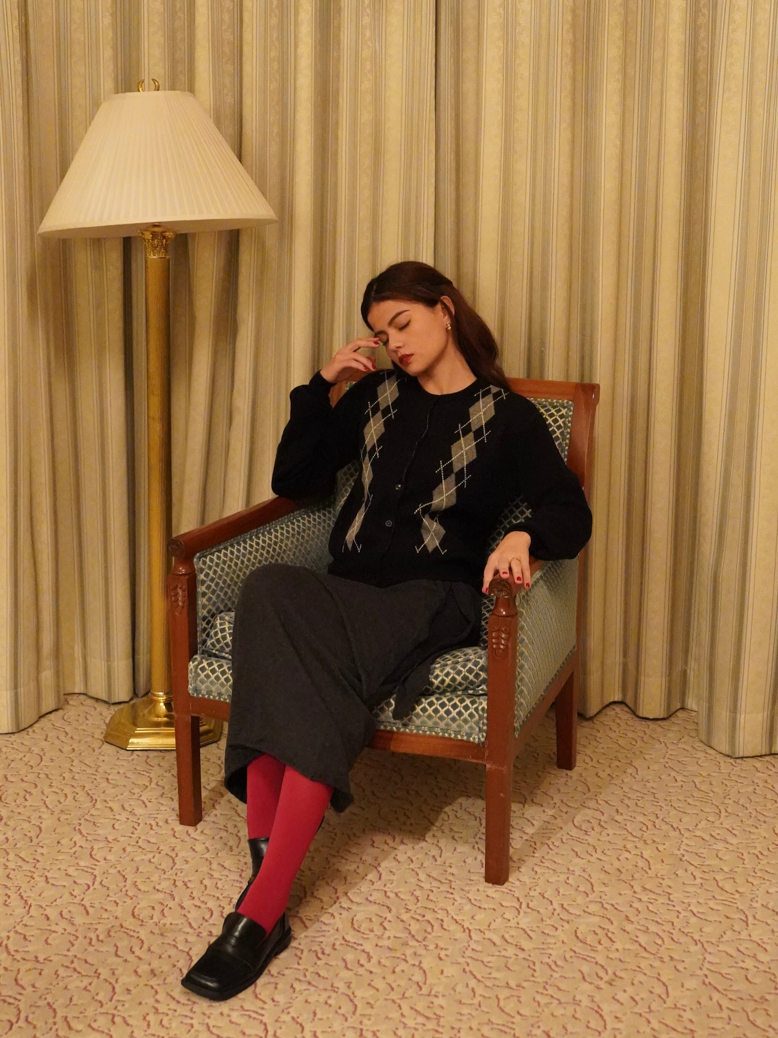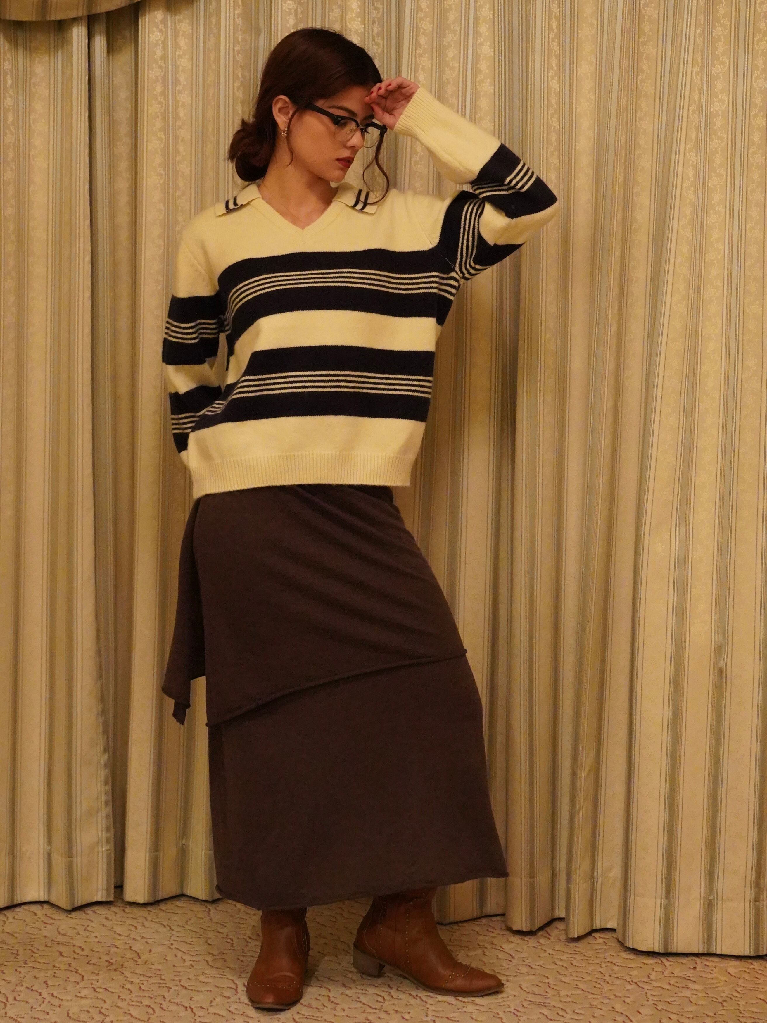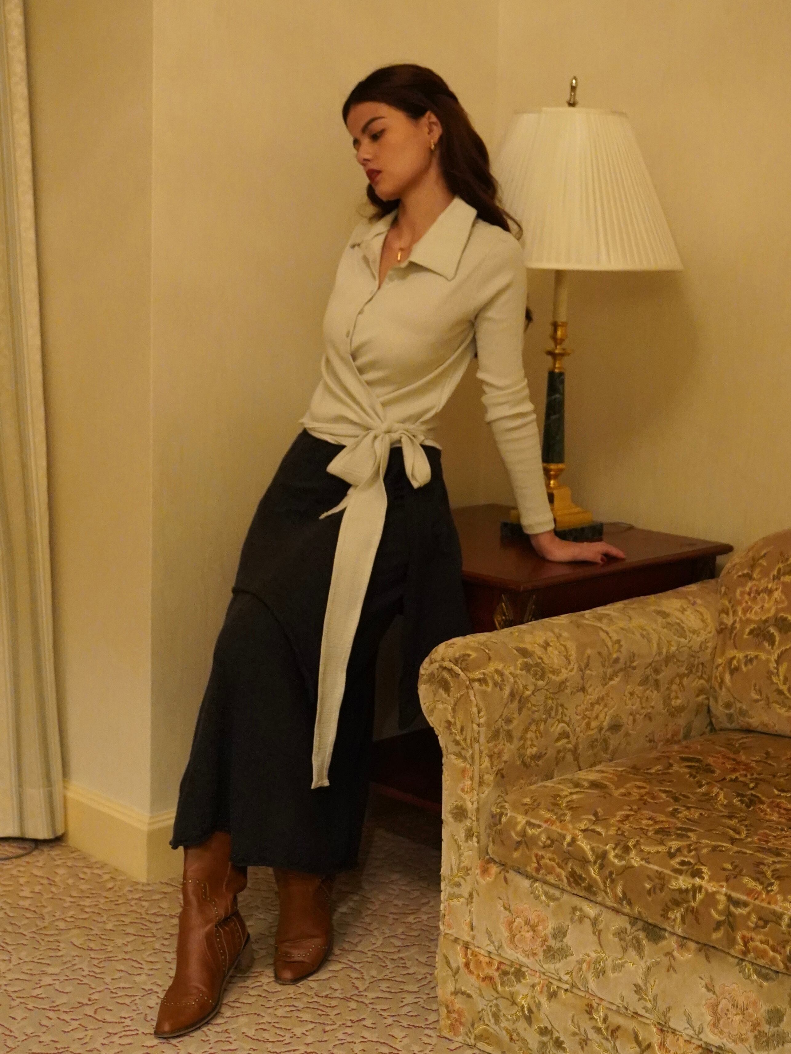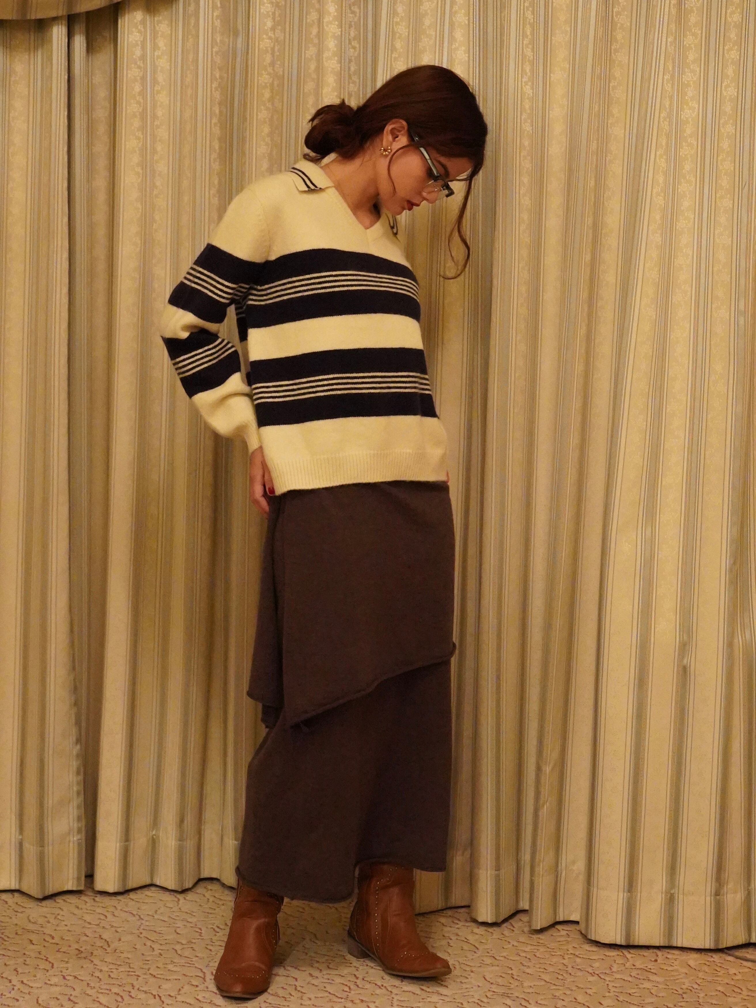 ニットやシャツとの相性も抜群で、秋冬のスタイリングをアップデートしてくれる万能アイテムです。