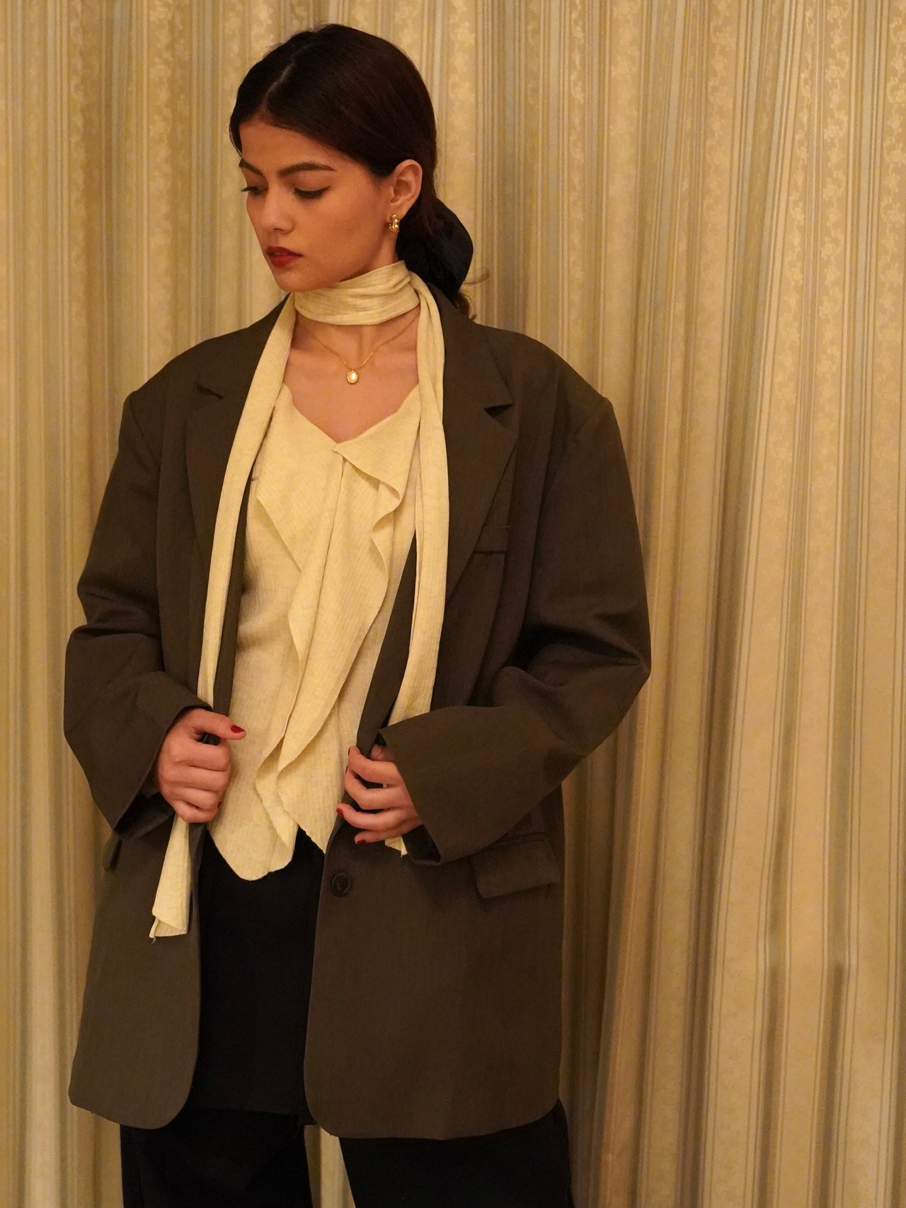 オーバーサイズシルエットがこなれ感を演出するジャケット。