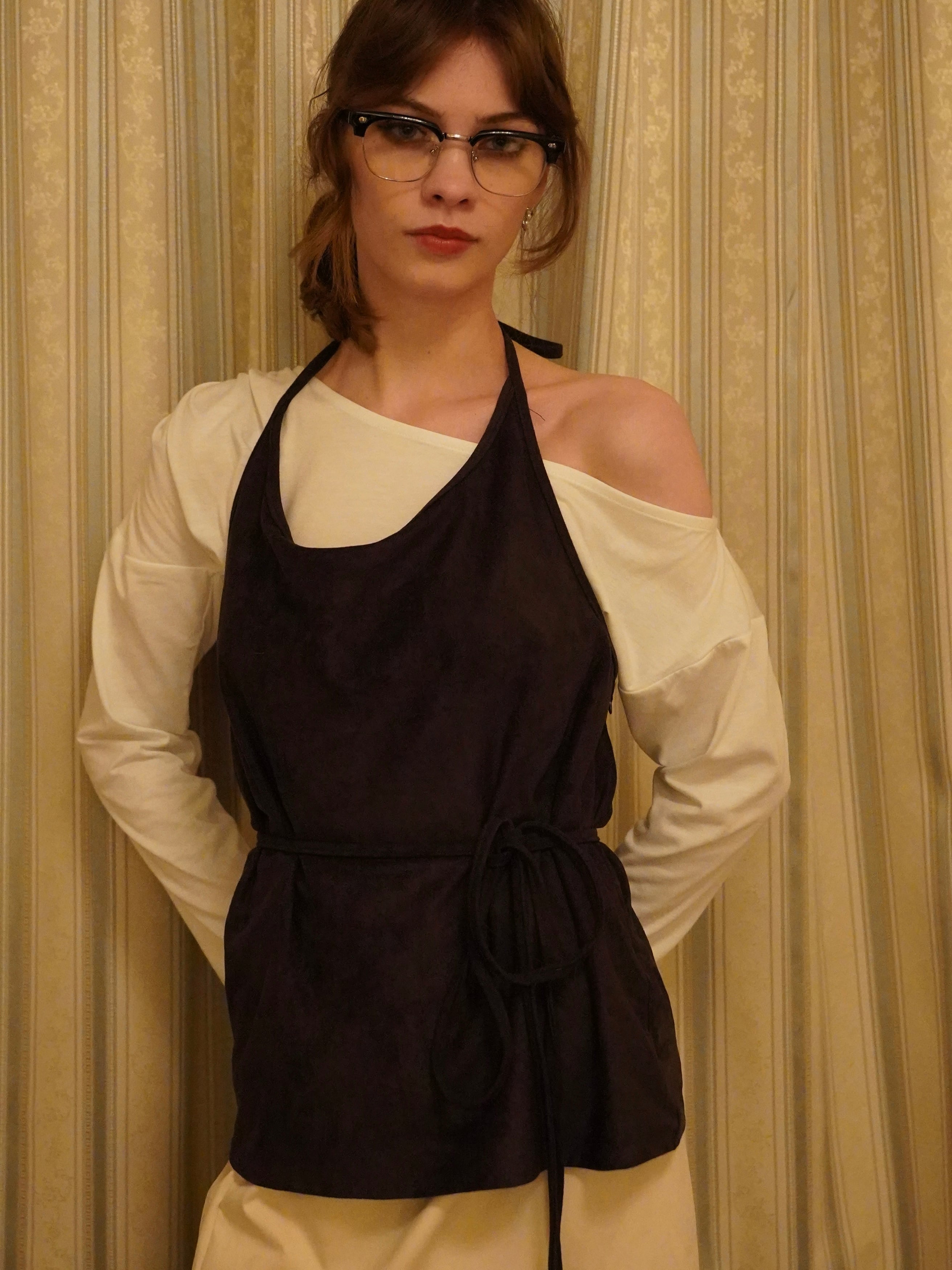 やわらかなスウェードタッチ素材で仕立てたビスチェトップス。