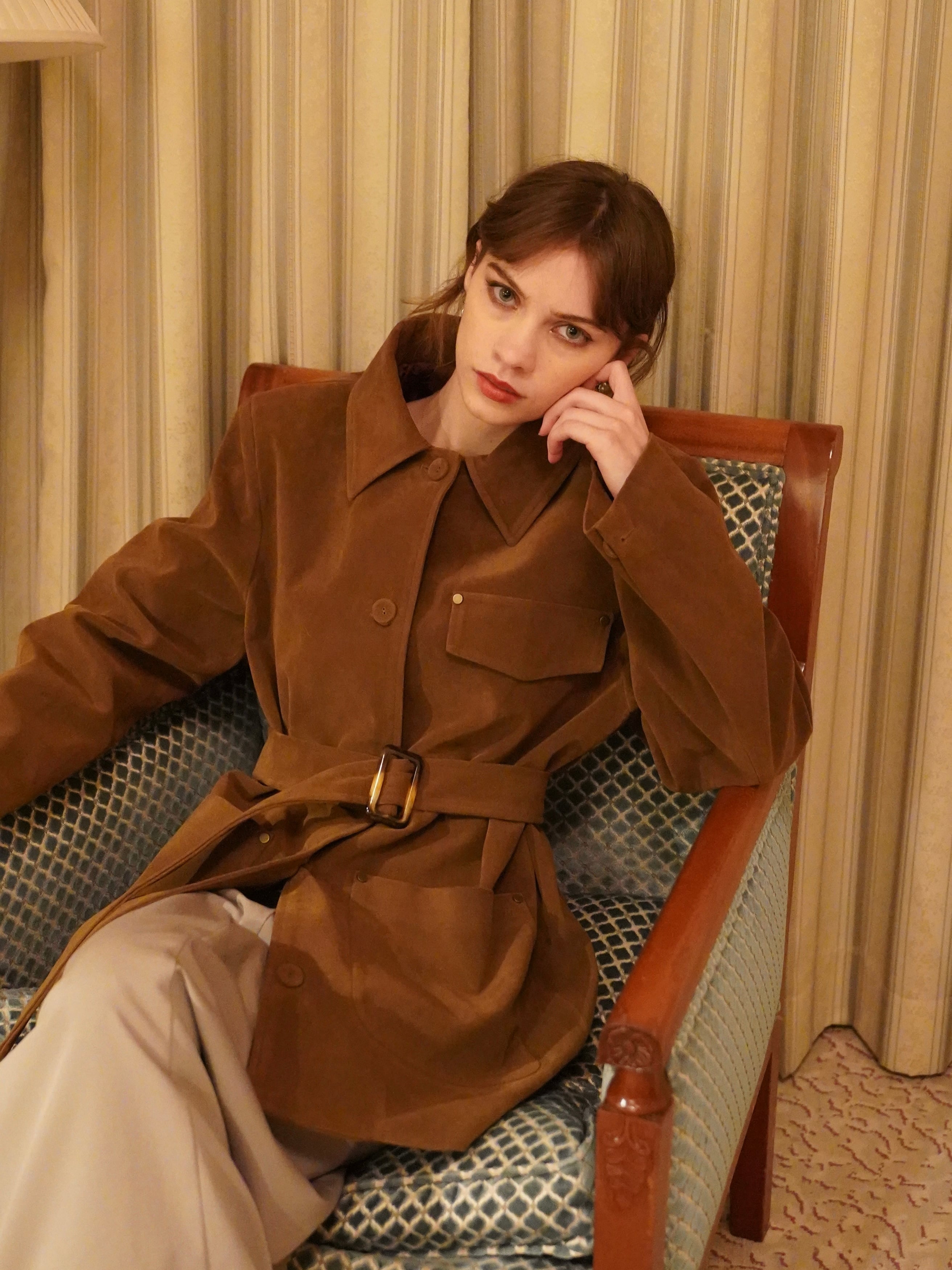 ハリ感のあるスエードタッチ素材で仕立てた、シーズンムード漂うジャケット。