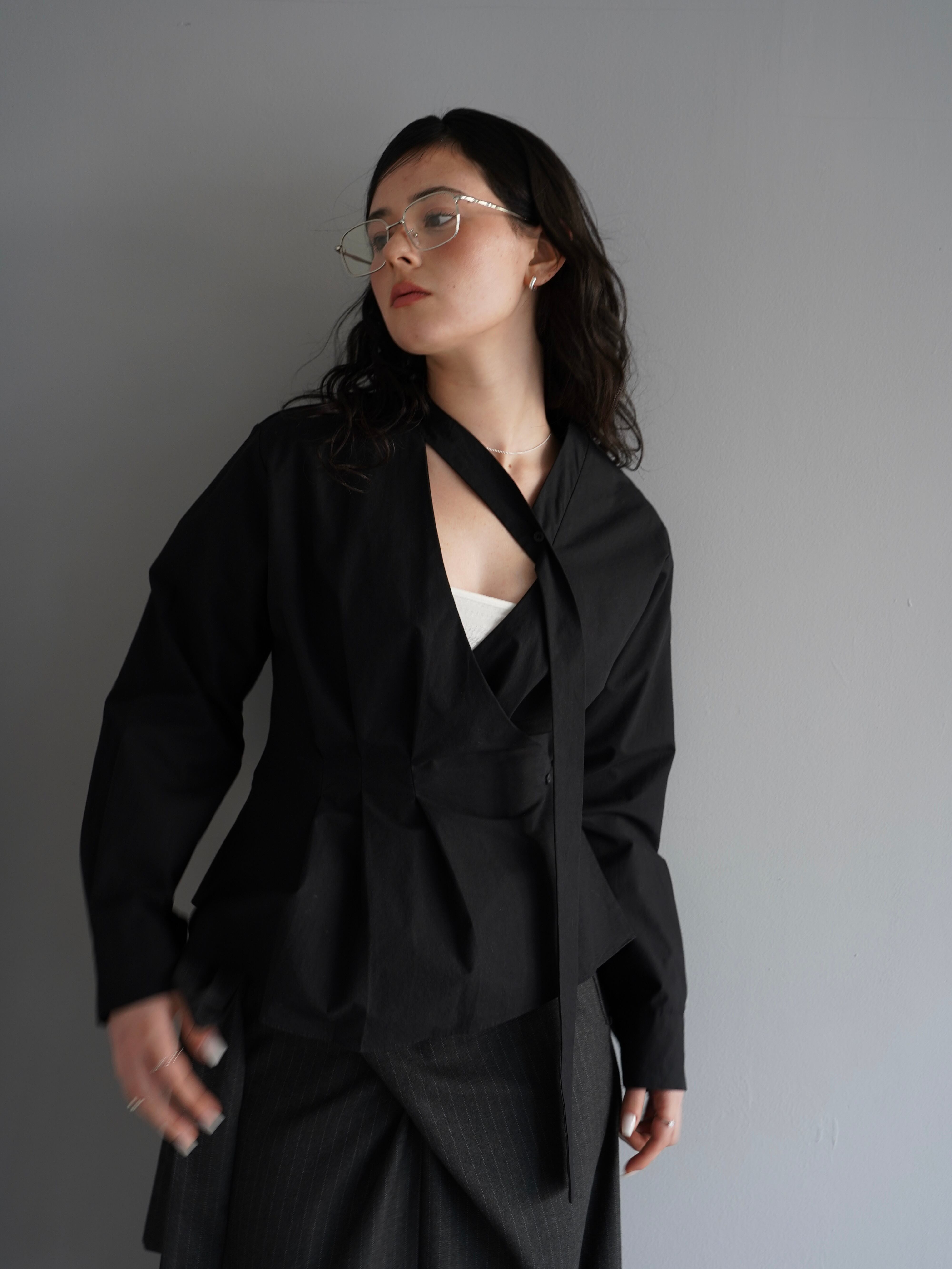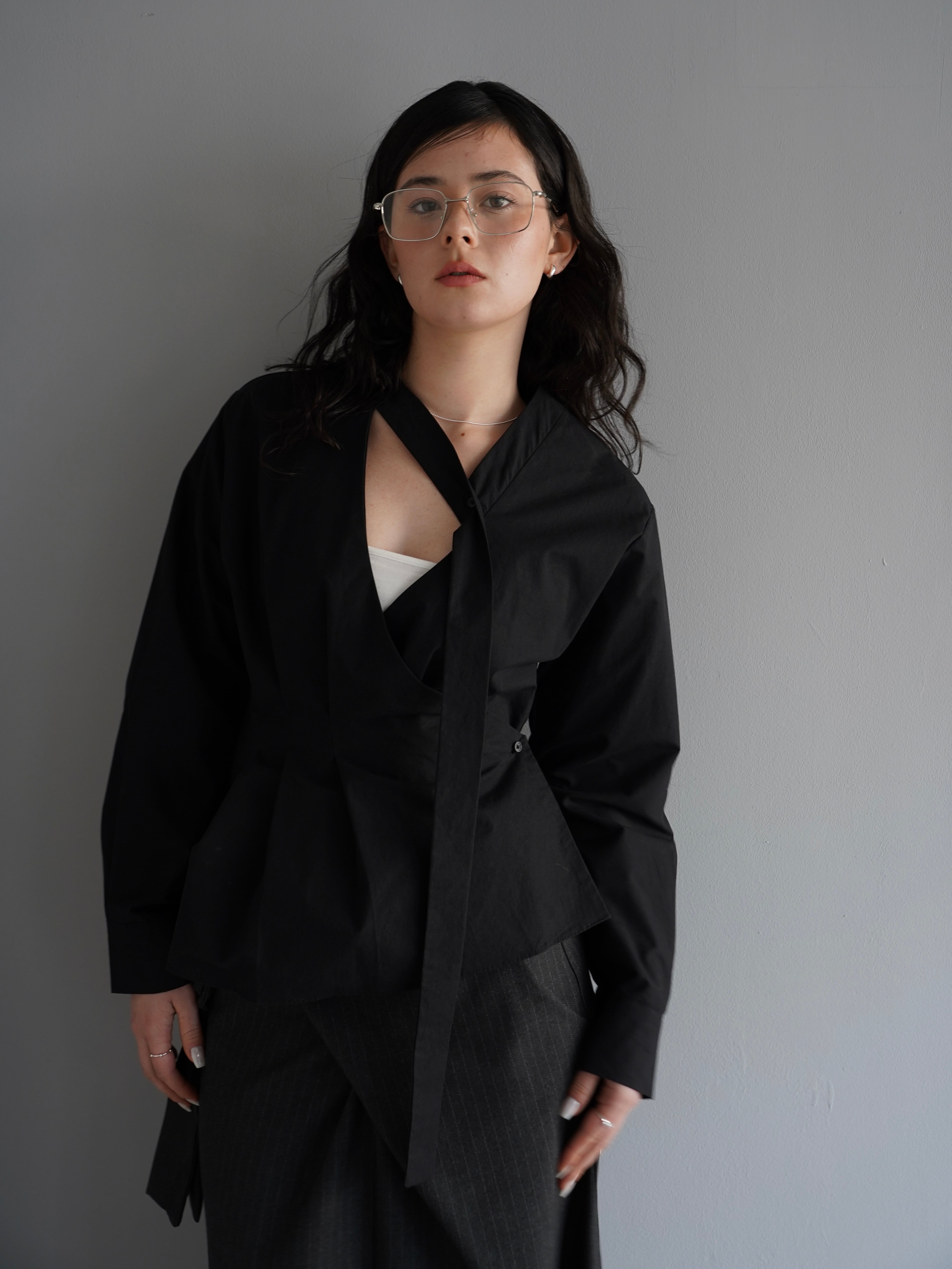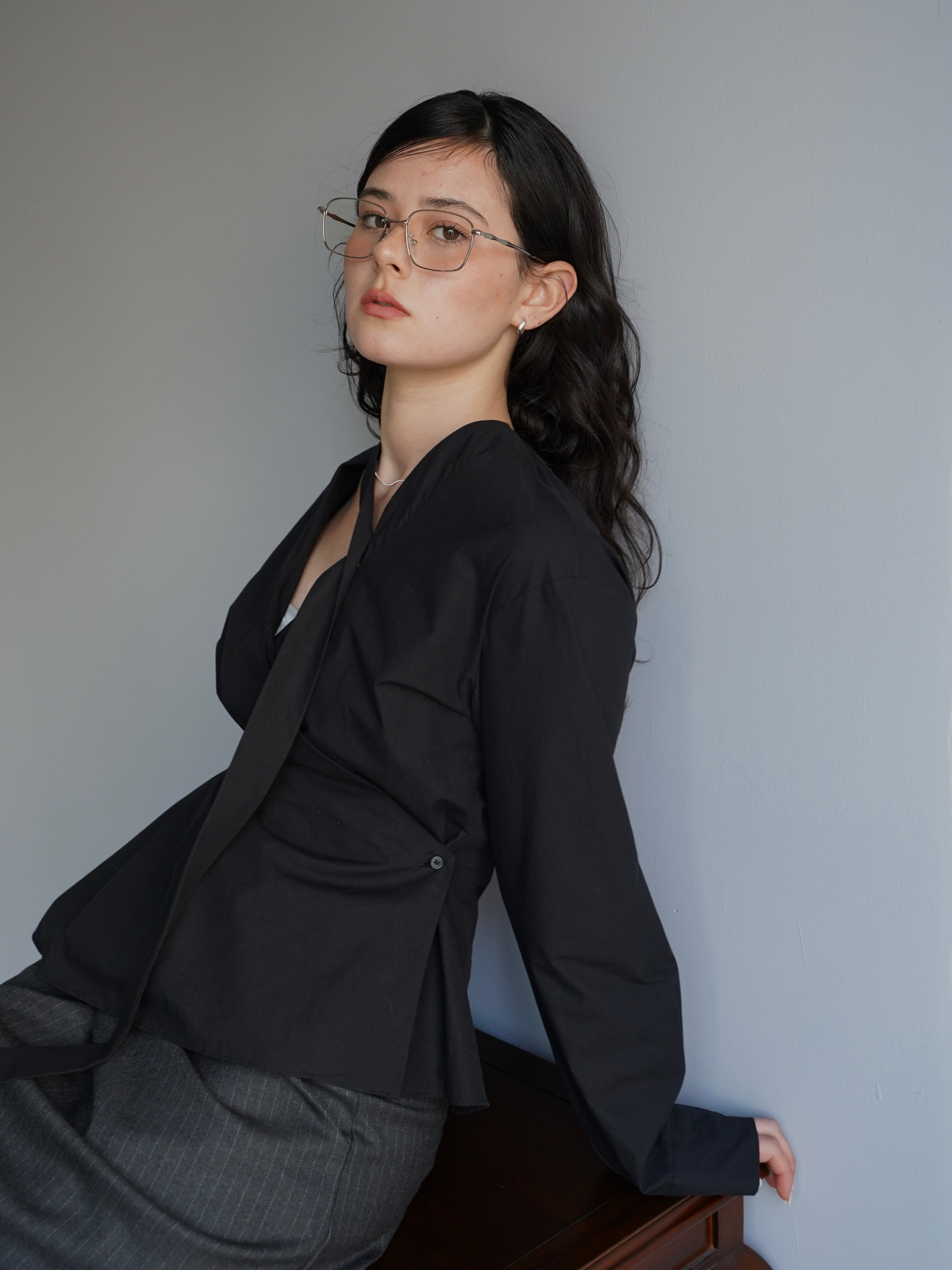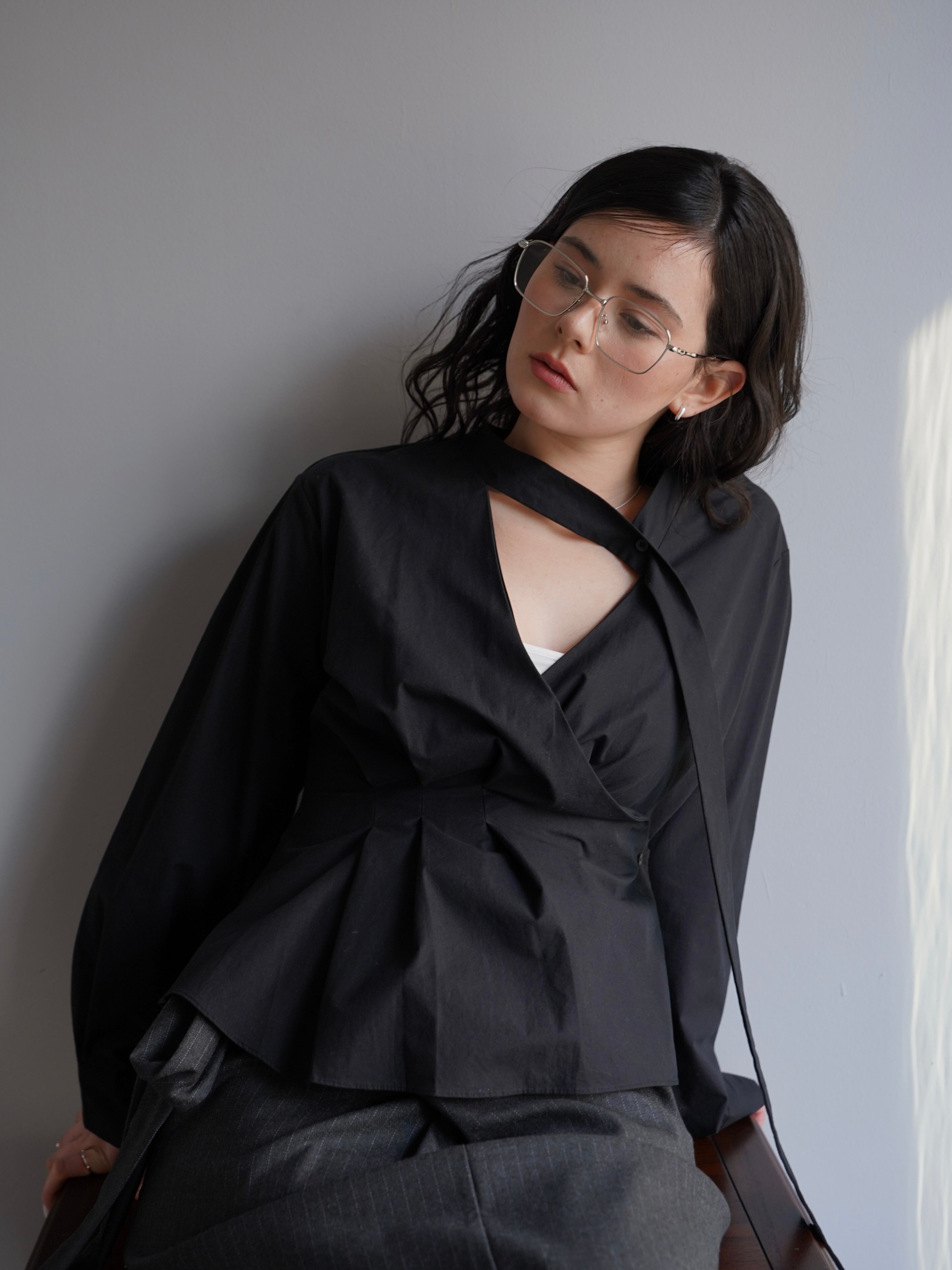 上品でモードな雰囲気が漂う、デザインブラウス。