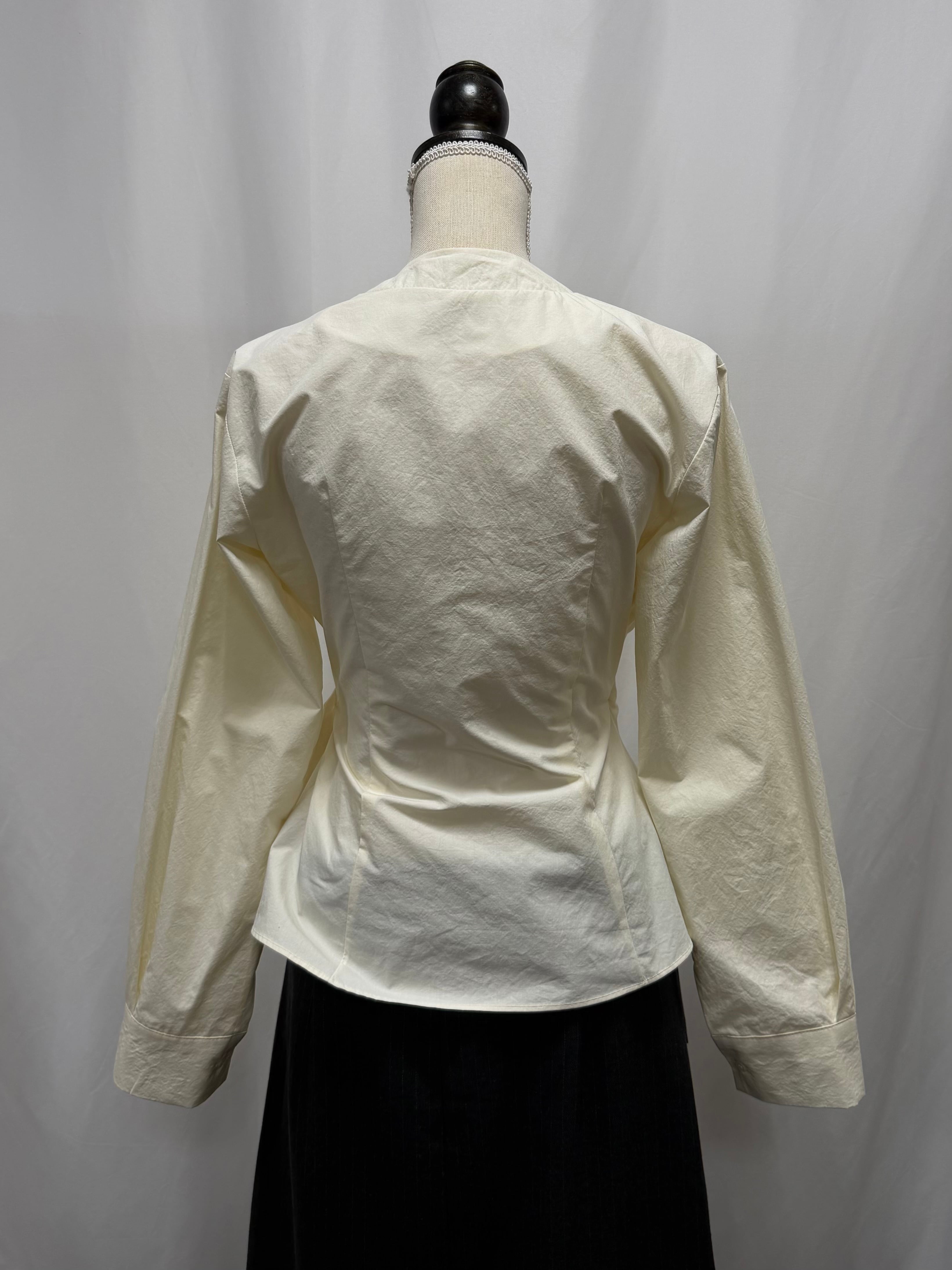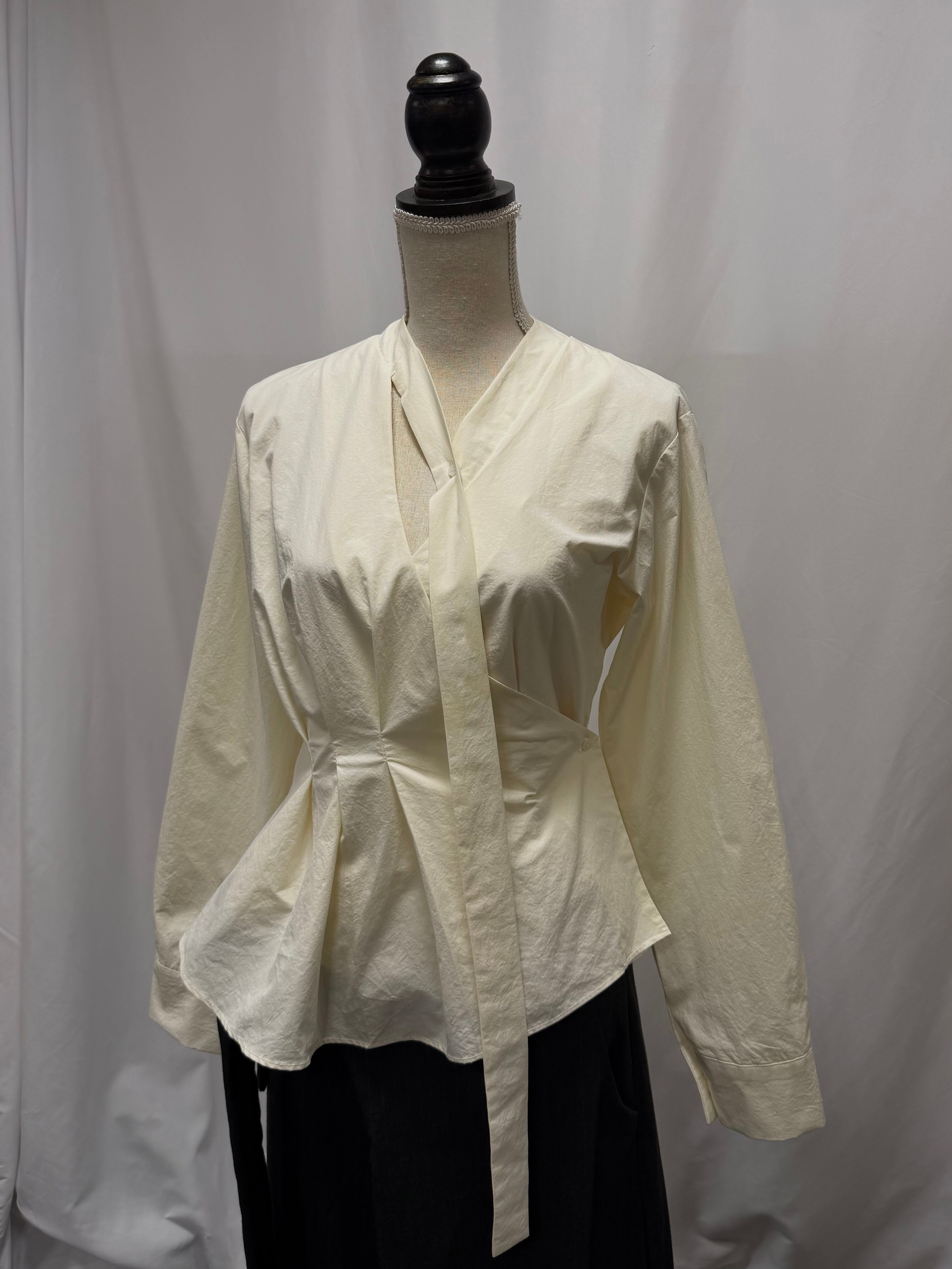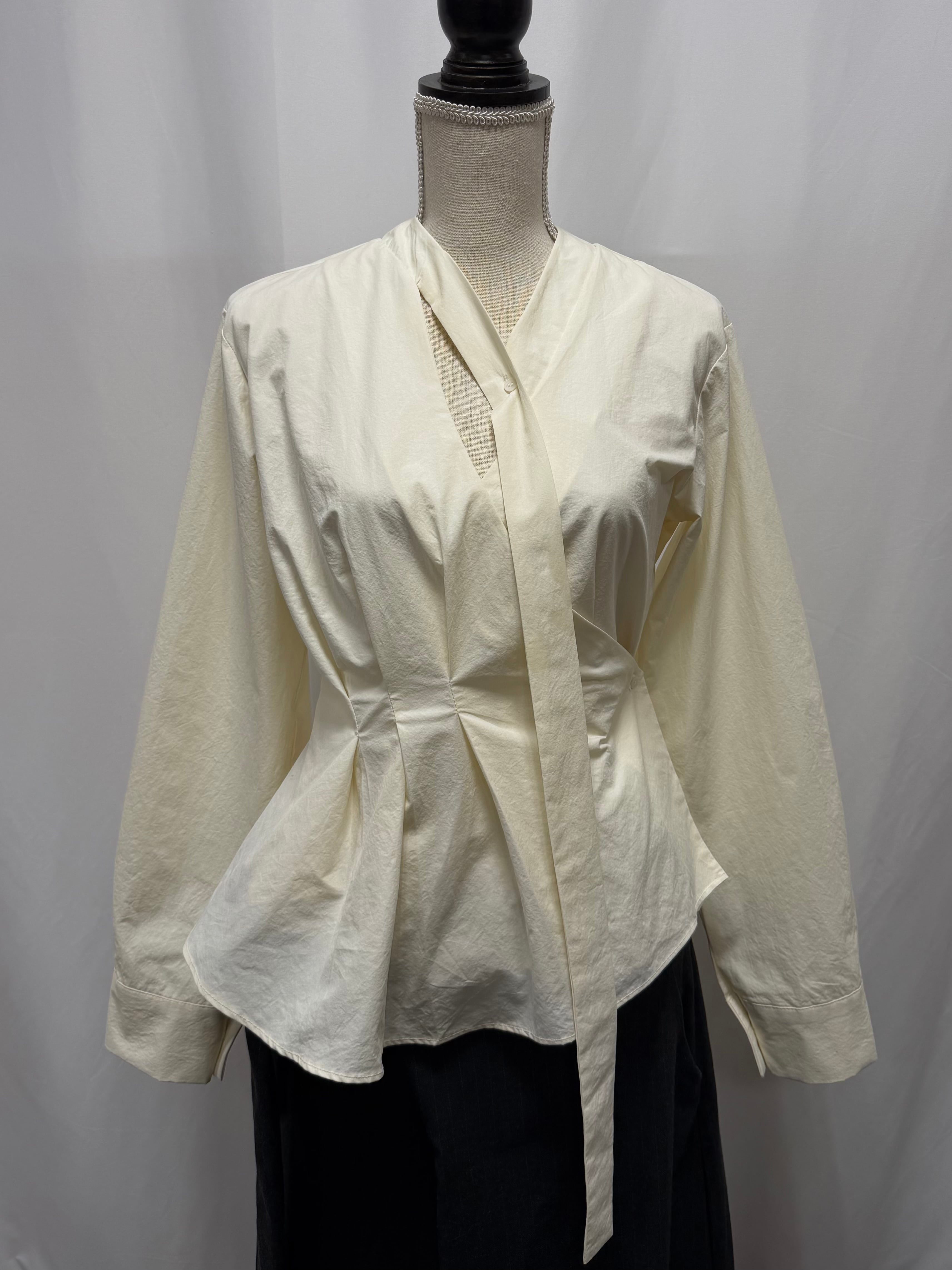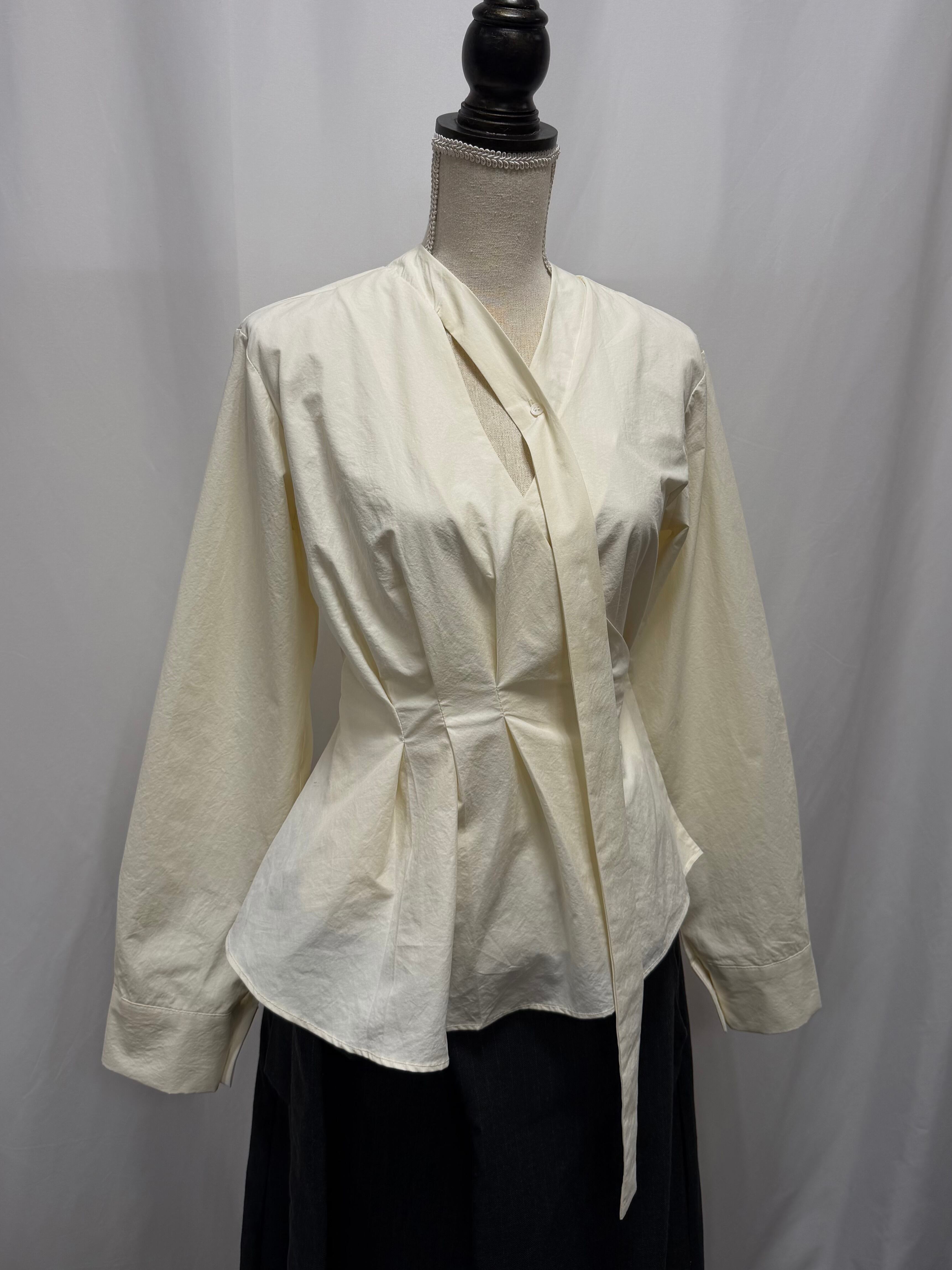 上品でモードな雰囲気が漂う、デザインブラウス。