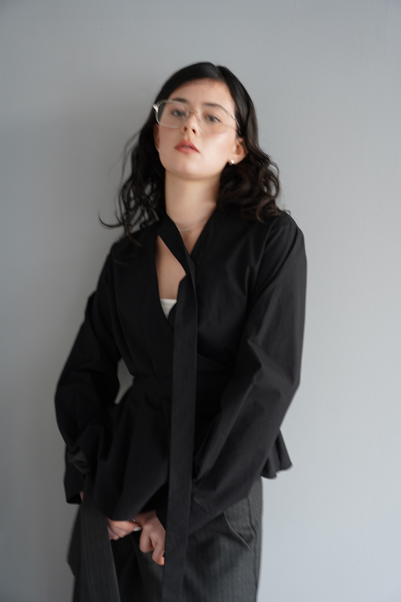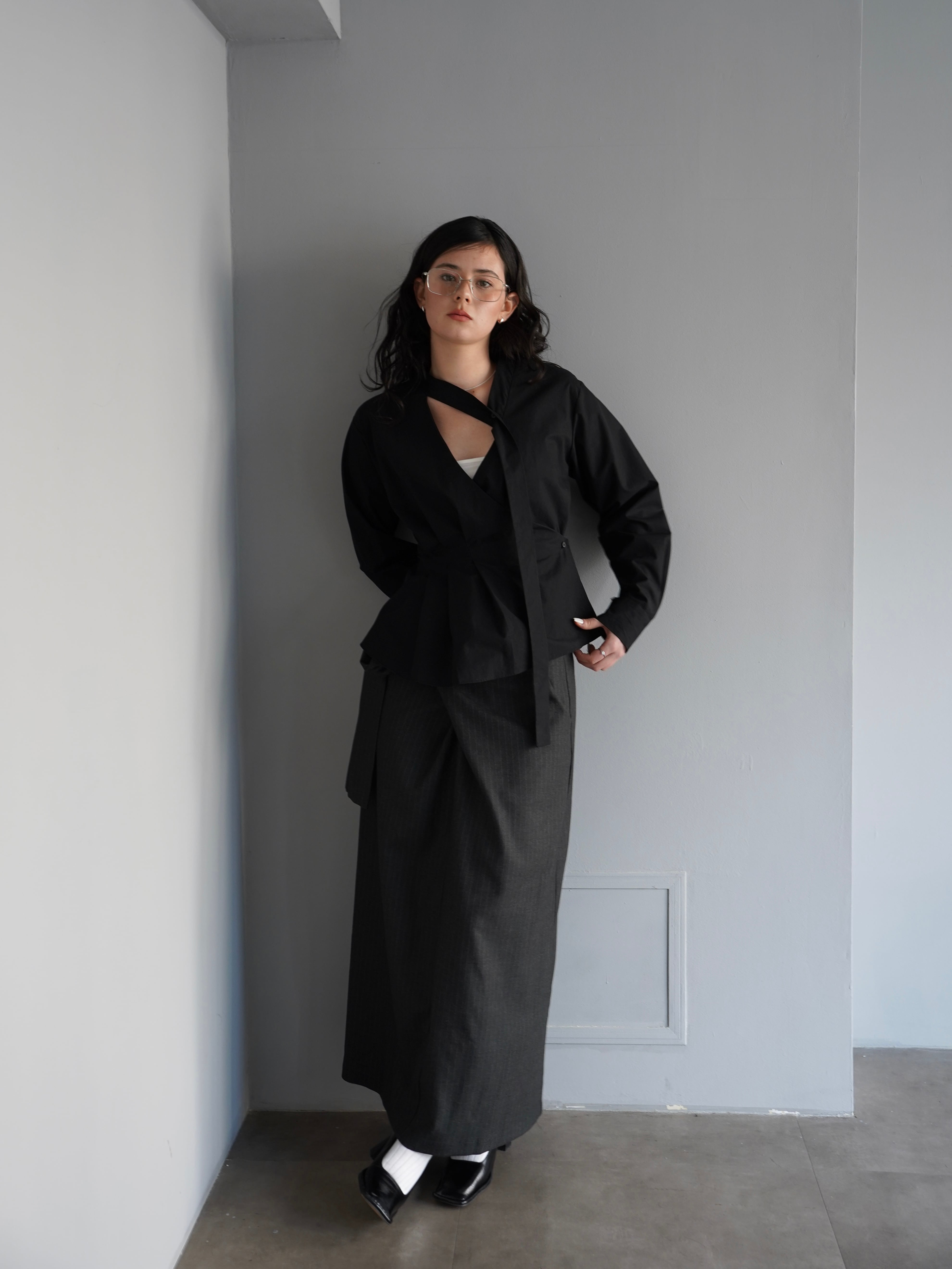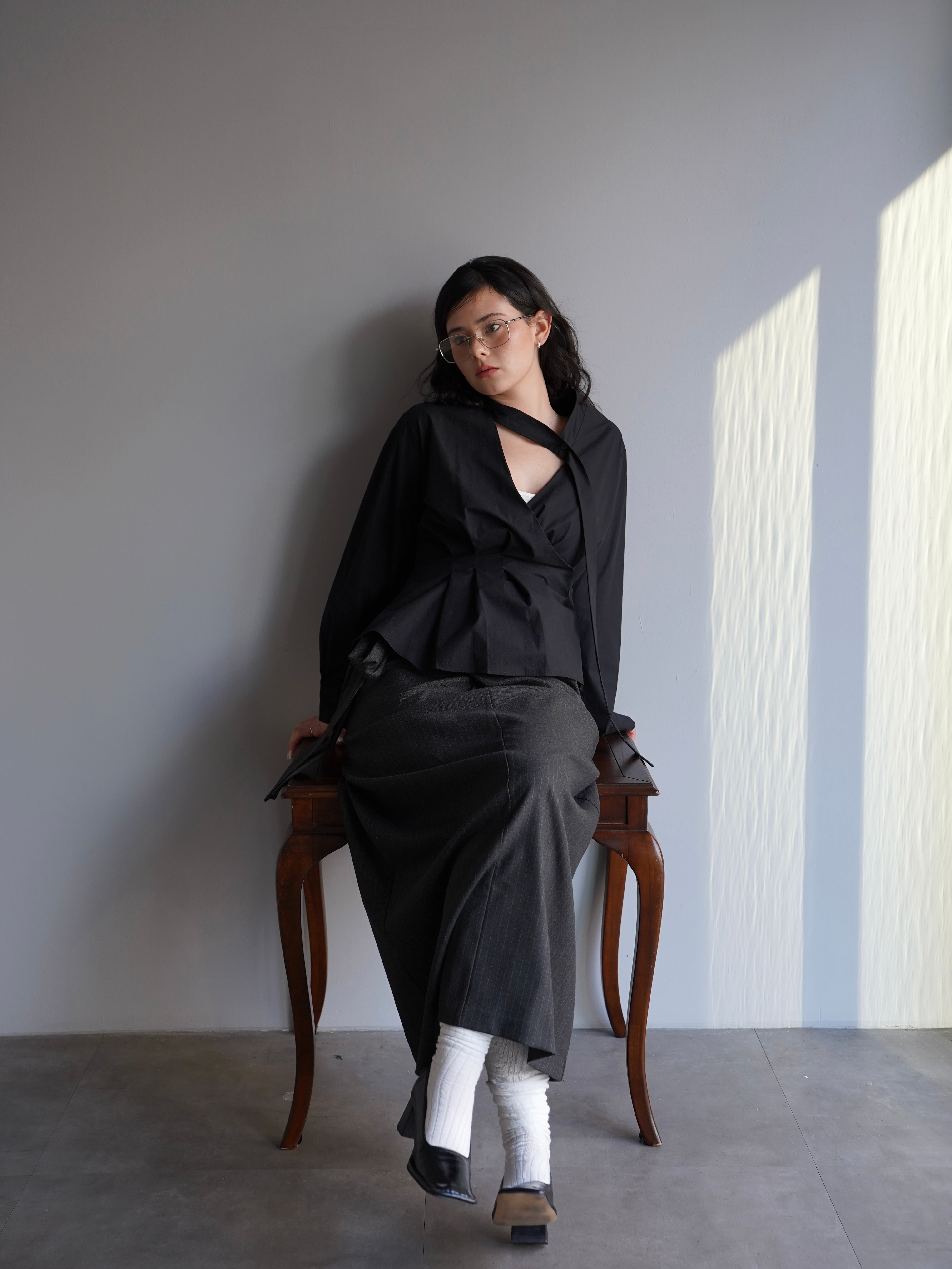 ウエスト部分はさりげなくシェイプされたシルエットで、自然にスタイルアップ。立体的なカッティングが生み出す構築的なフォルムが、1枚で洗練されたバランスを完成させます。