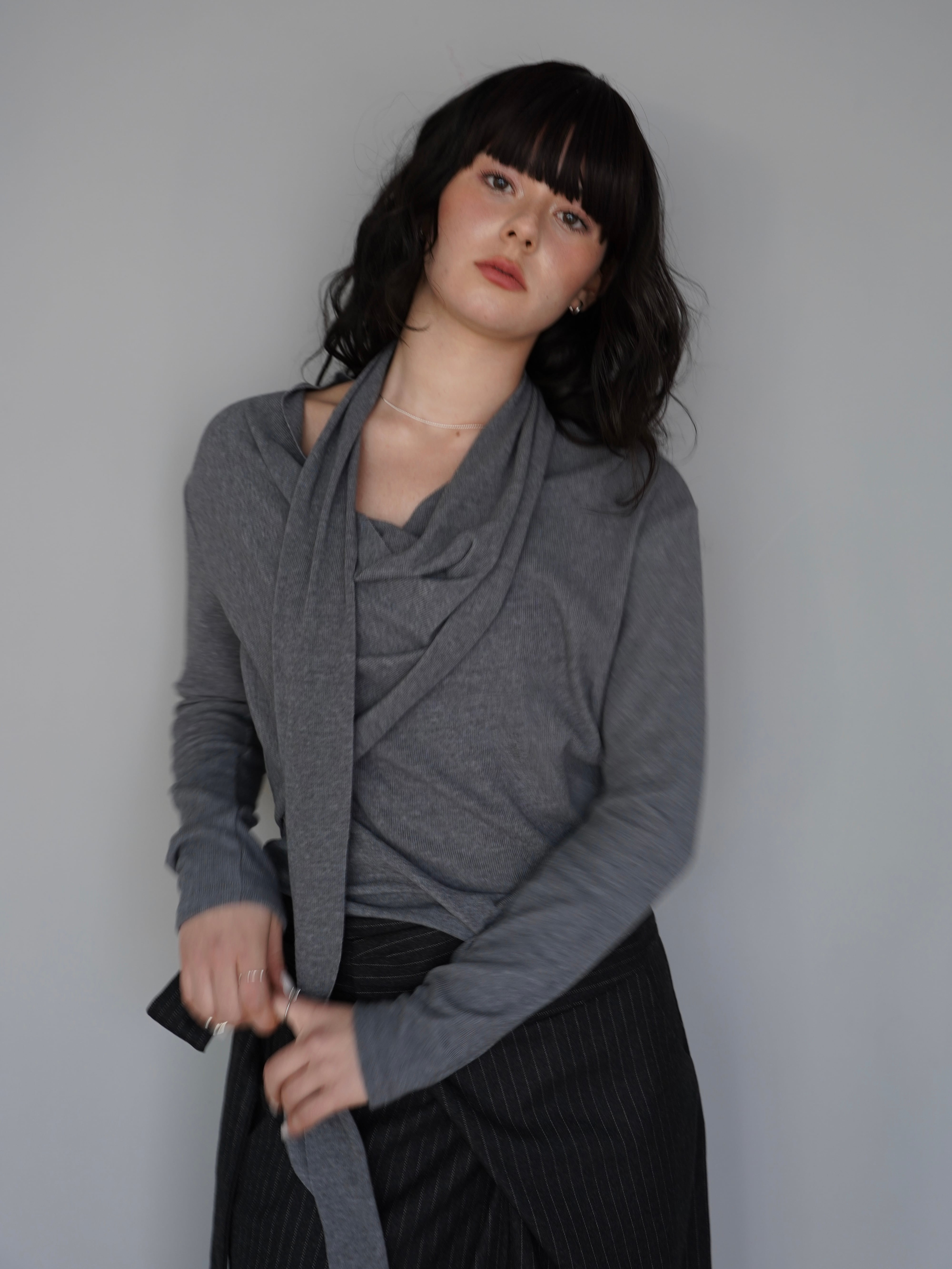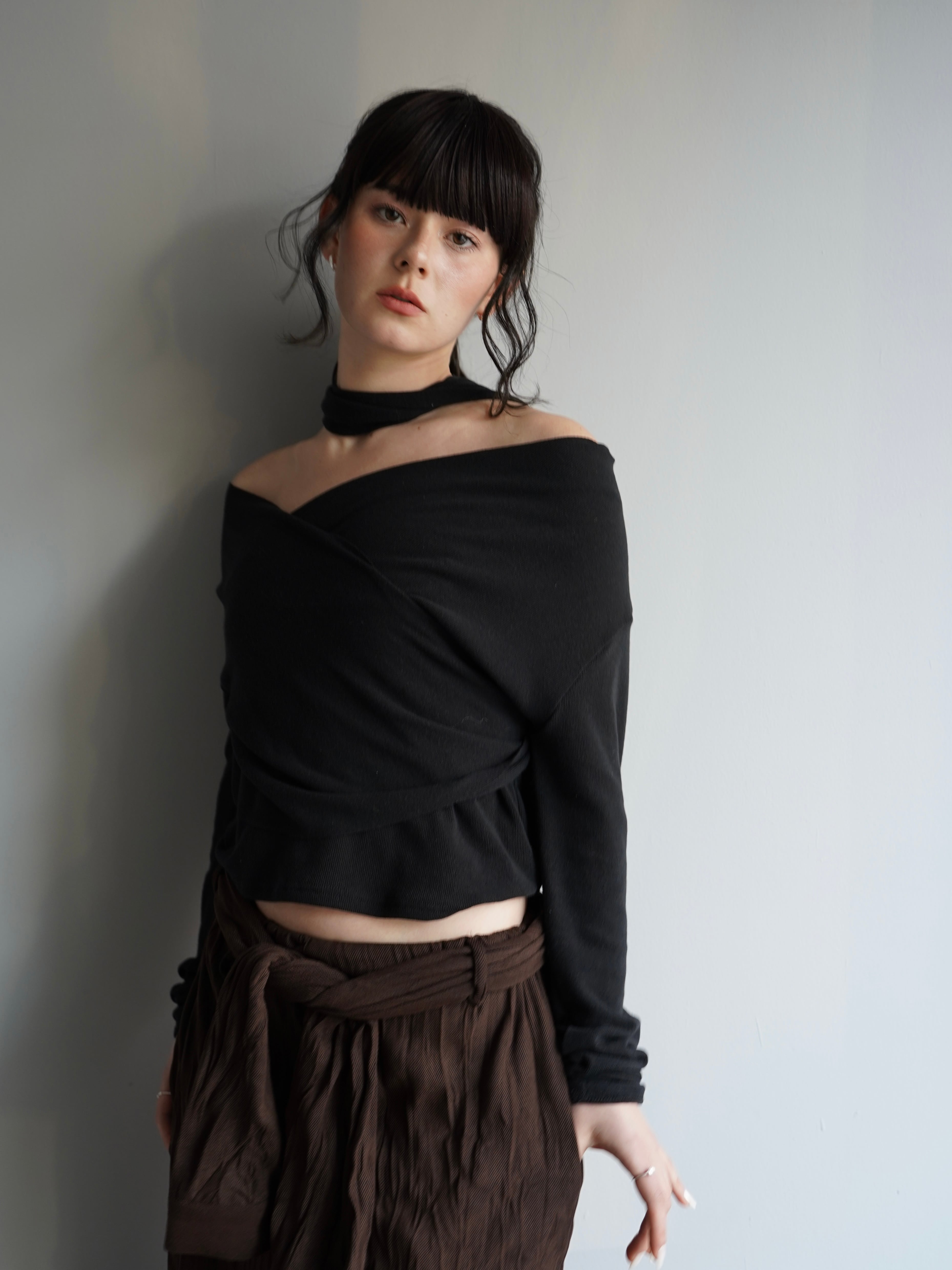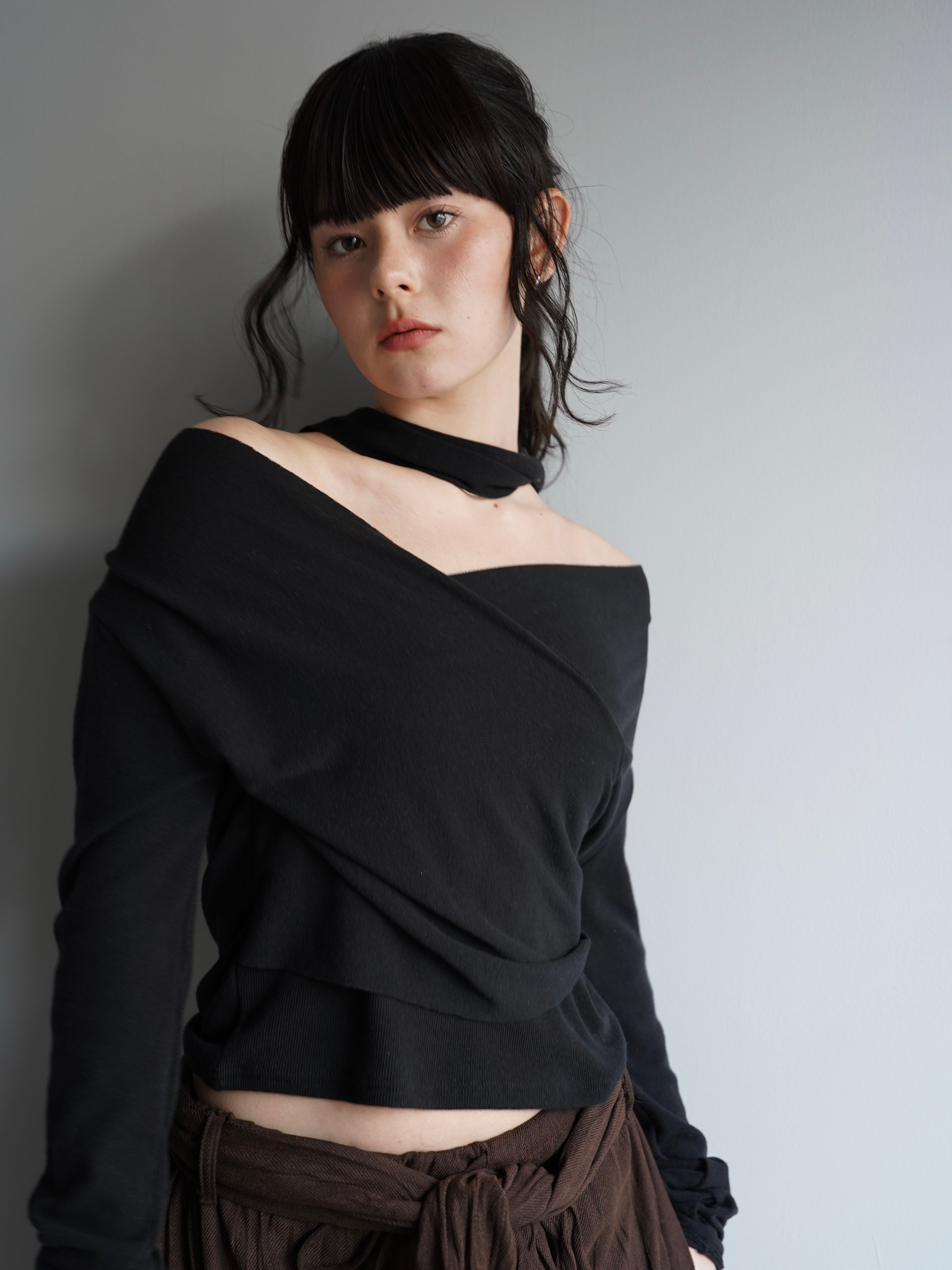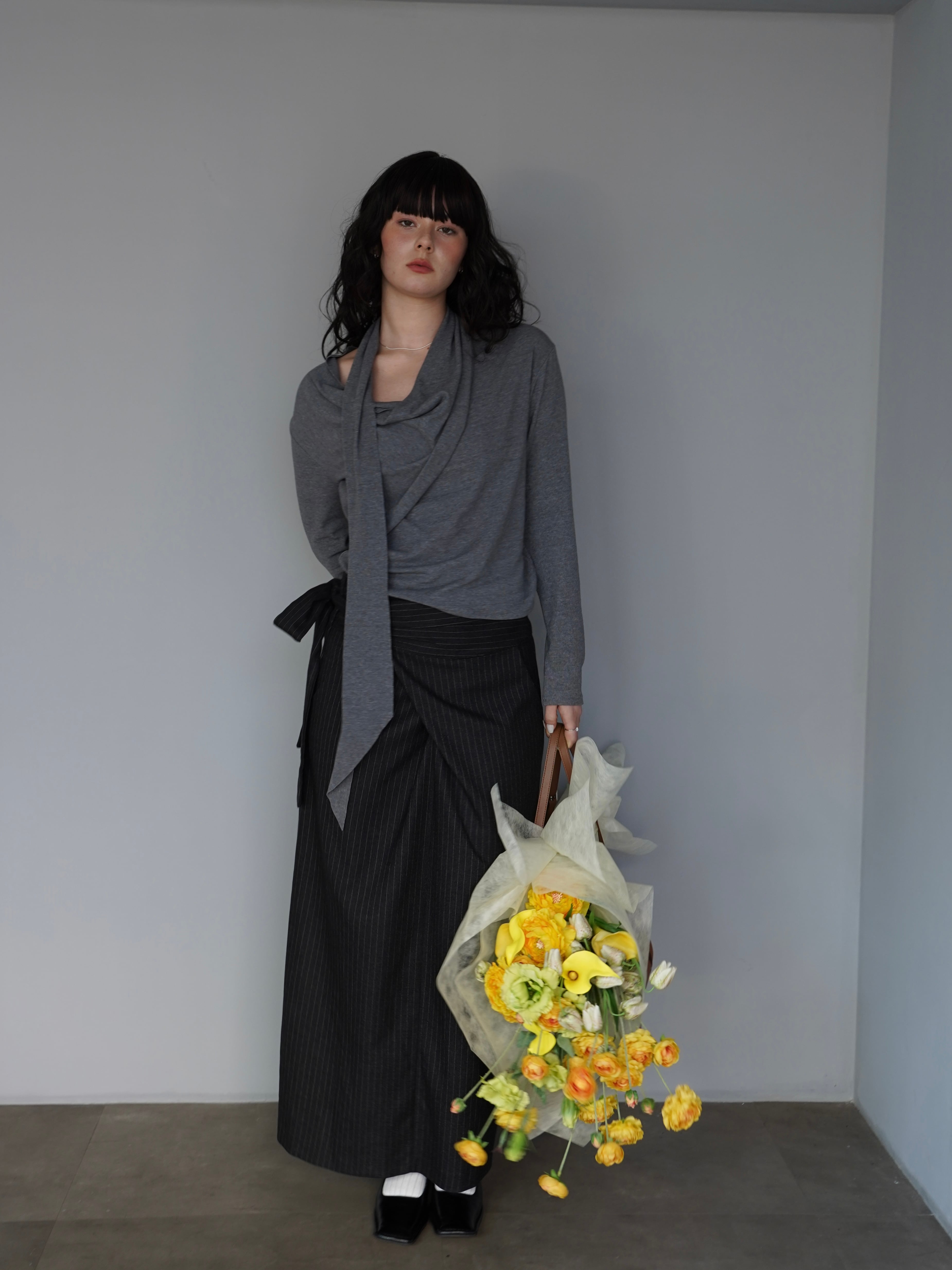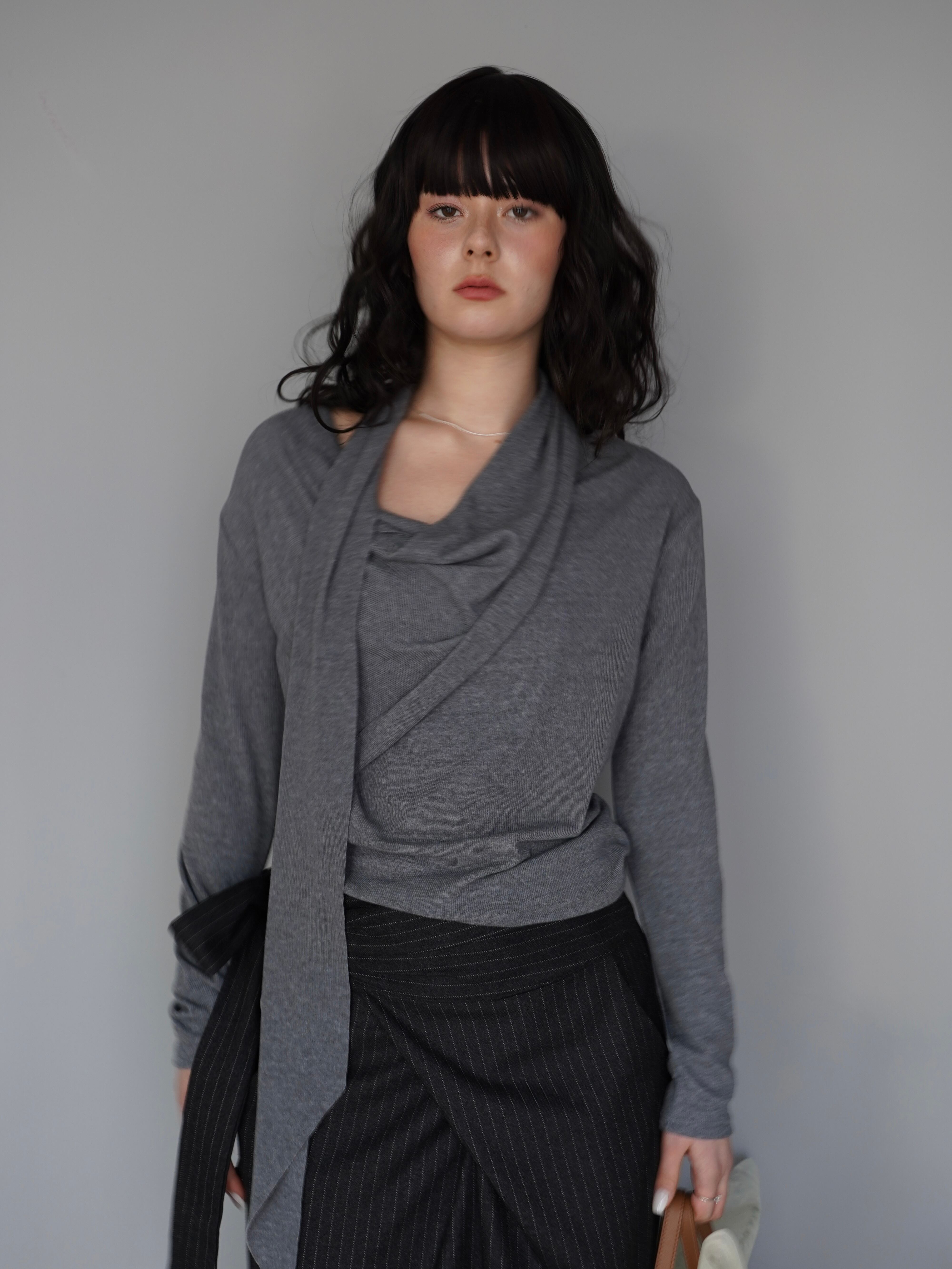 画像のように首元にストールのようなドレープをつくって着るスタイルはもちろん、