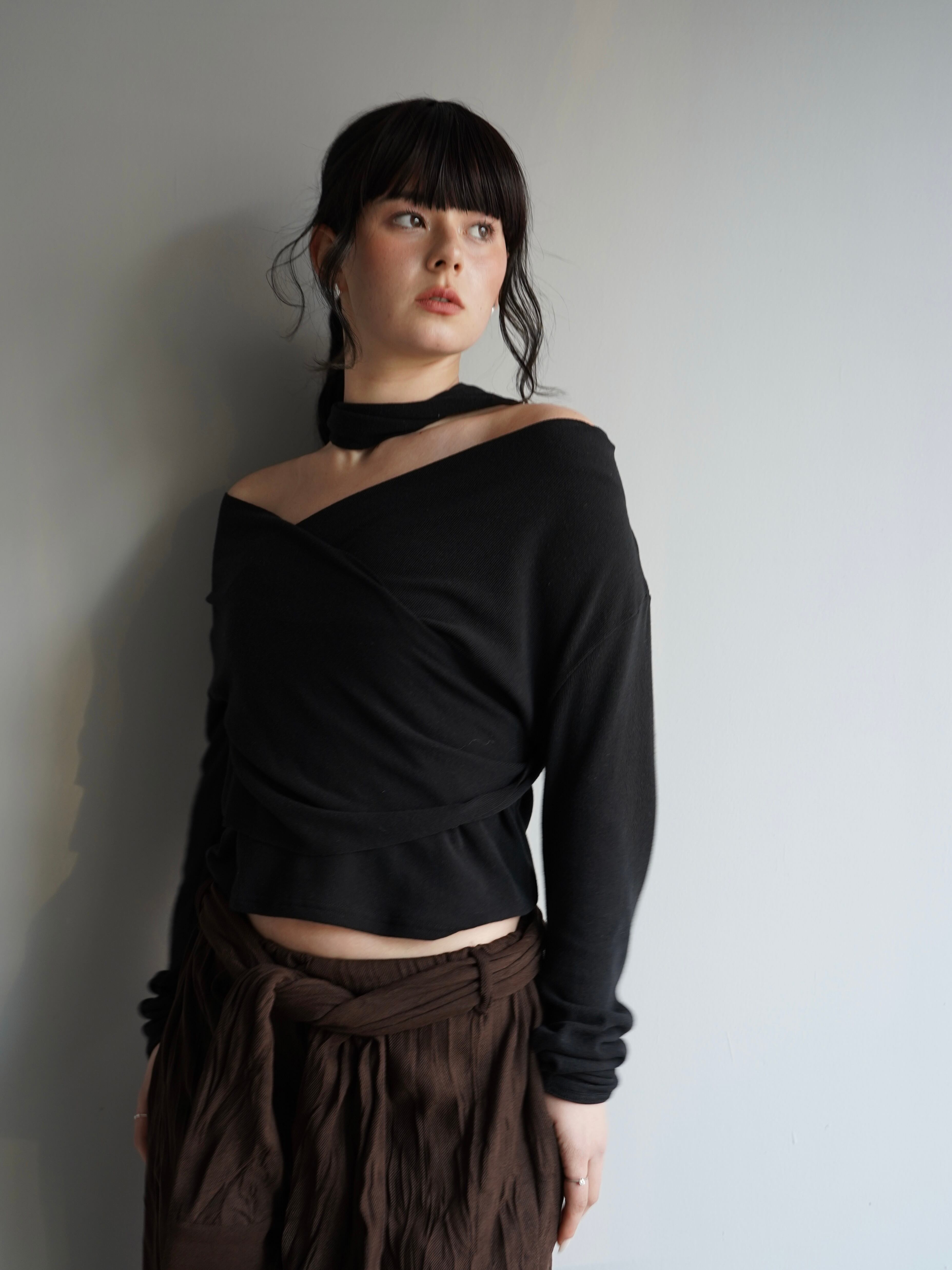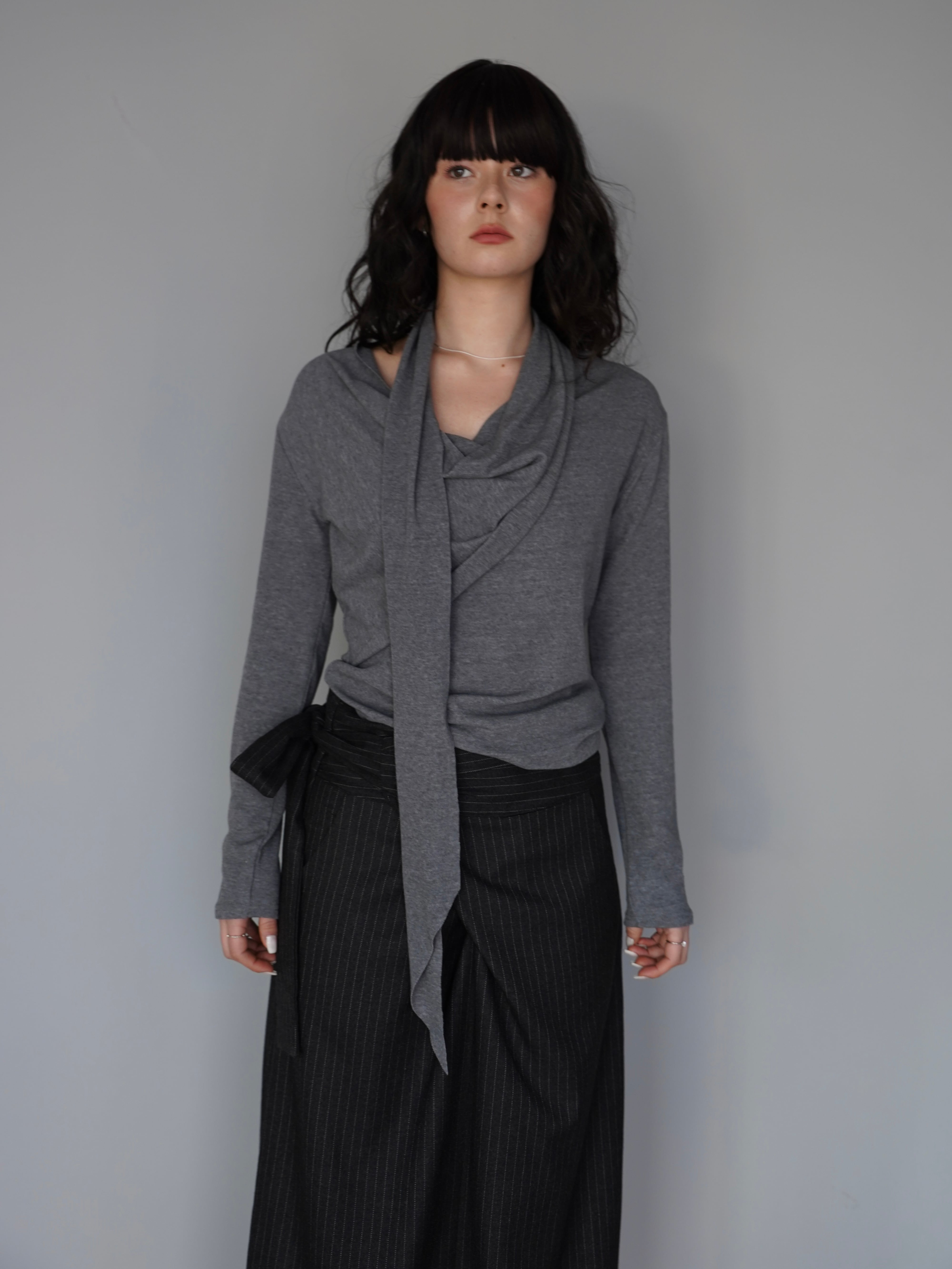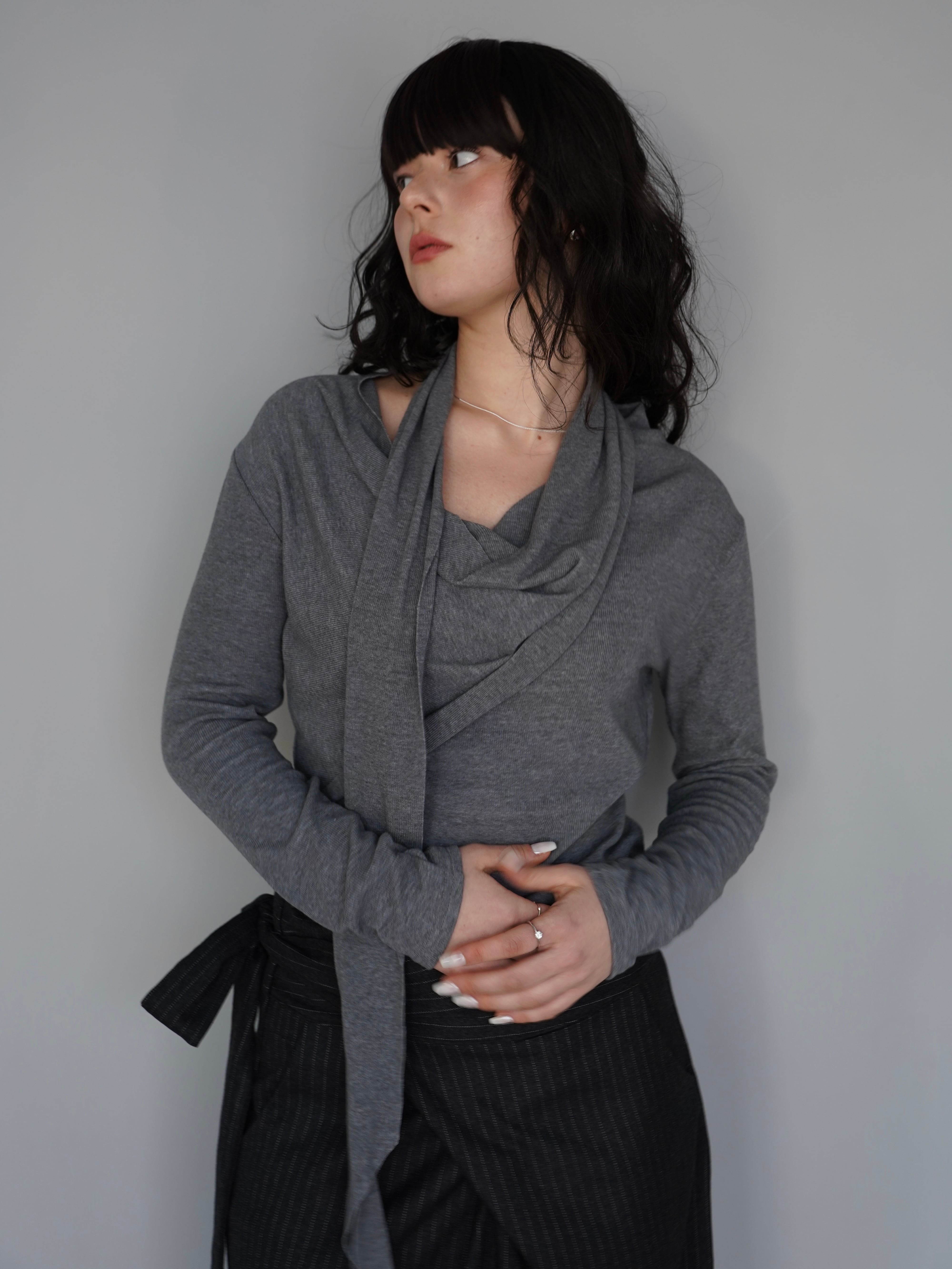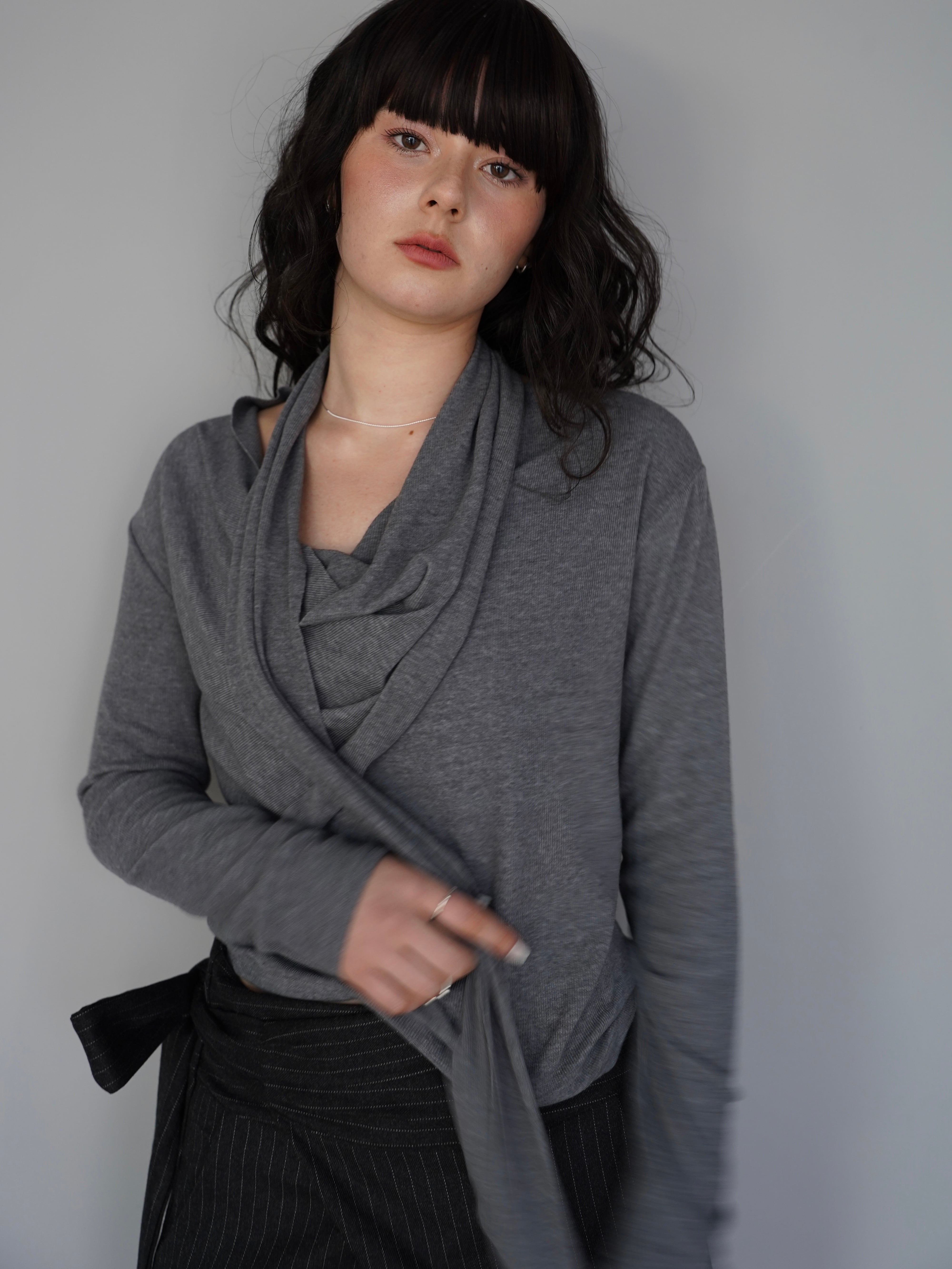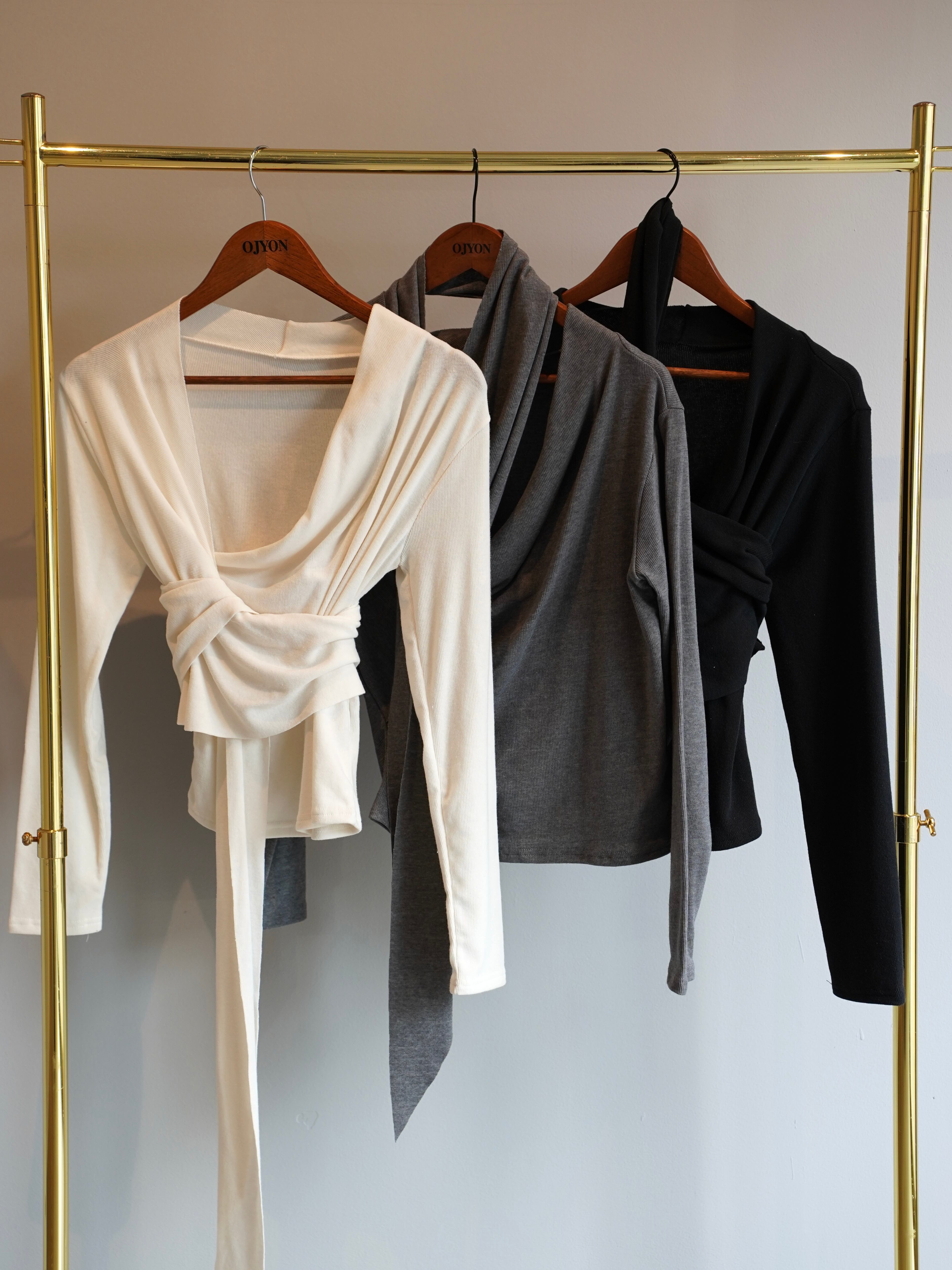 画像のように首元にストールのようなドレープをつくって着るスタイルはもちろん、