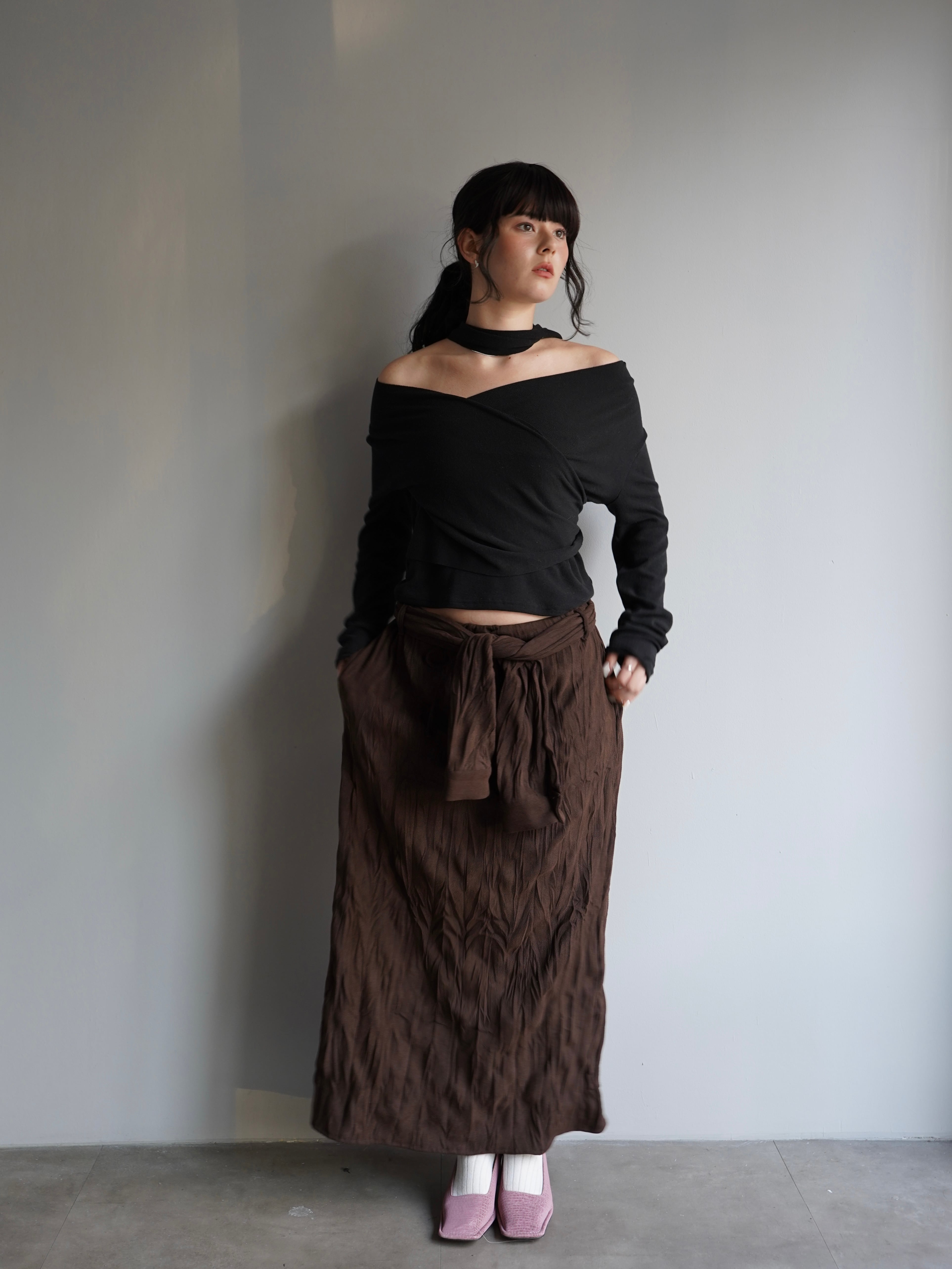 腰に巻いてビスチェ風にもアレンジ可能な2wayデザイン。