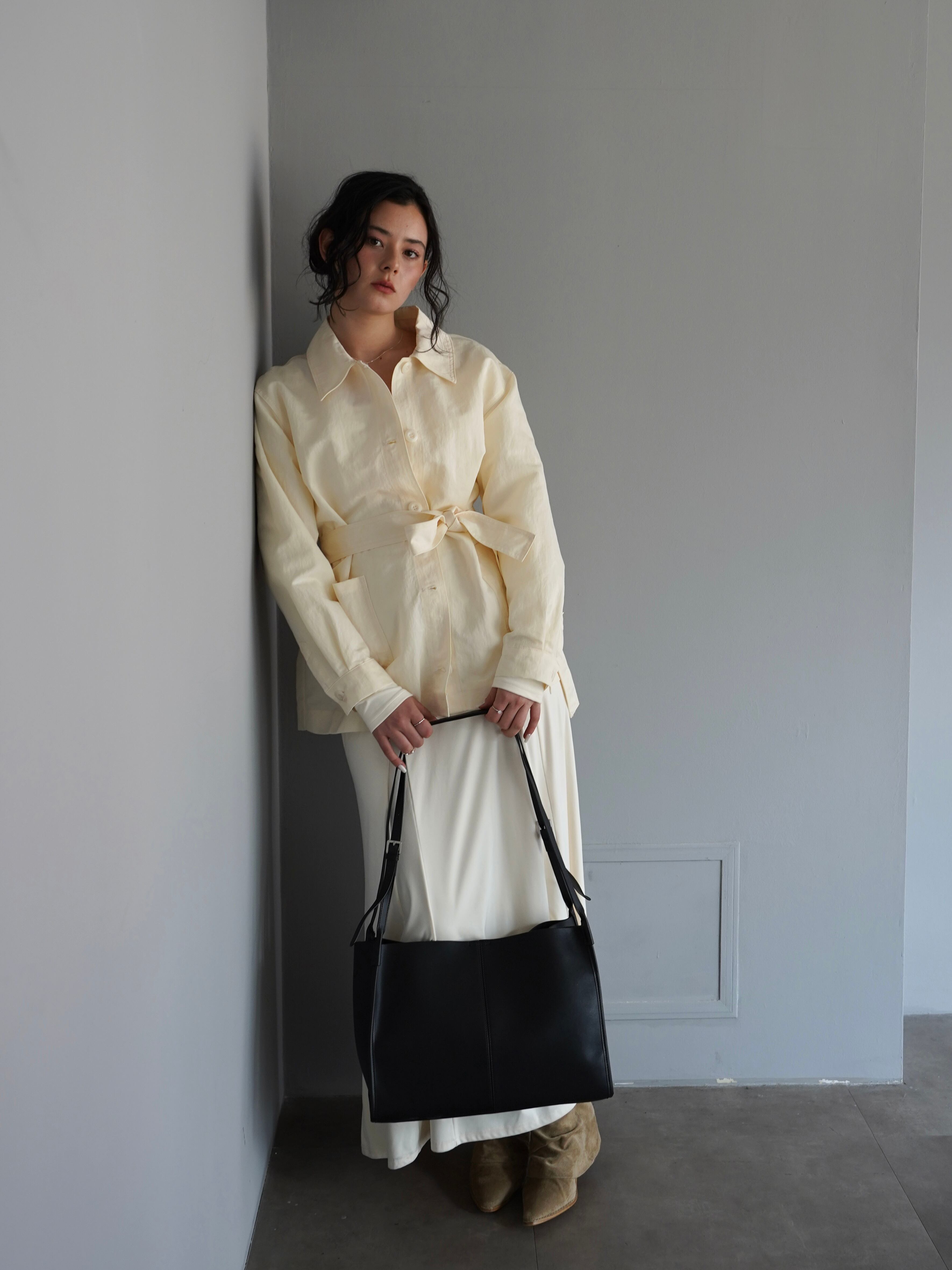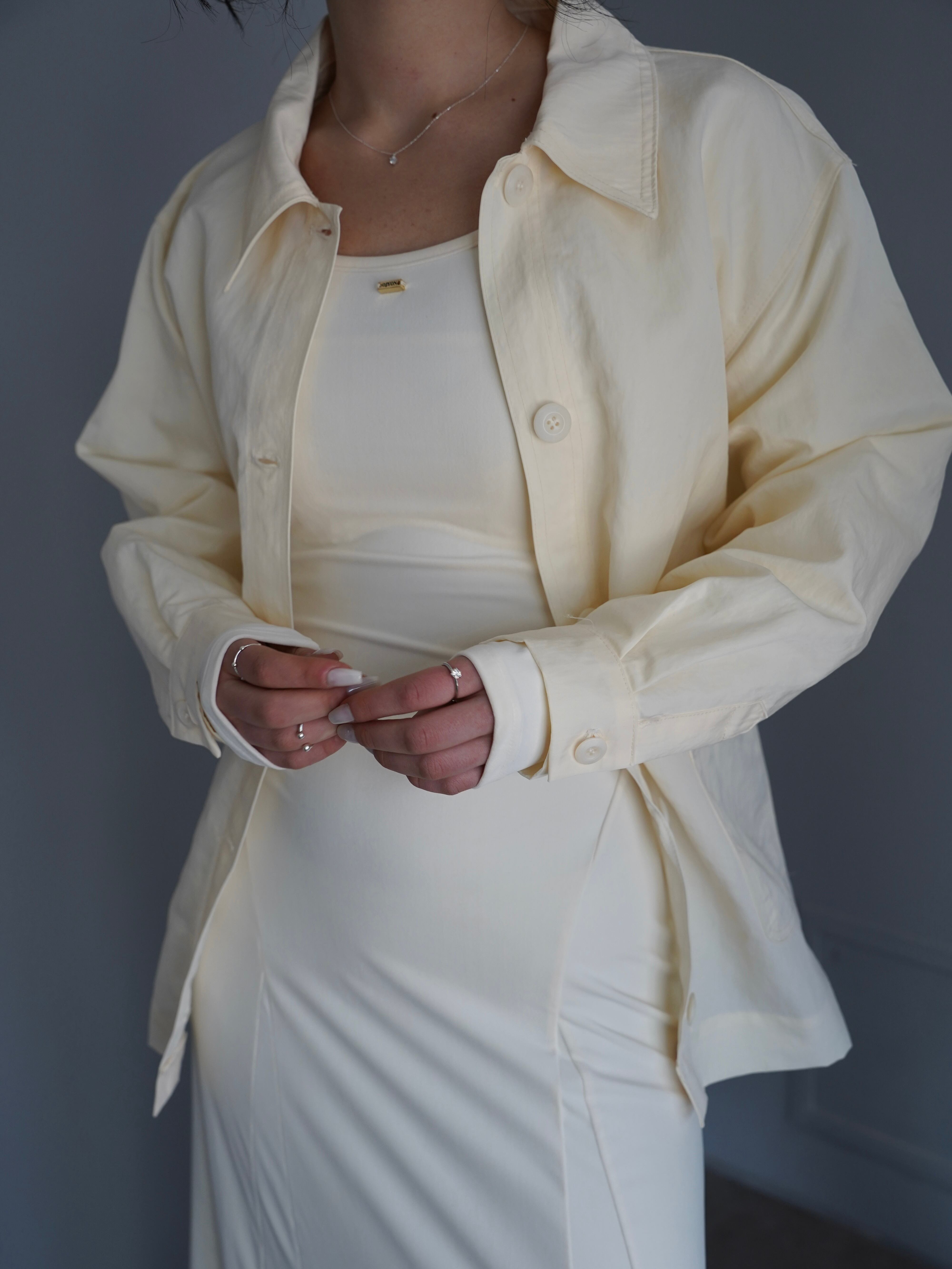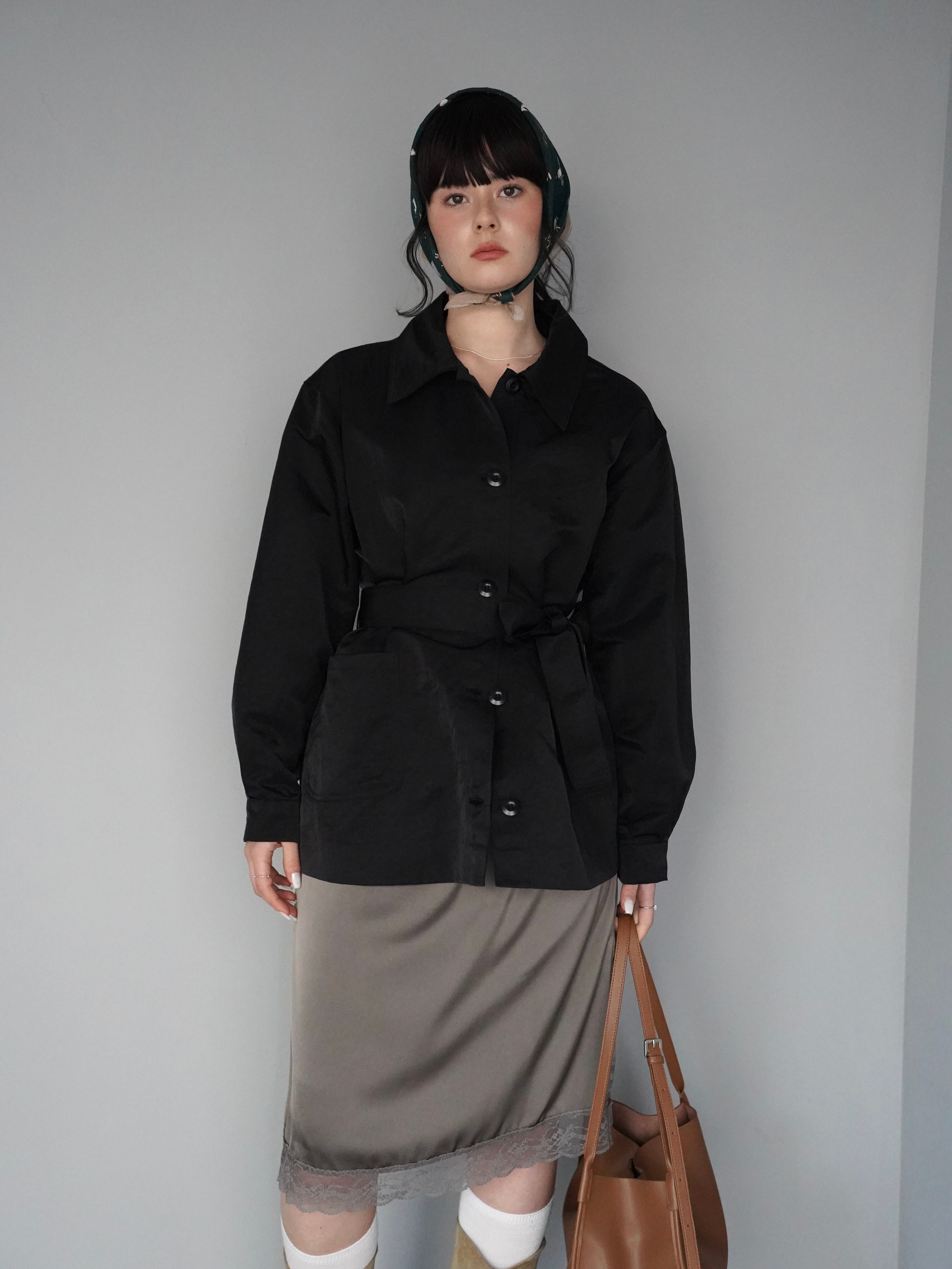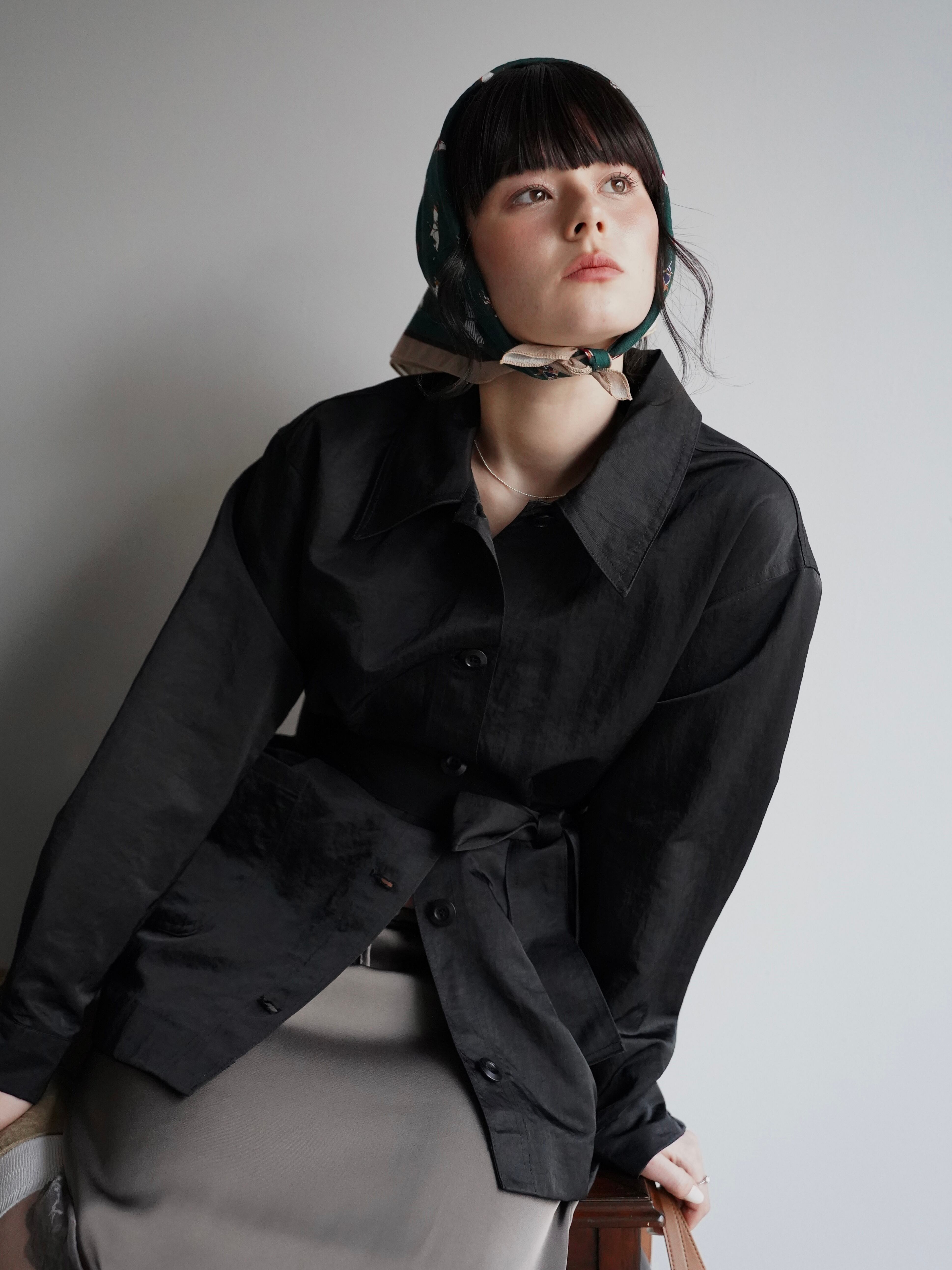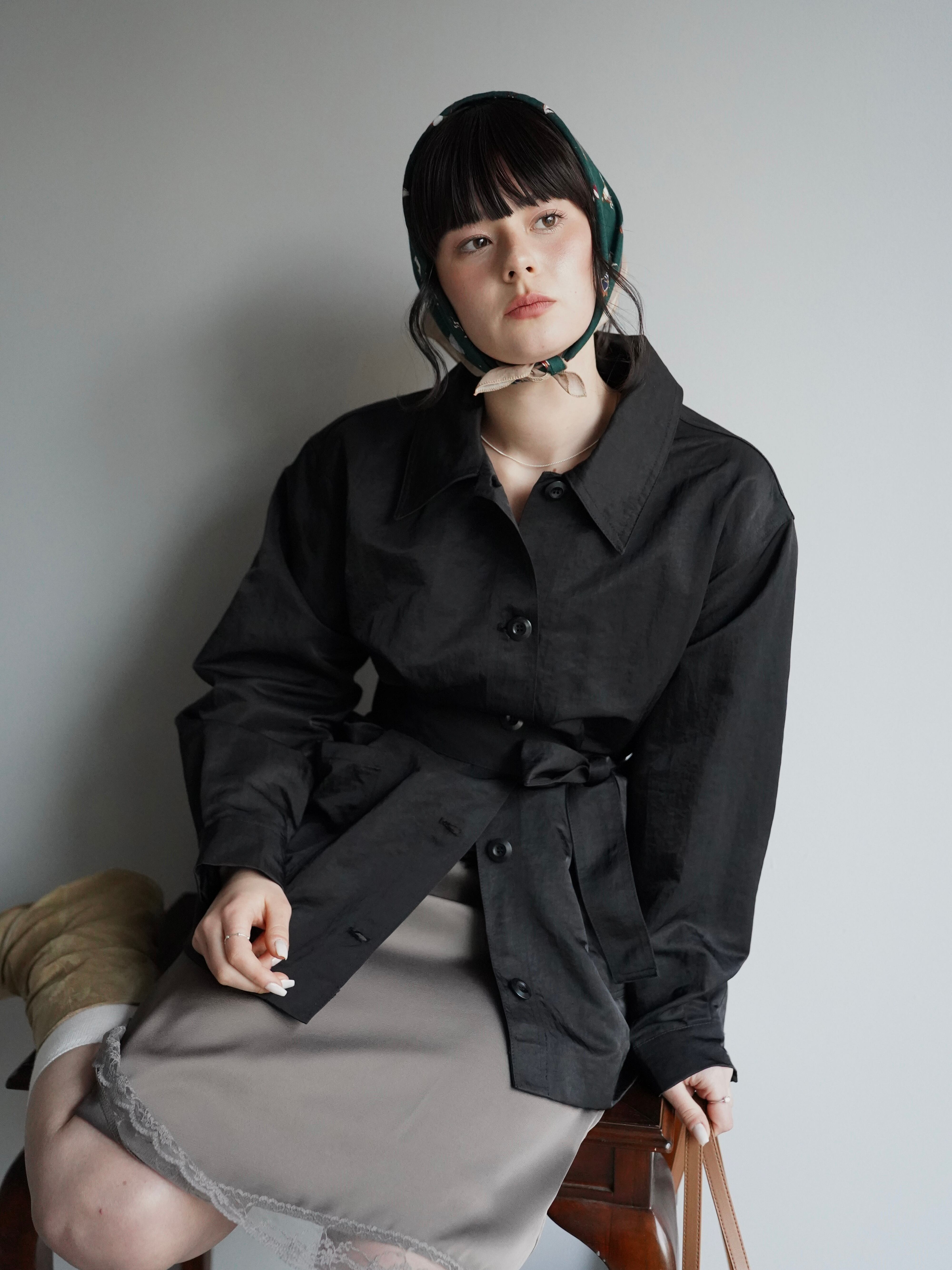 シャツのようにさらっと羽織れる軽さがありながら、ウエストのベルトでシルエットを調整できるデザインです。