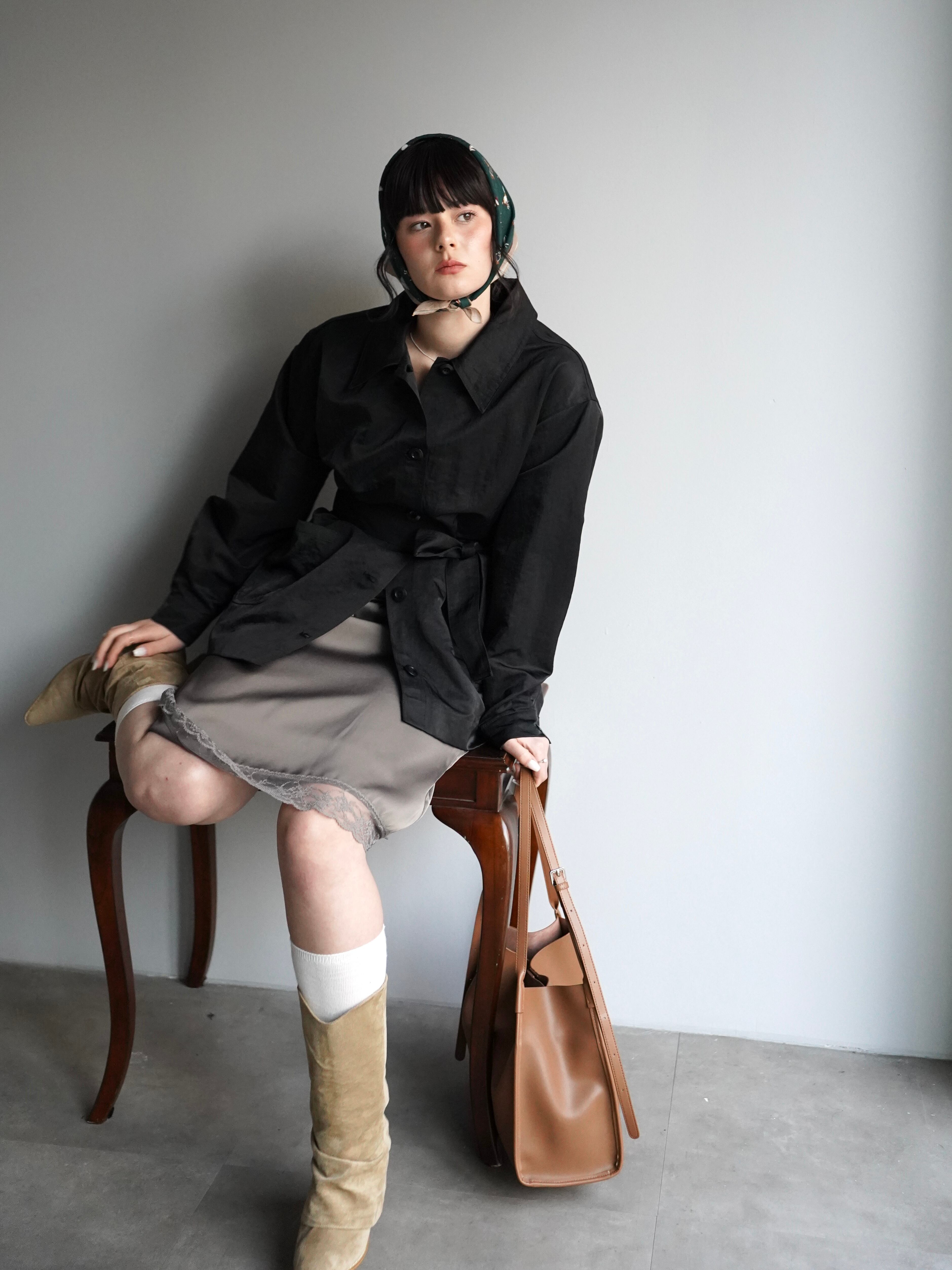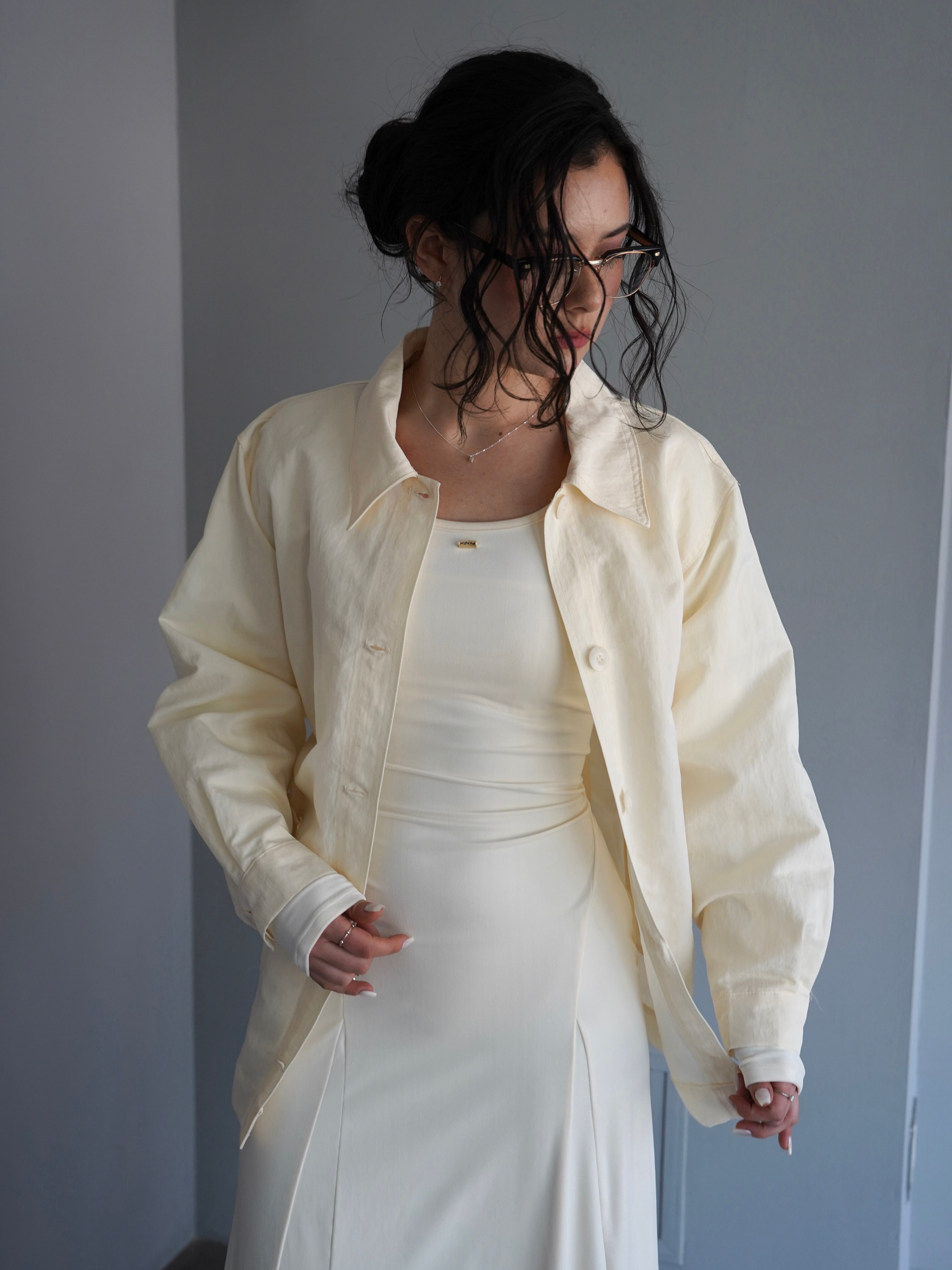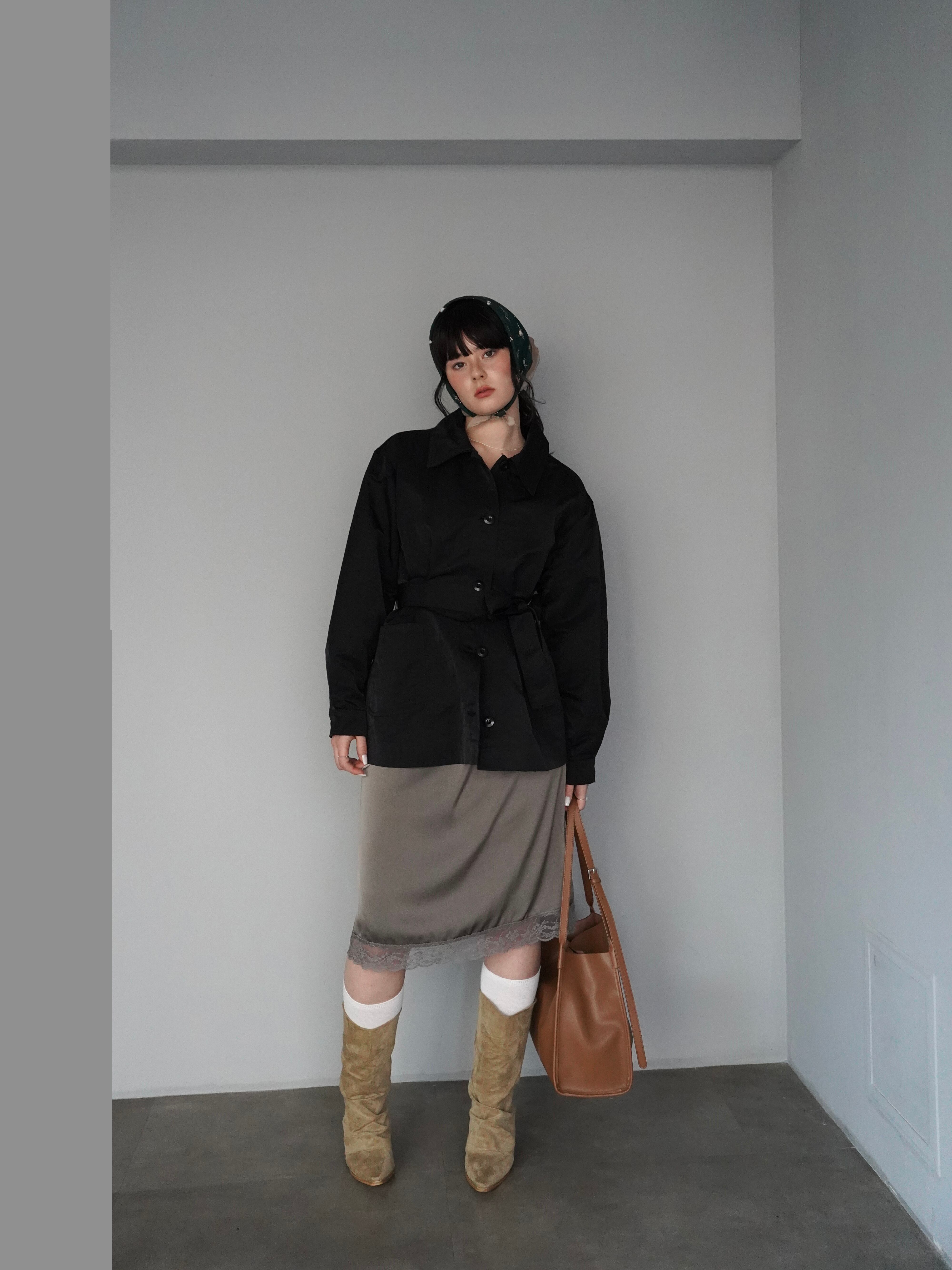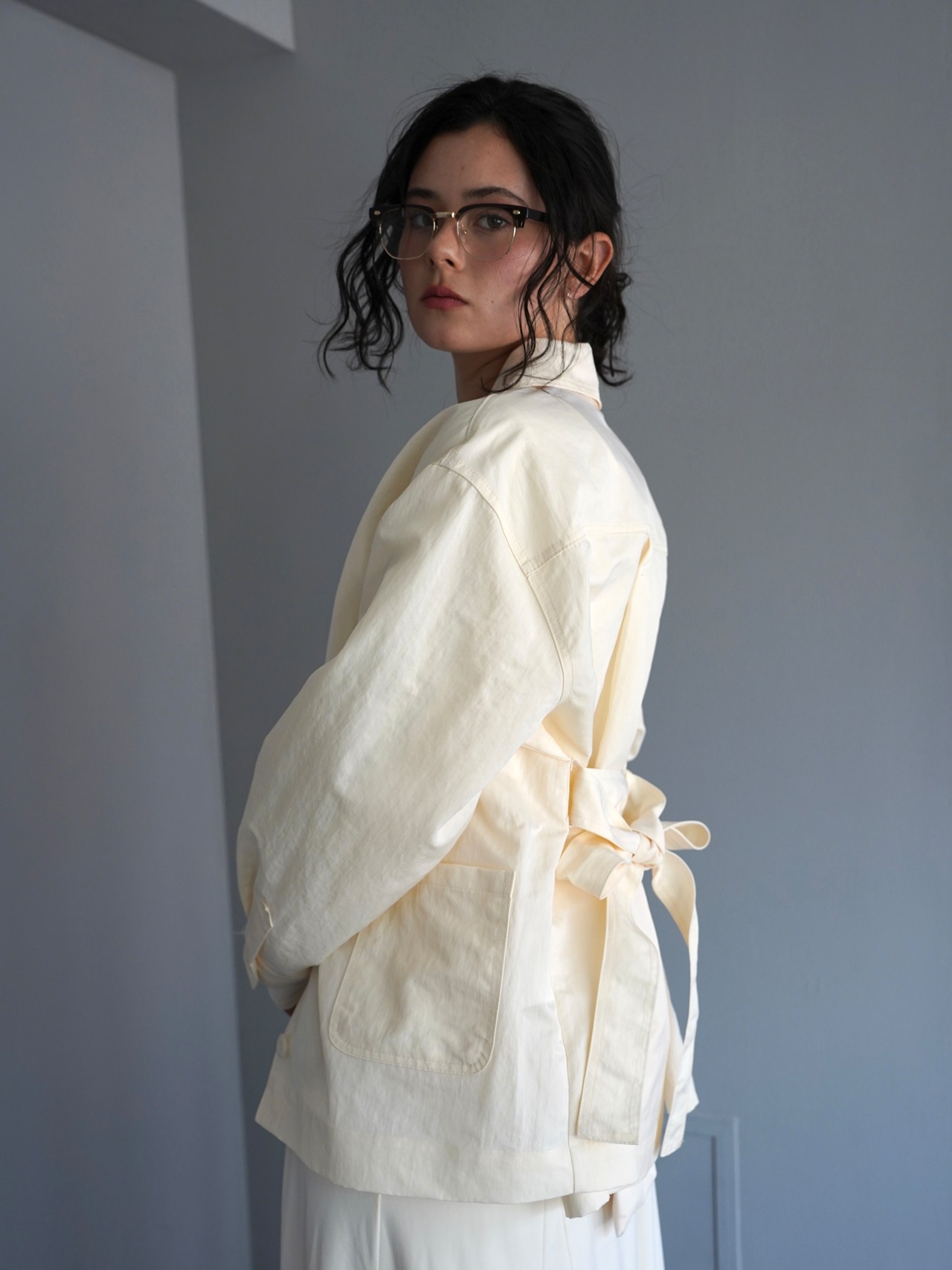 シャツのようにさらっと羽織れる軽さがありながら、ウエストのベルトでシルエットを調整できるデザインです。