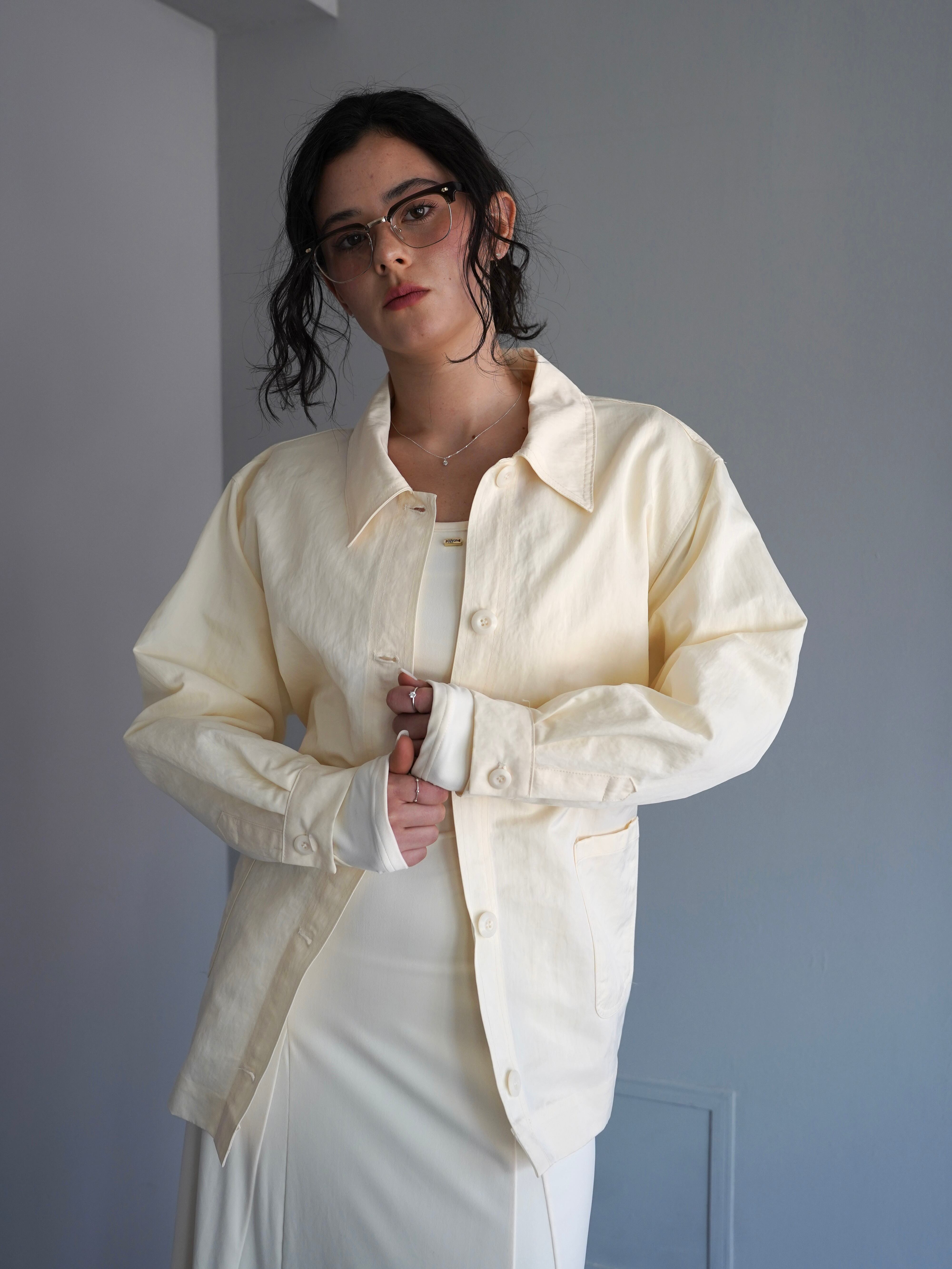 軽やかなナイロン素材を使用した、春のライトアウター。