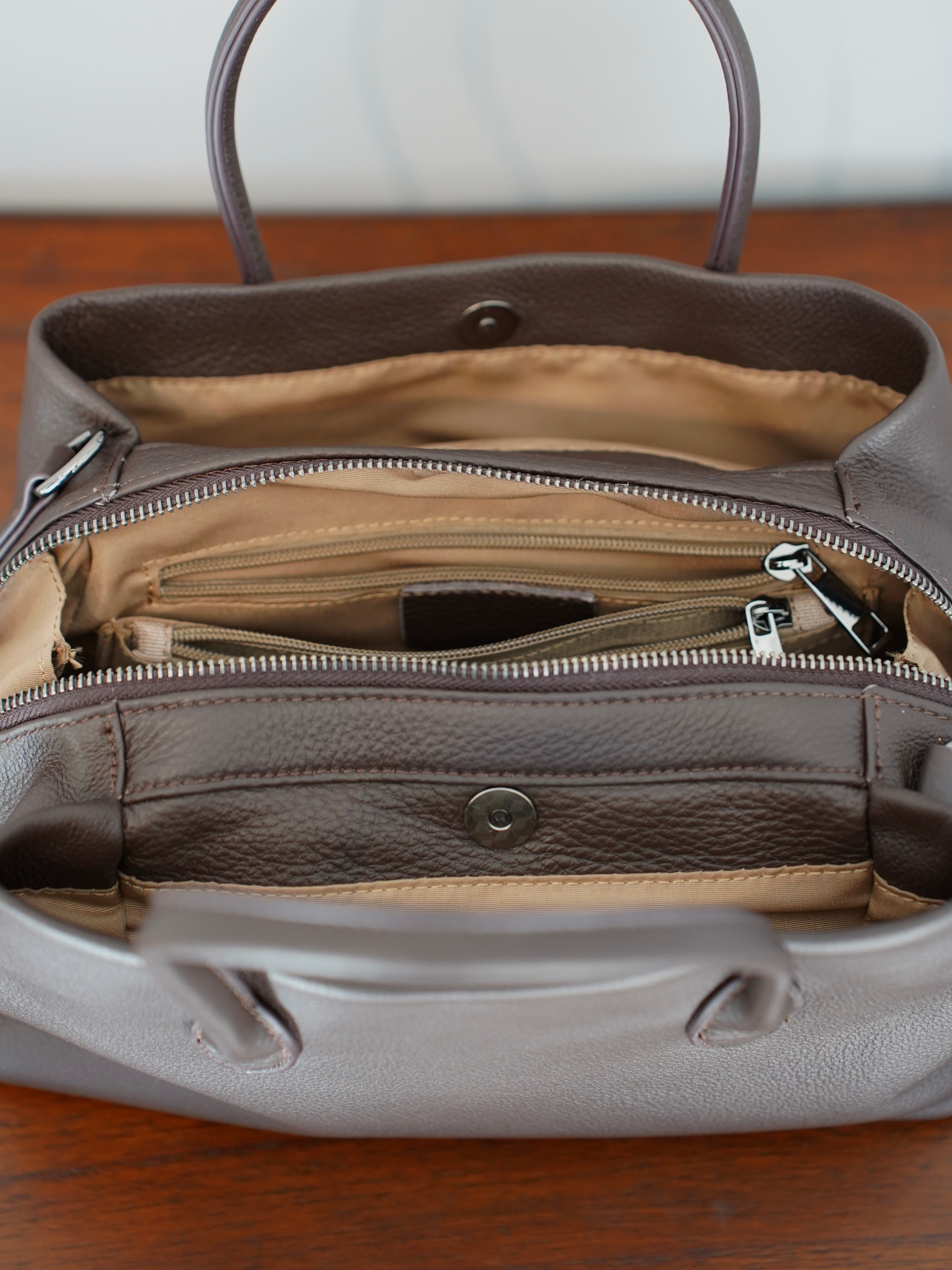 また、取り外し可能なショルダーストラップ付きで、ハンドバッグとしてはもちろん、ショルダーバッグとしてもお使いいただけます。