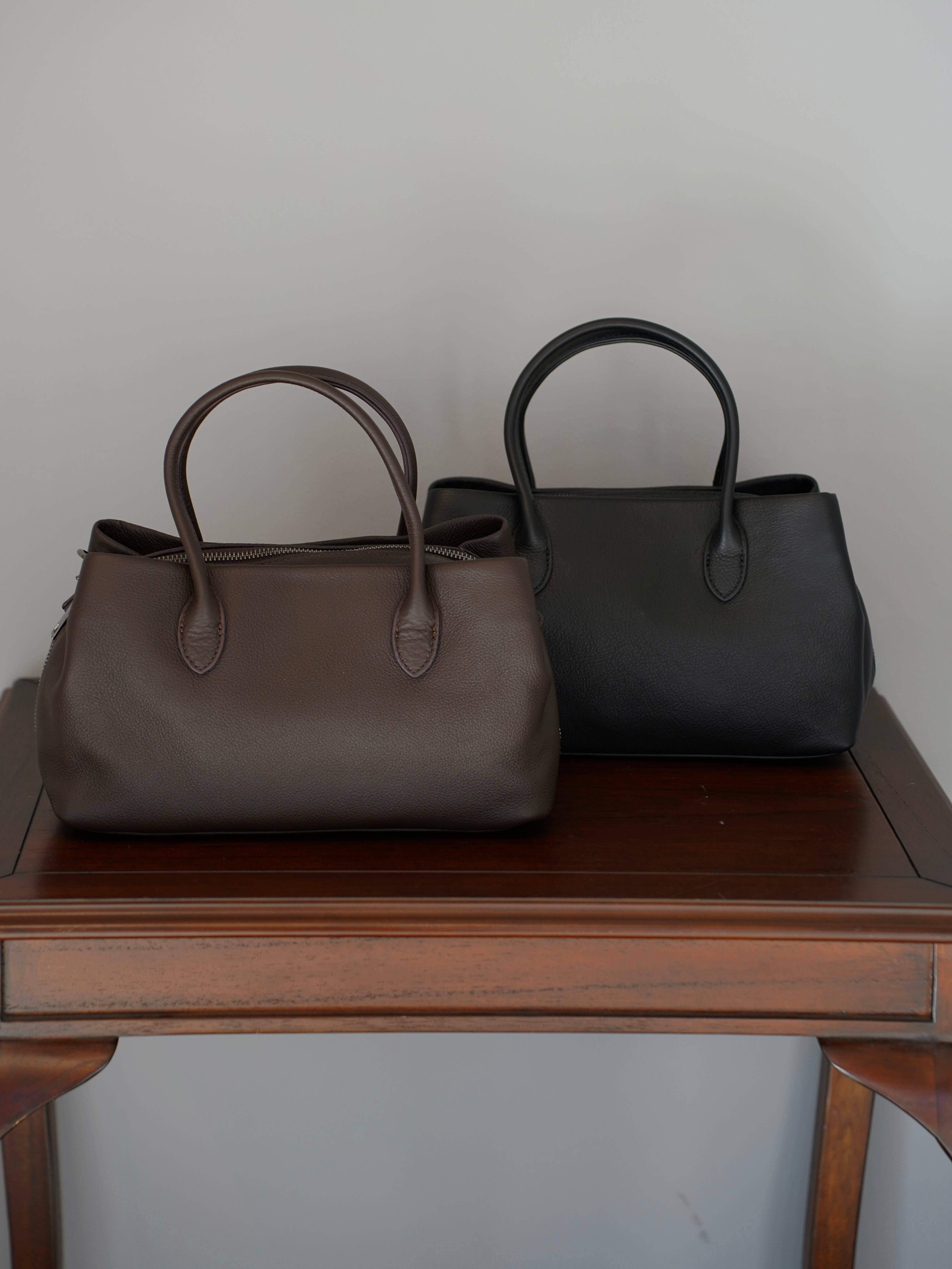 上質なリアルレザーを使用したコンパクトバッグ。