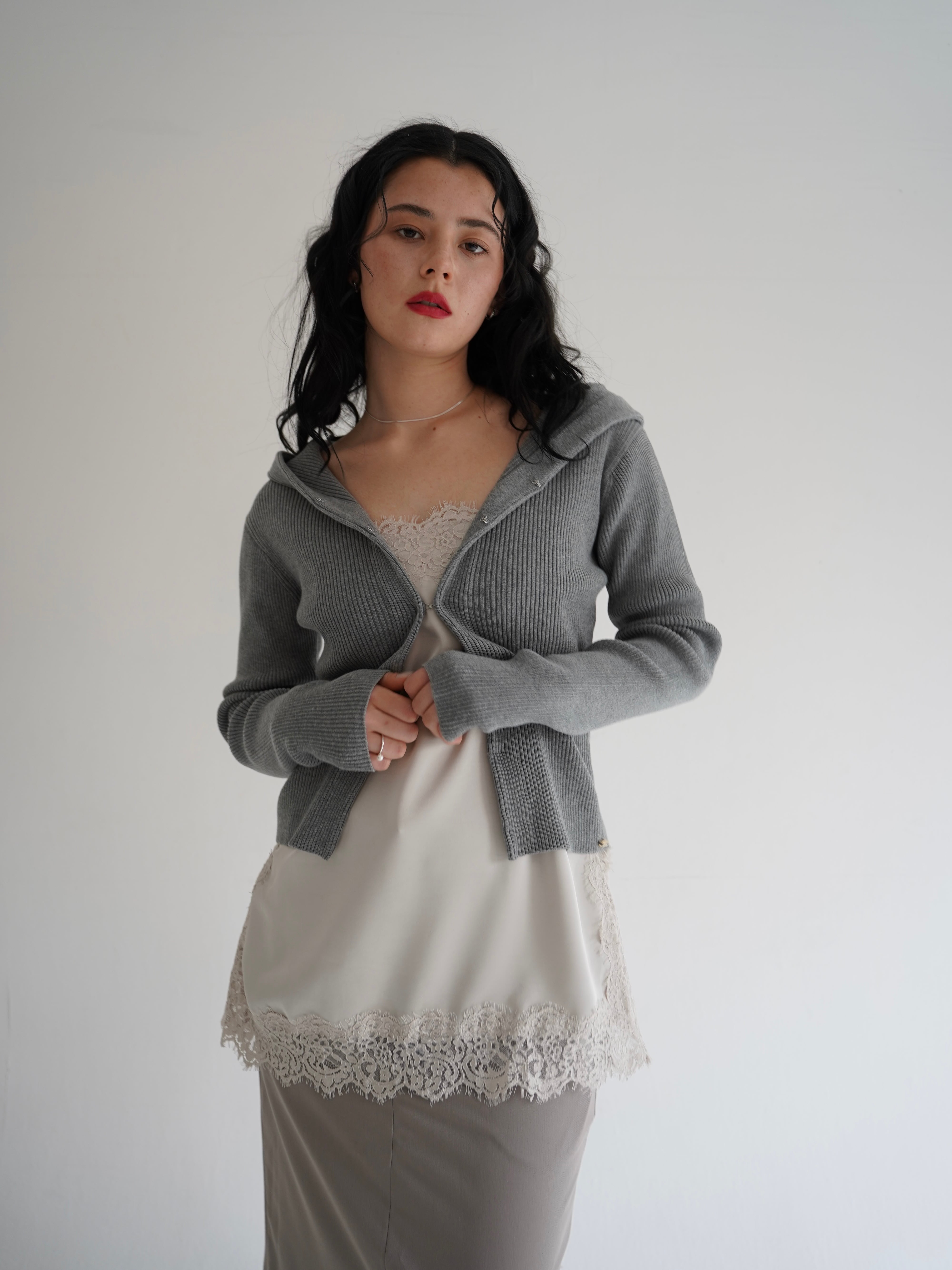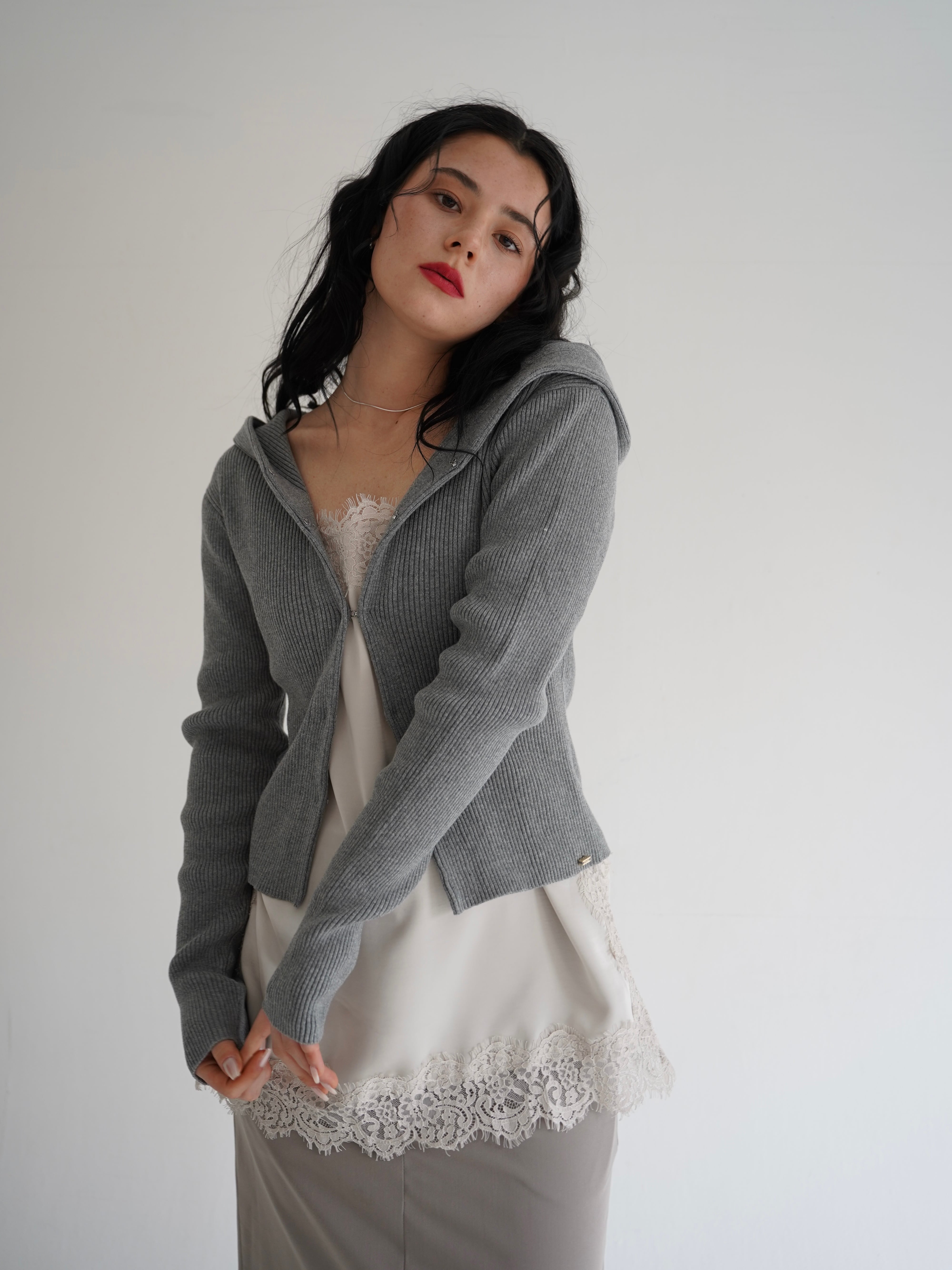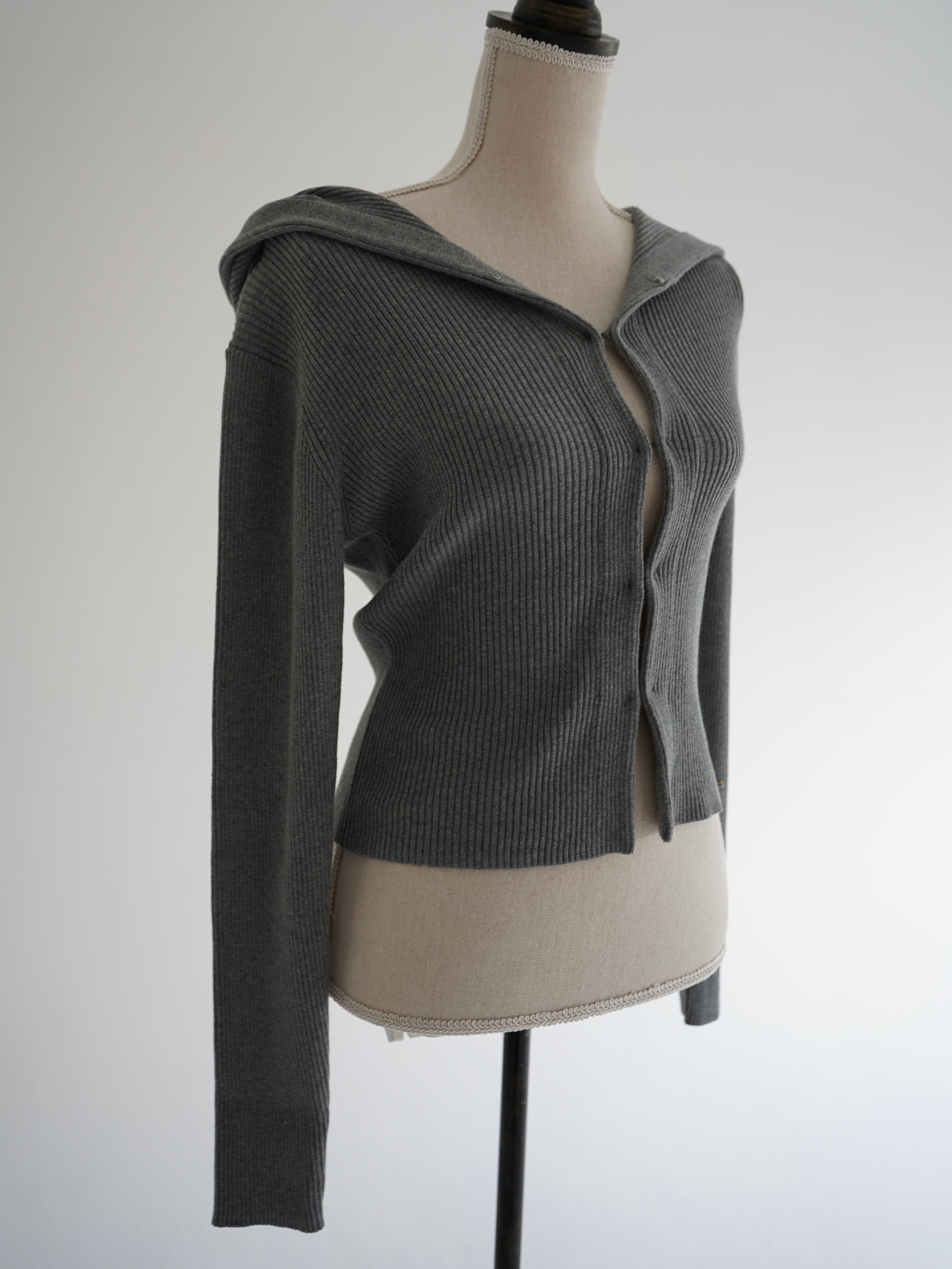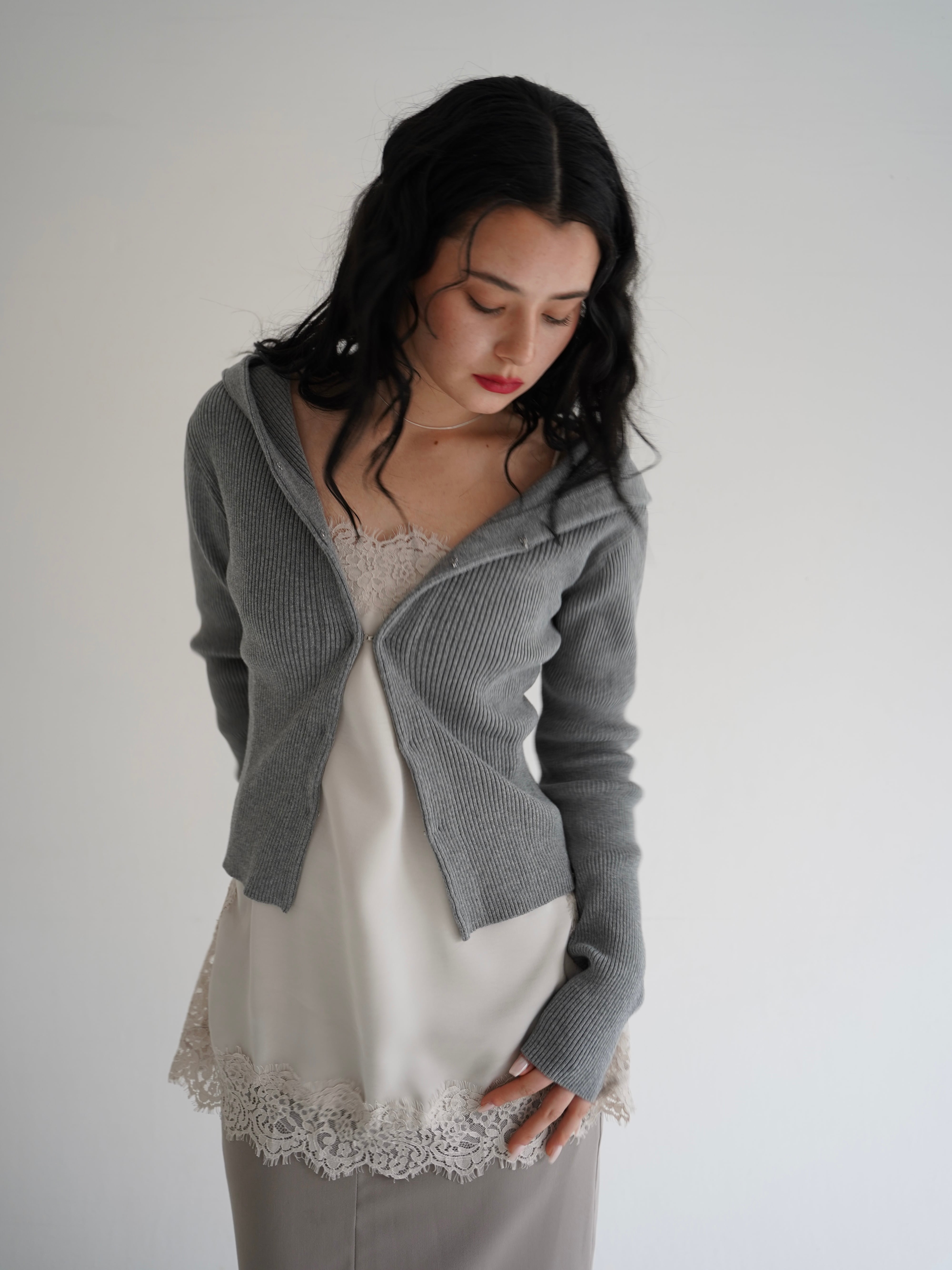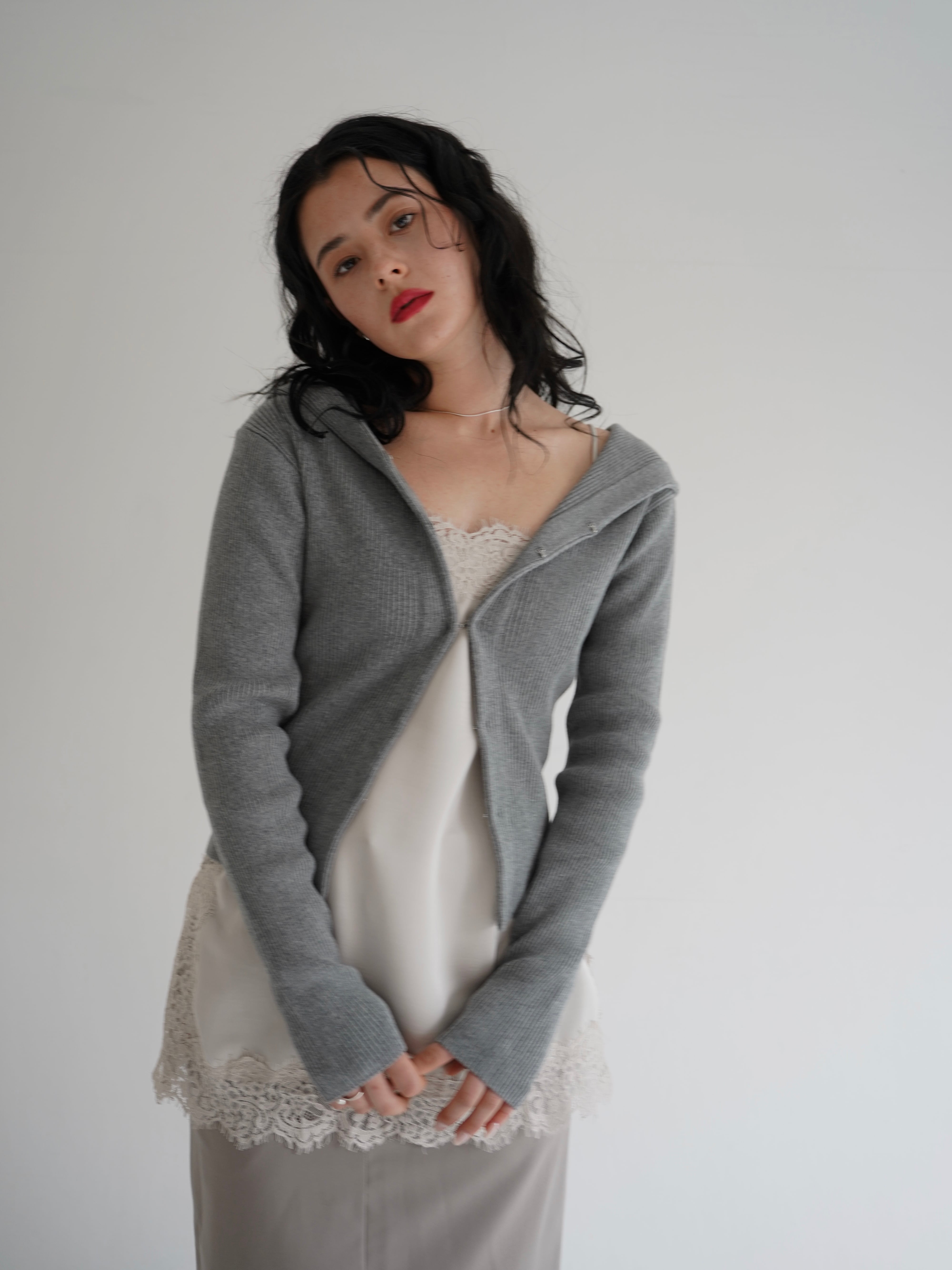 程よい遊び心と上質感を兼ね備えた、OJYONらしいフーディーニットボレロです。