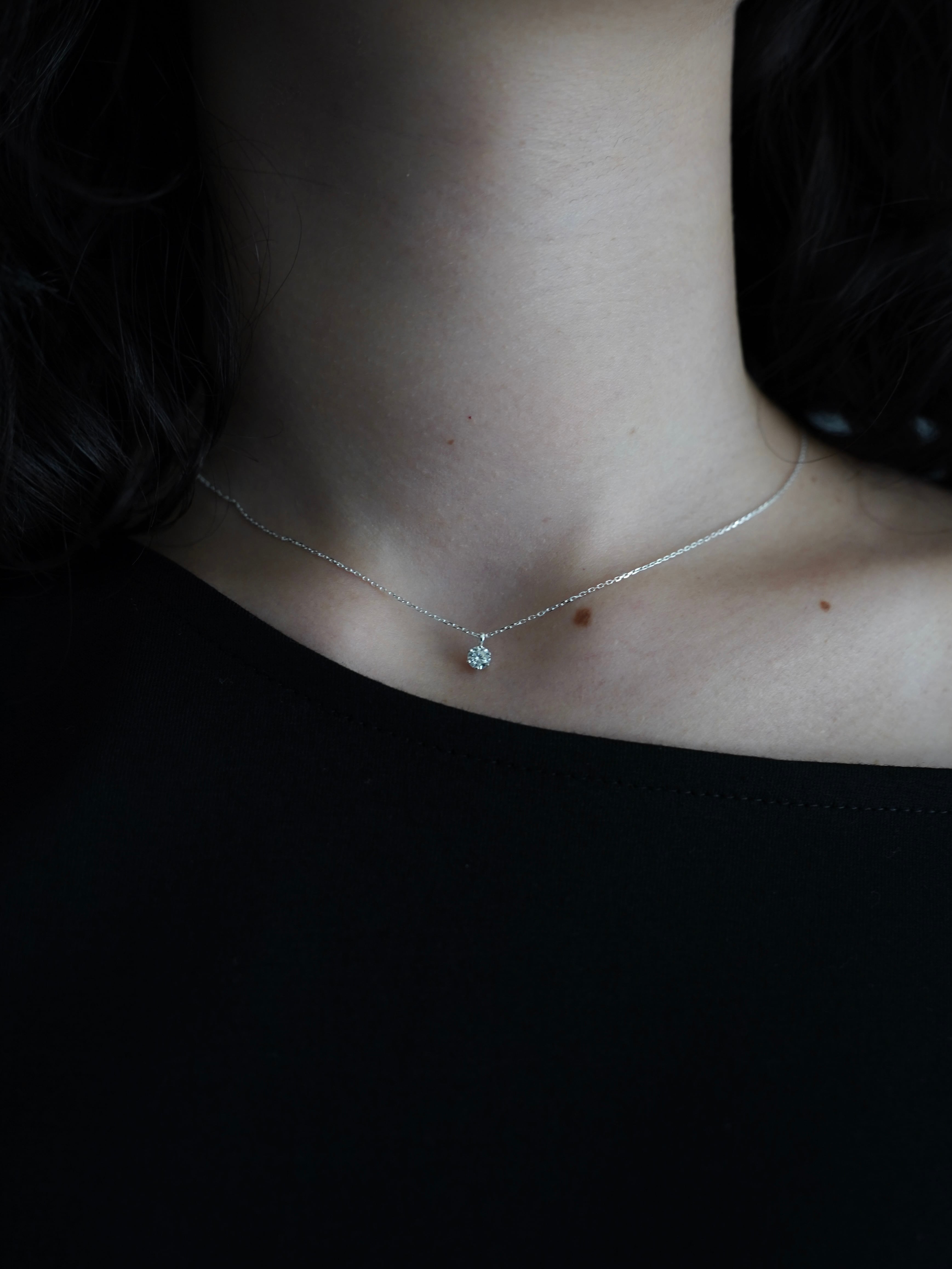 小さな輝きを首元に添える、ラボグロウンダイヤモンドの一粒ネックレス。