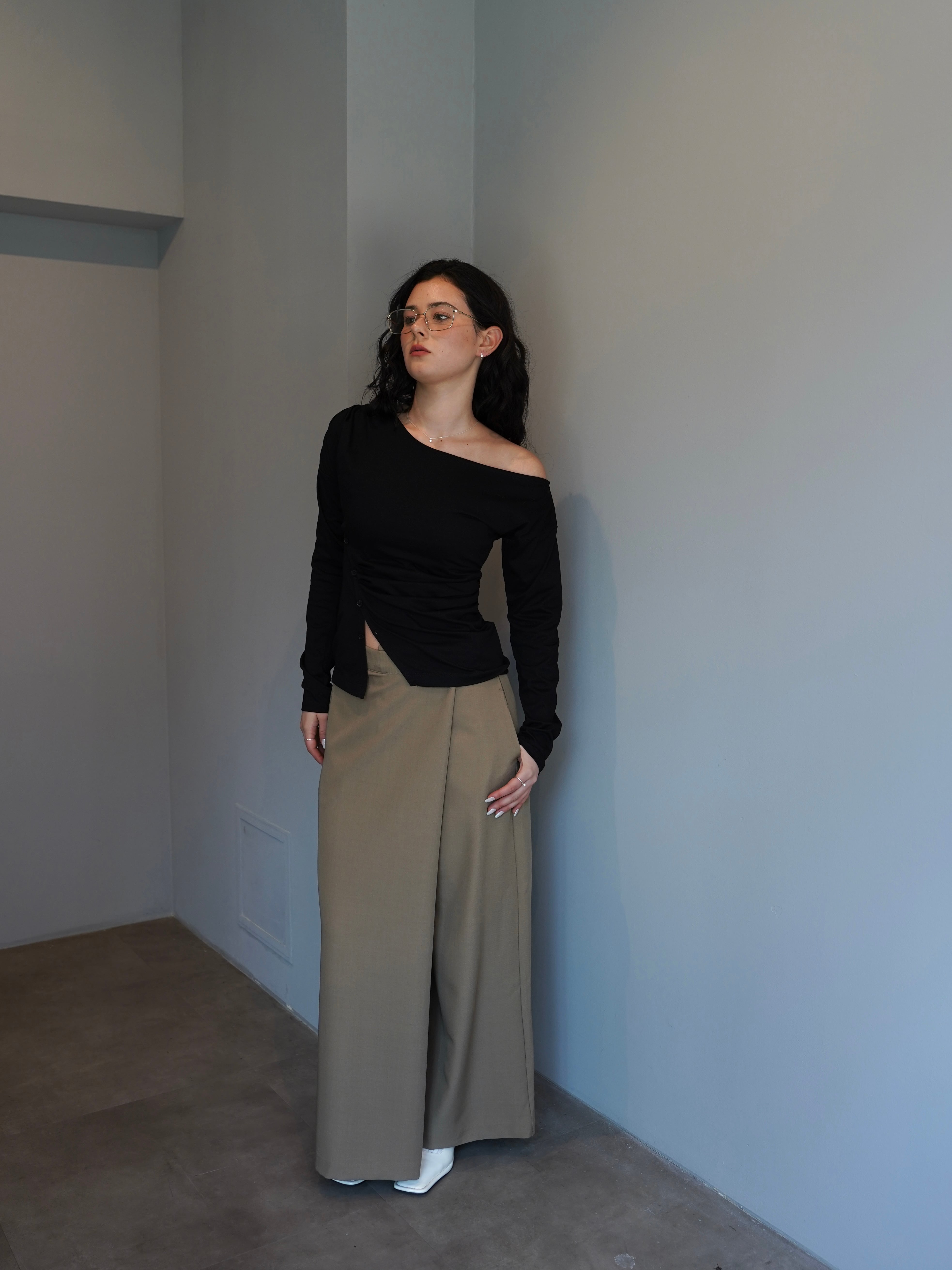 asymmetry culotte long pants#OJ0560