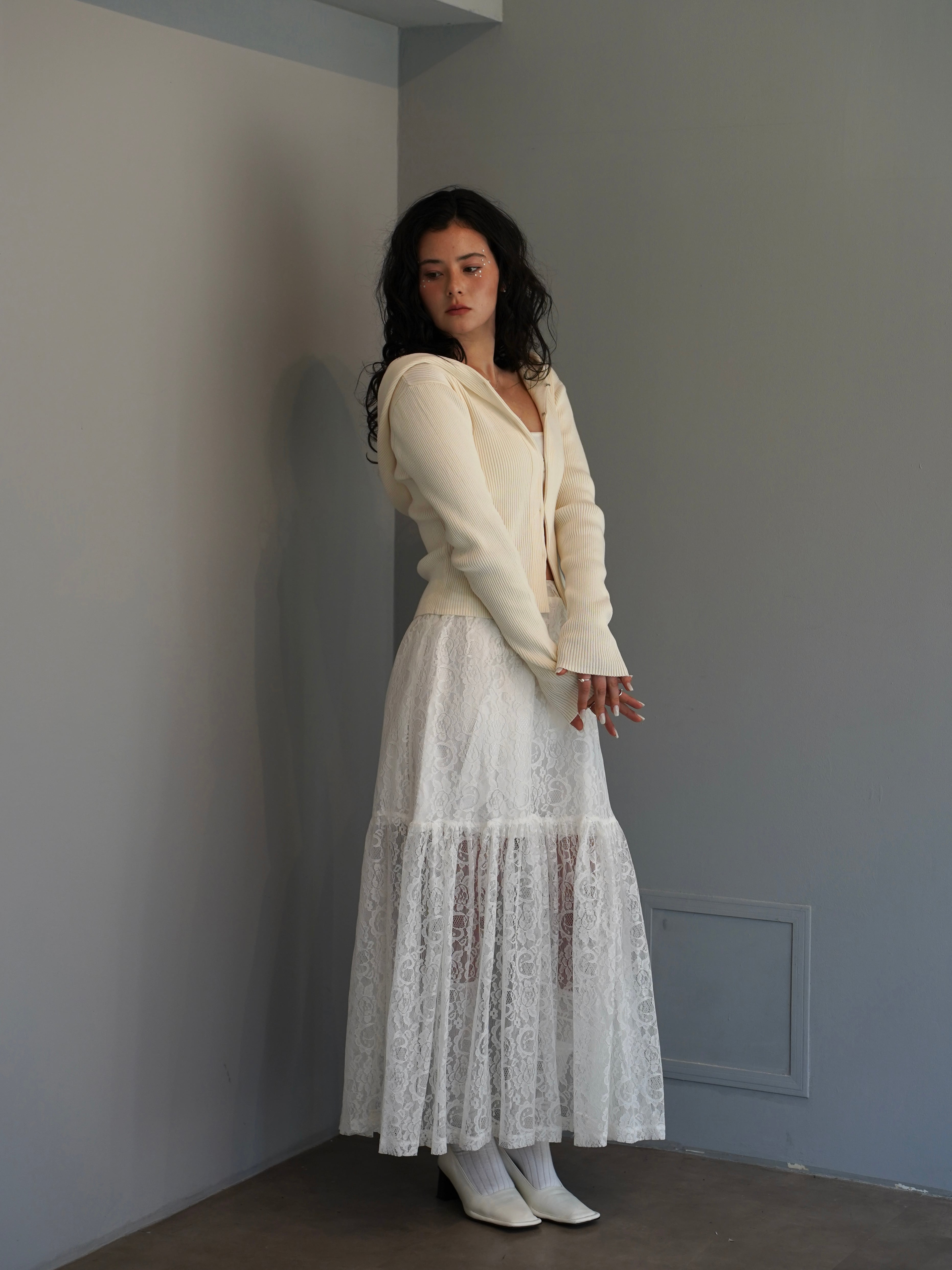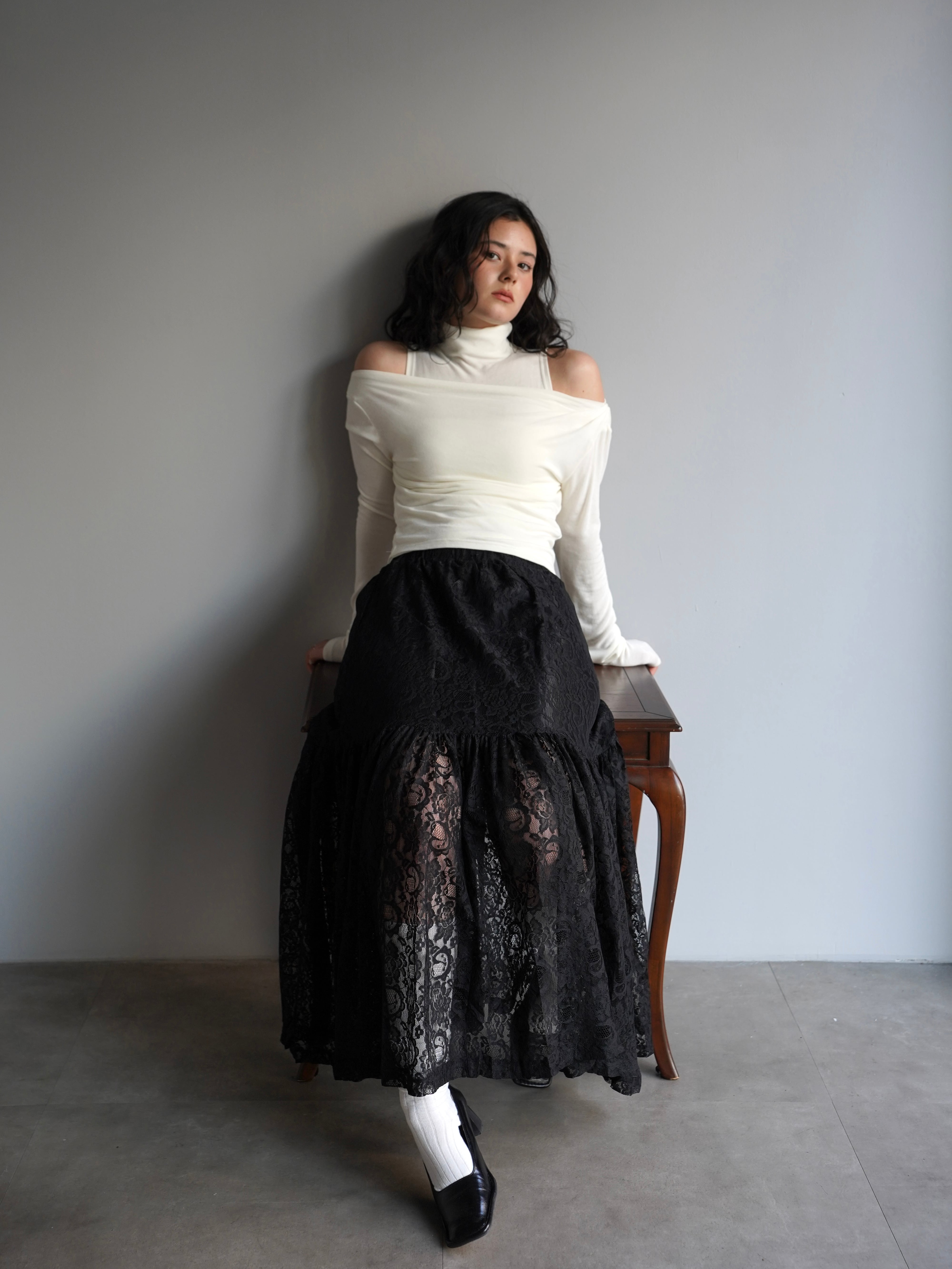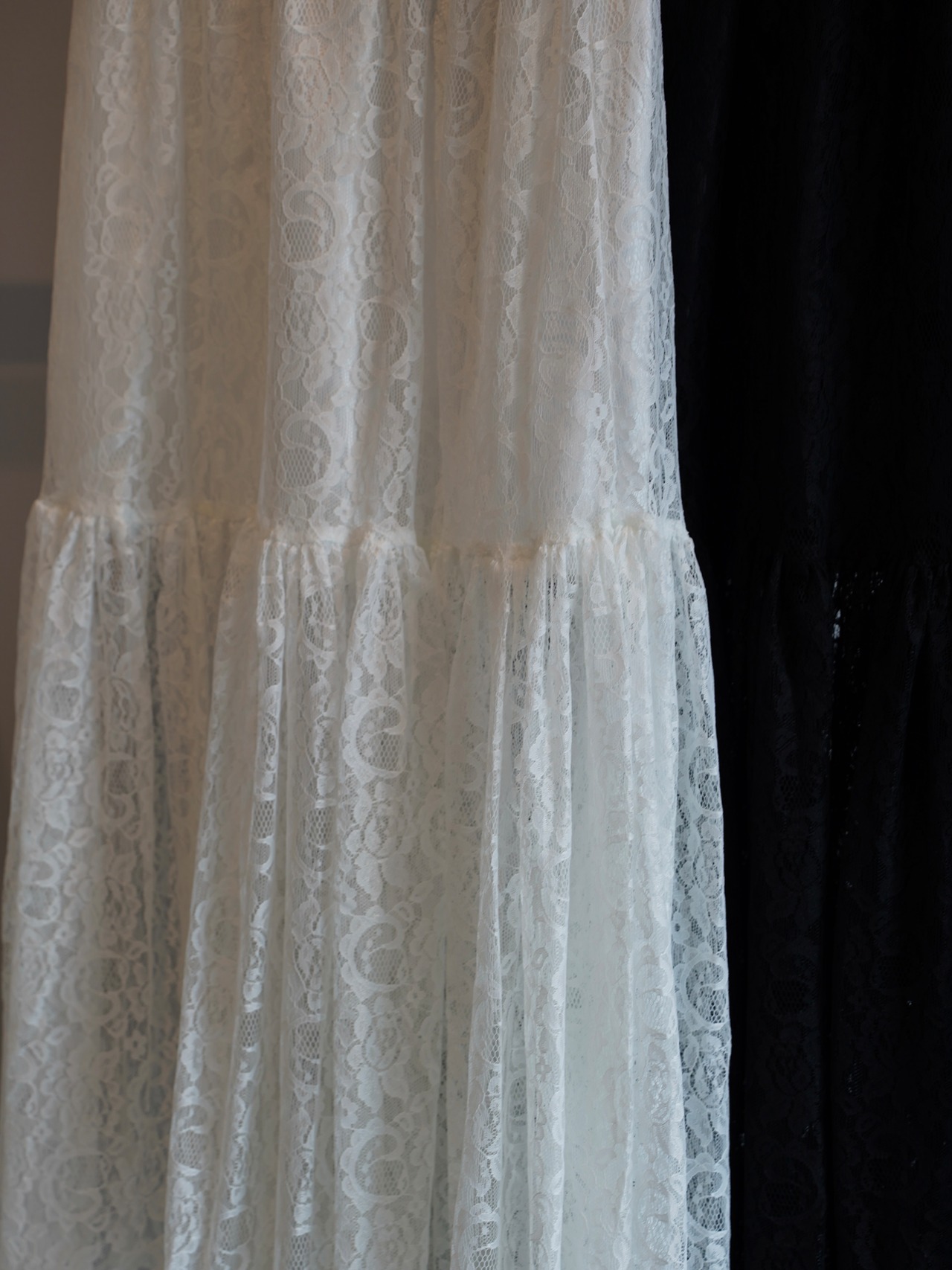 繊細な総レースで仕立てたロングスカート。