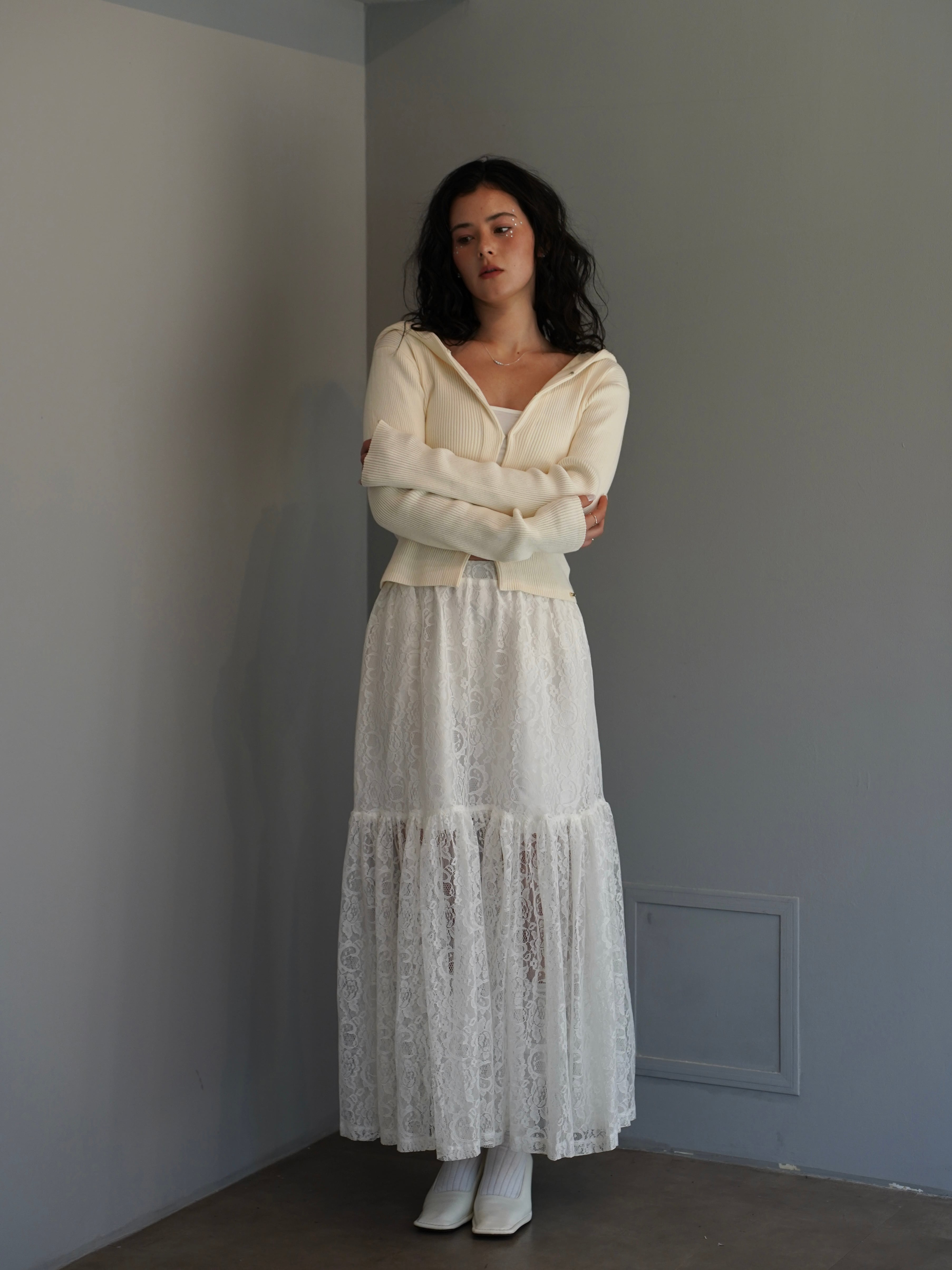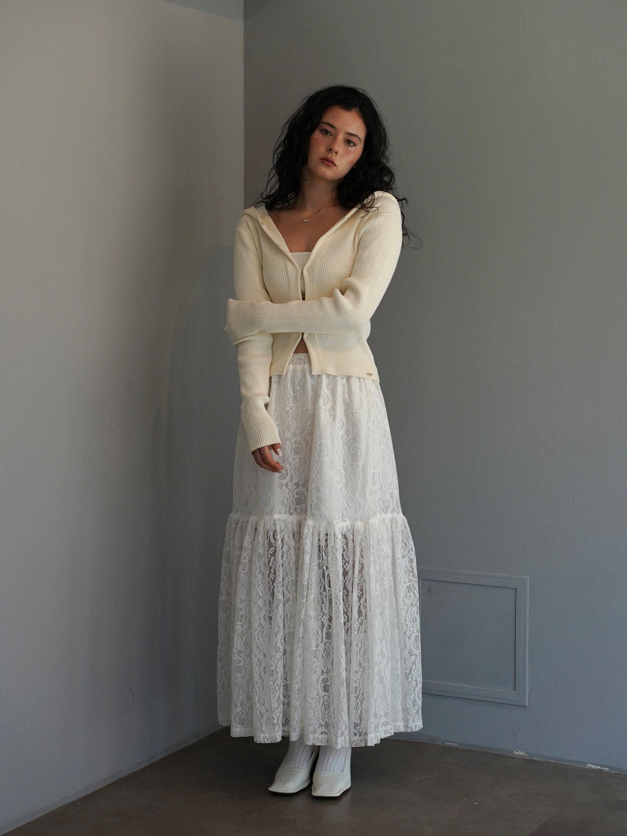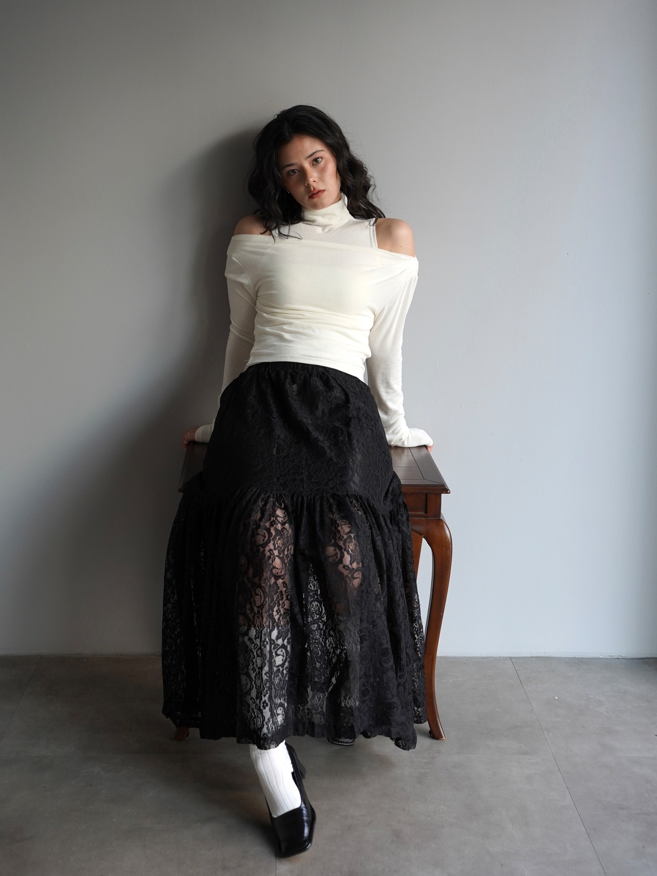 繊細な総レースで仕立てたロングスカート。