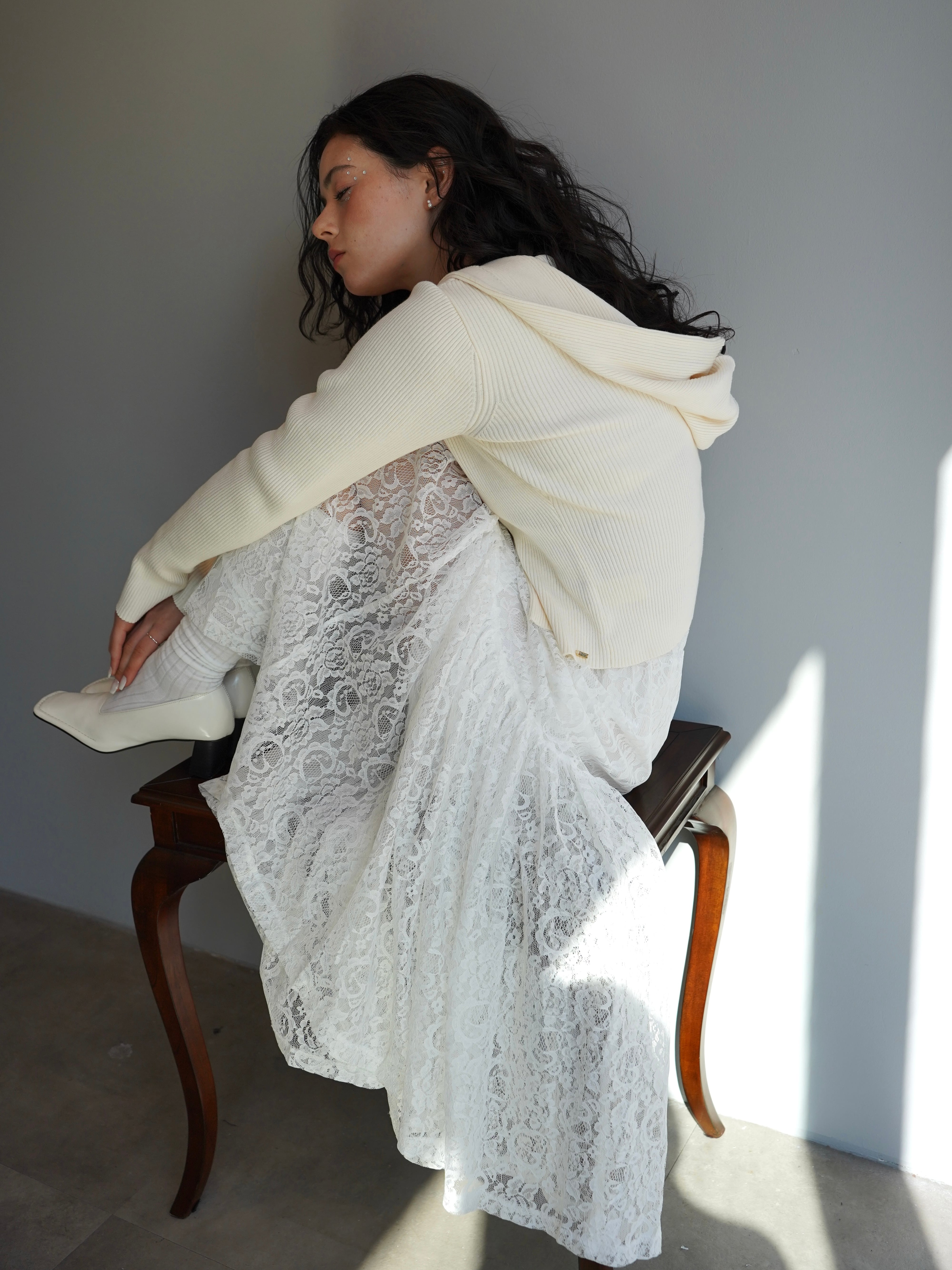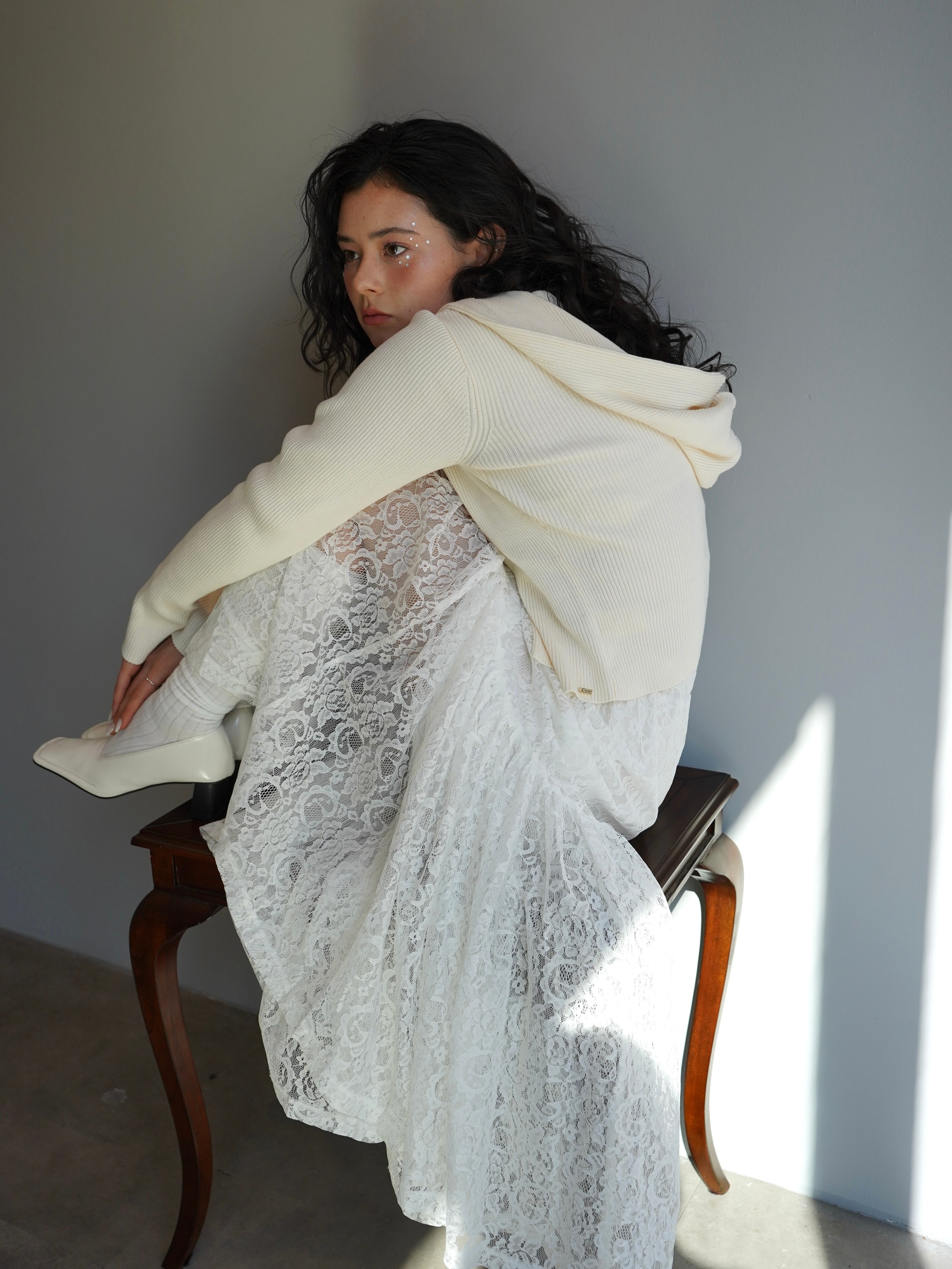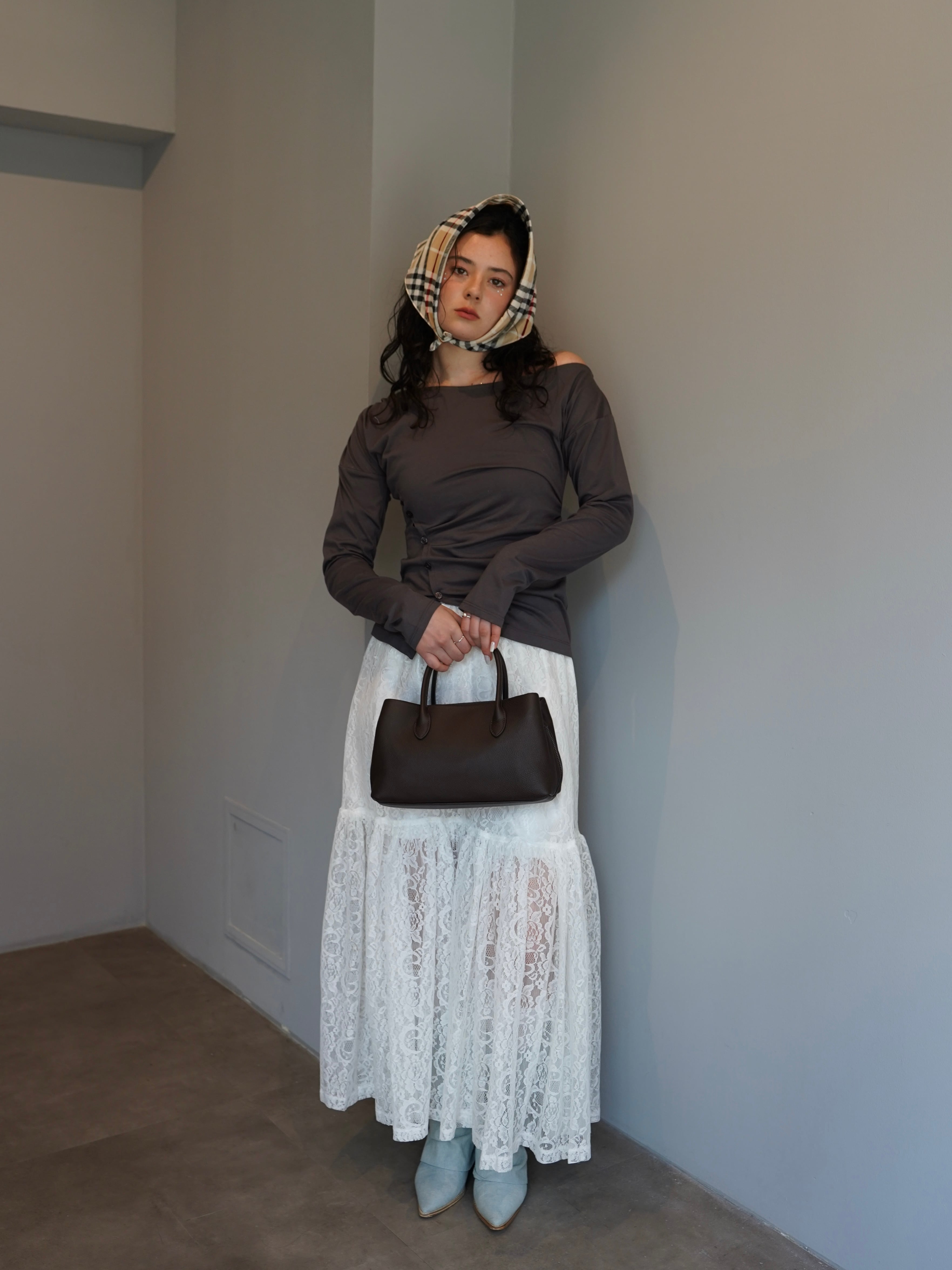 軽やかな透け感と奥行きのあるレースの表情が、スタイリングに上品な存在感をプラスします。