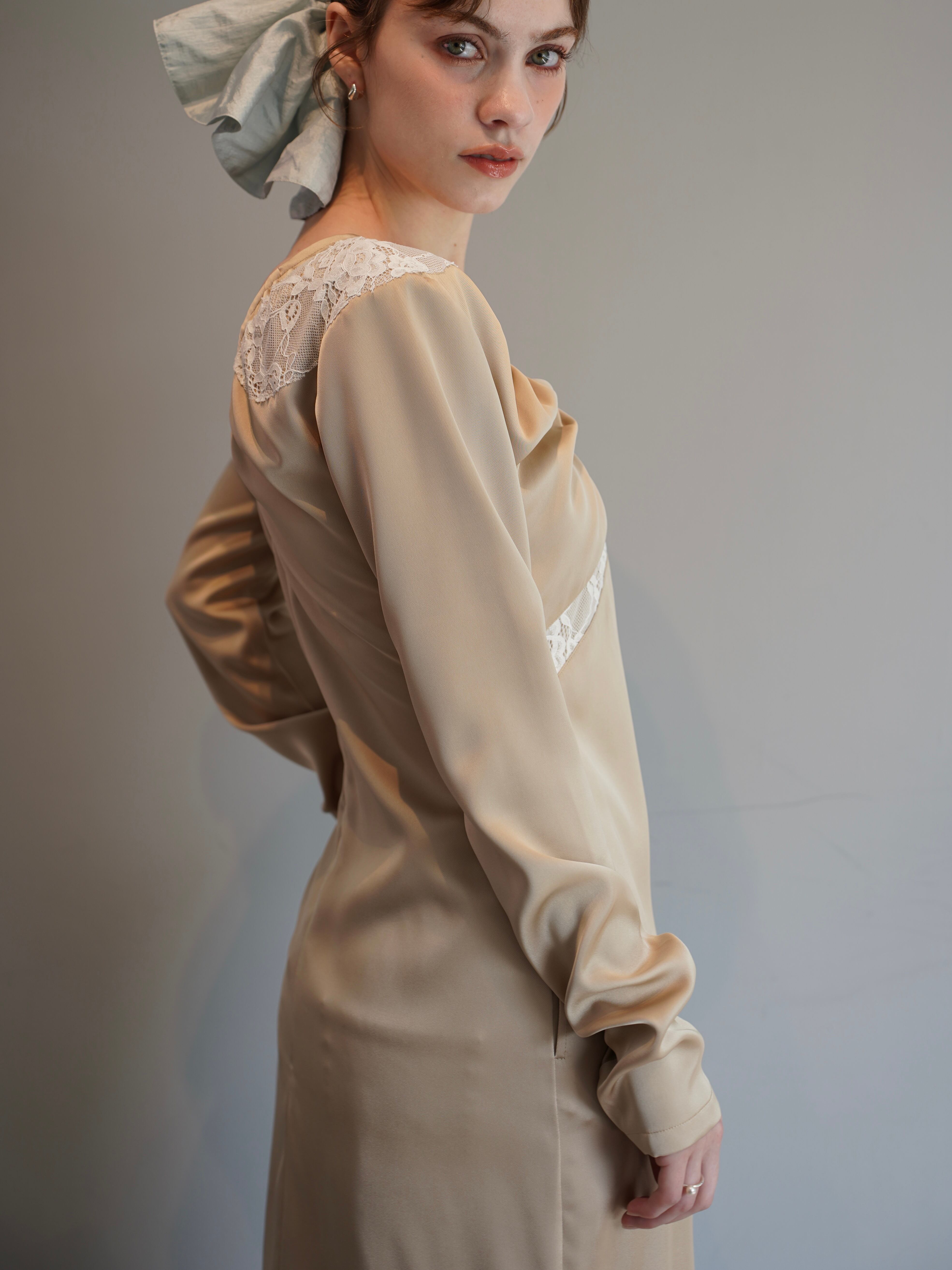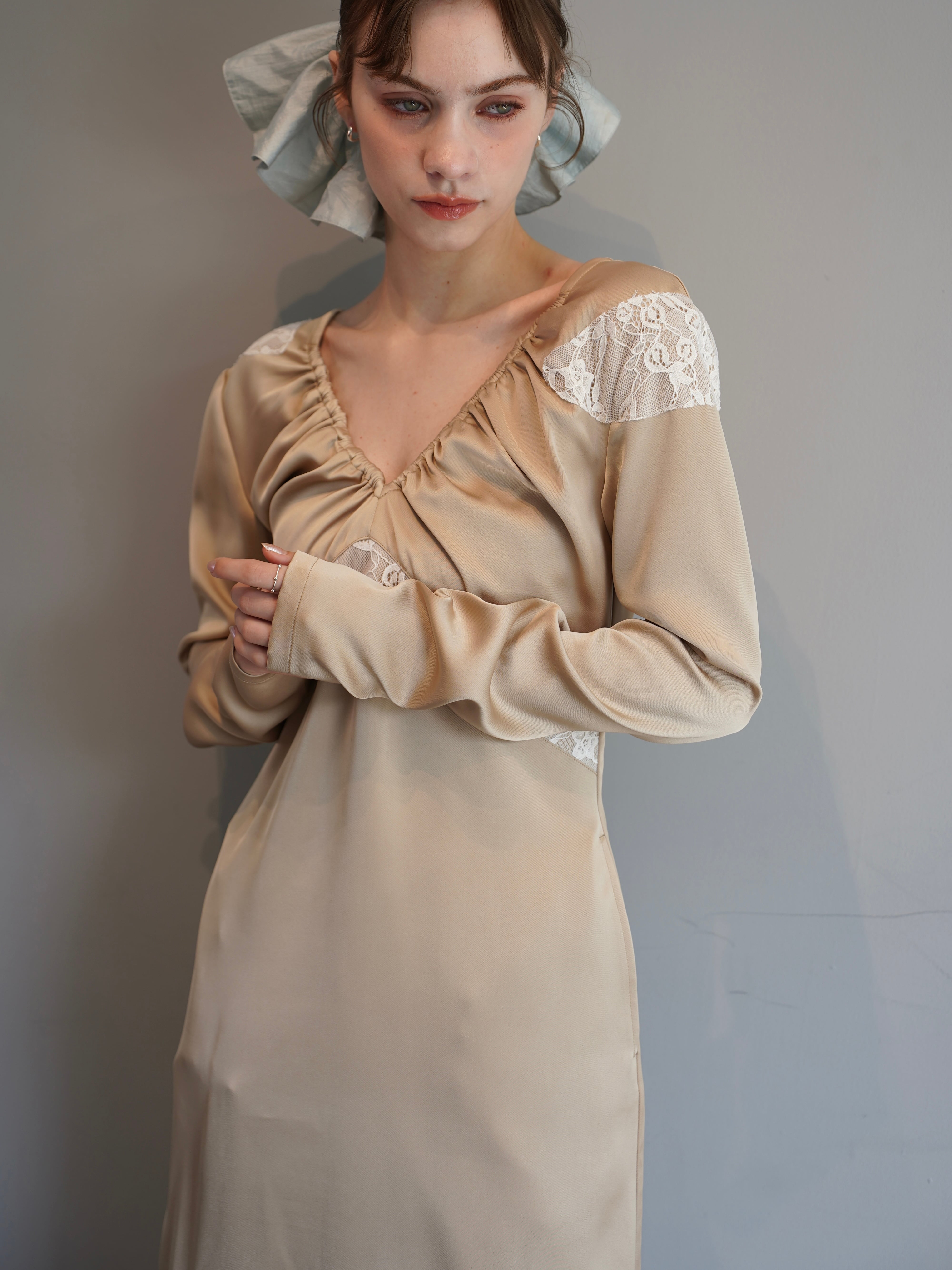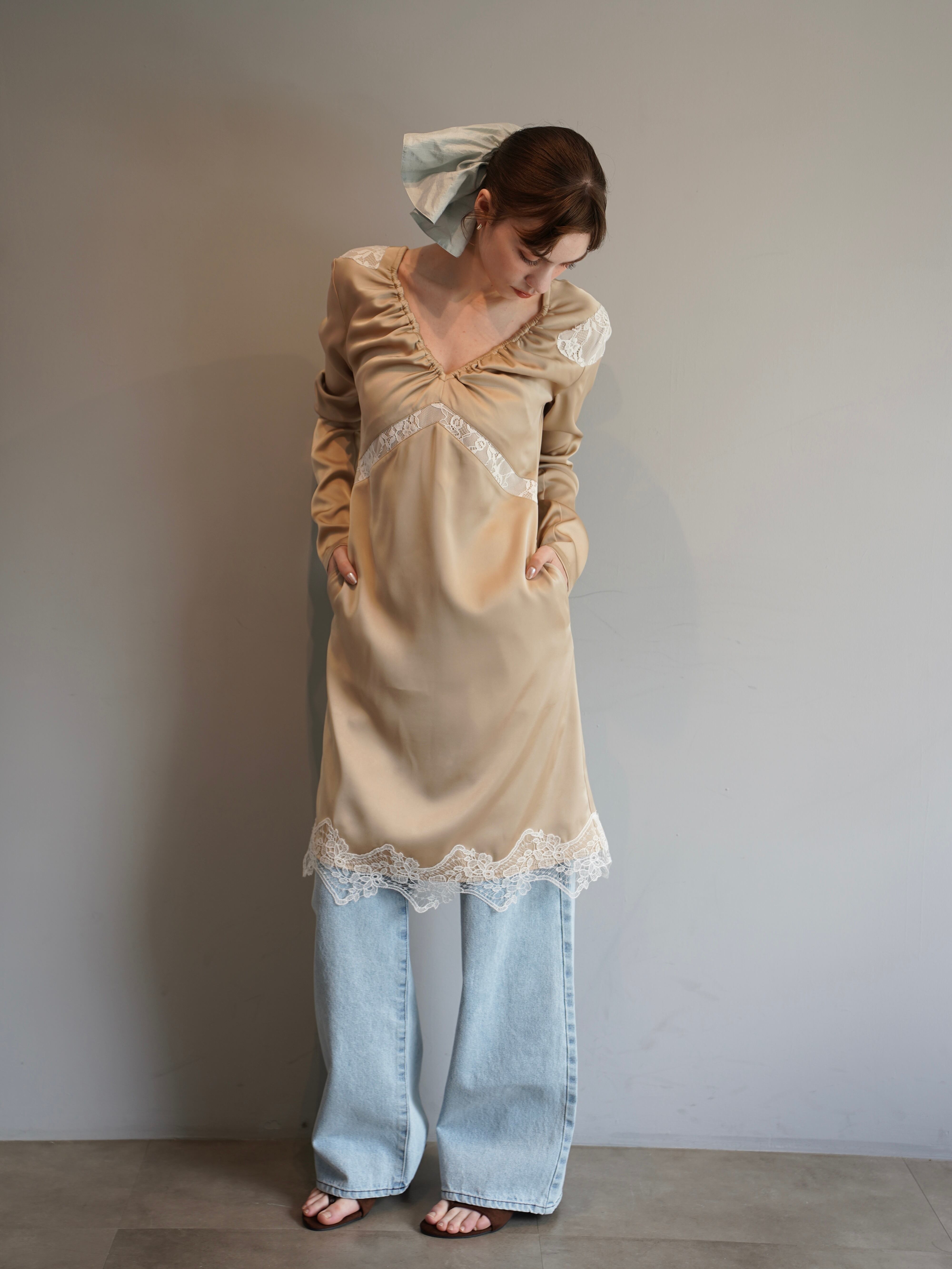 【OJYON】nocturne lace dress 【BEIGE】