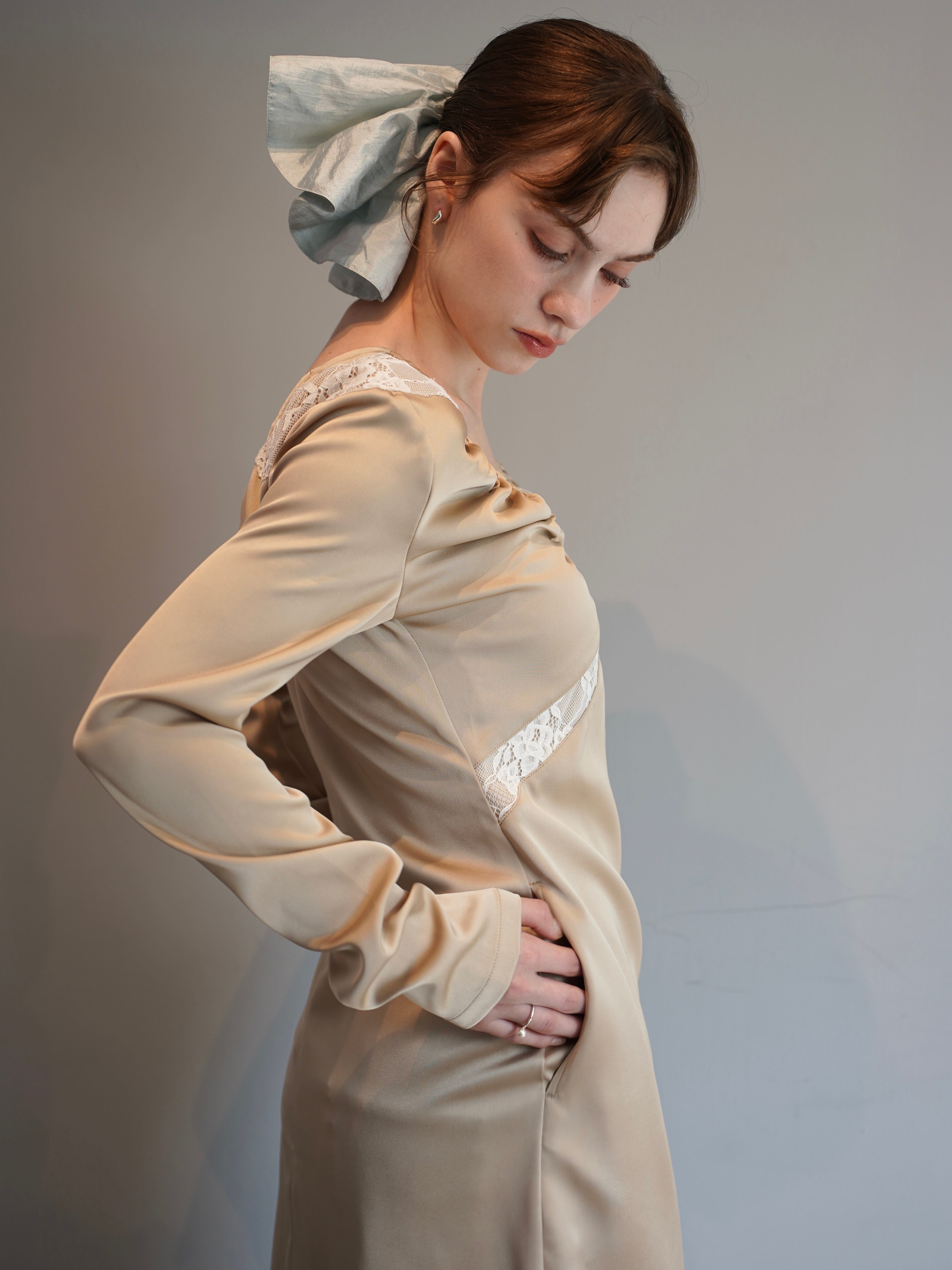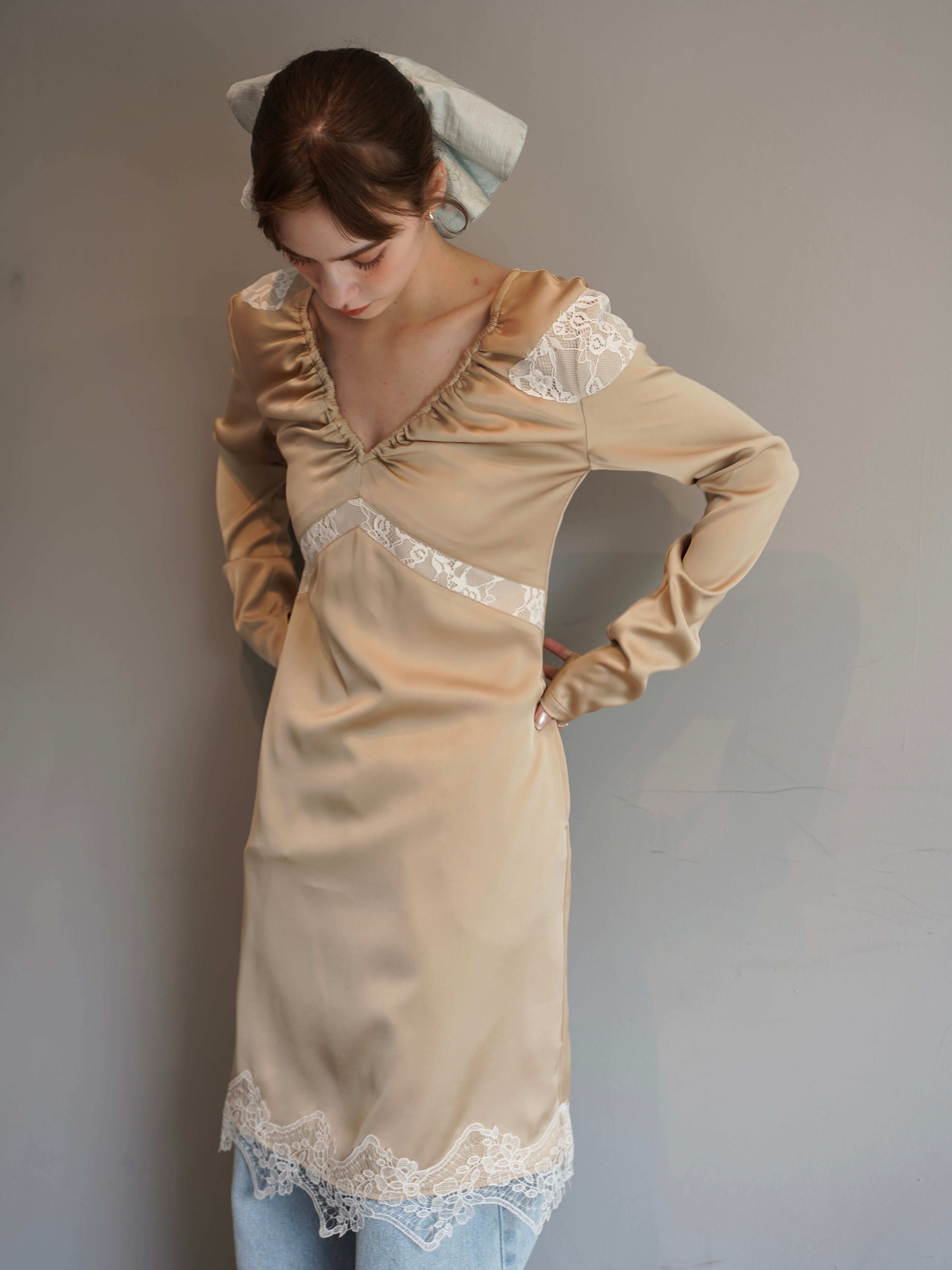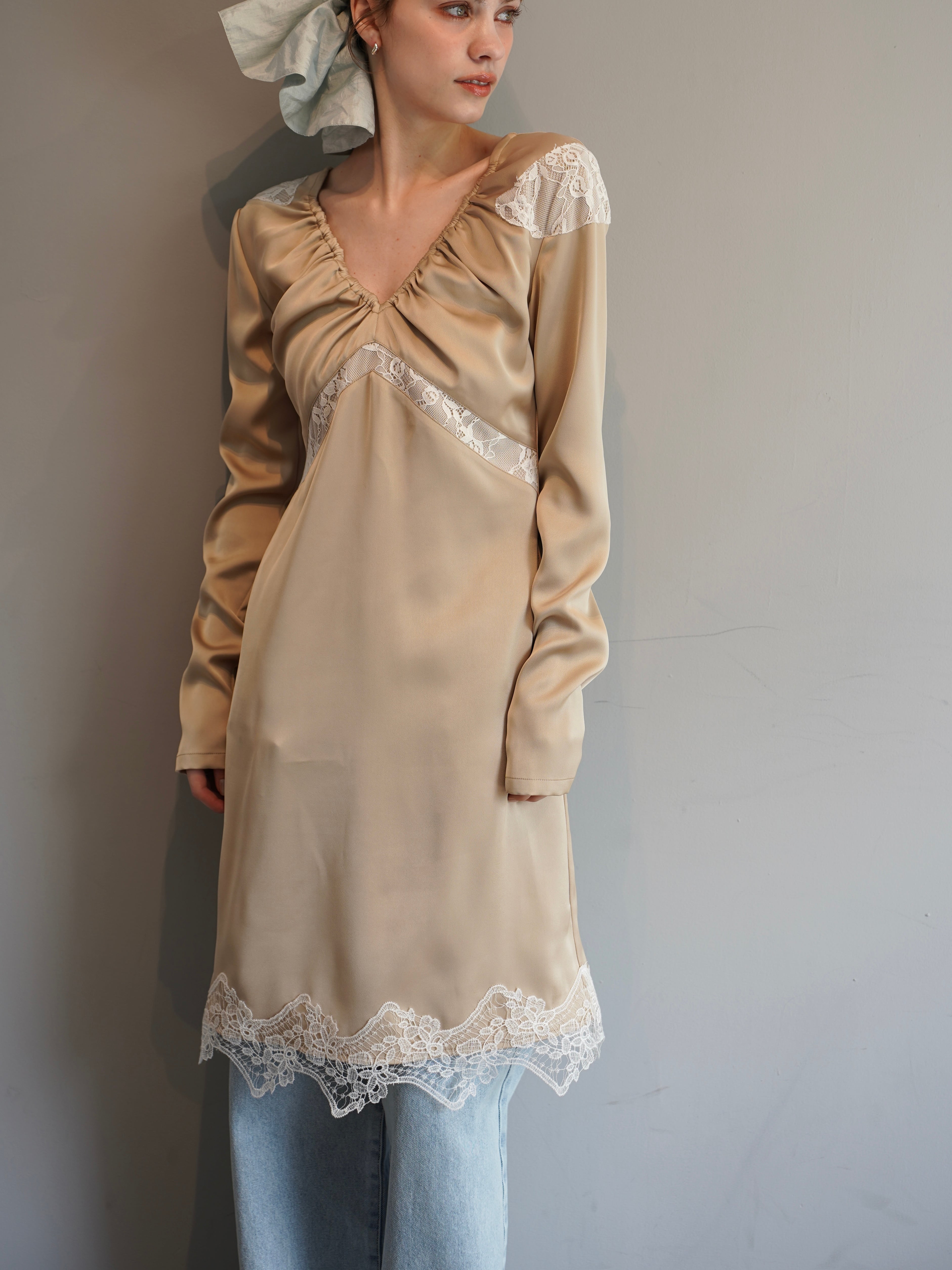 【OJYON】nocturne lace dress 【BEIGE】