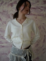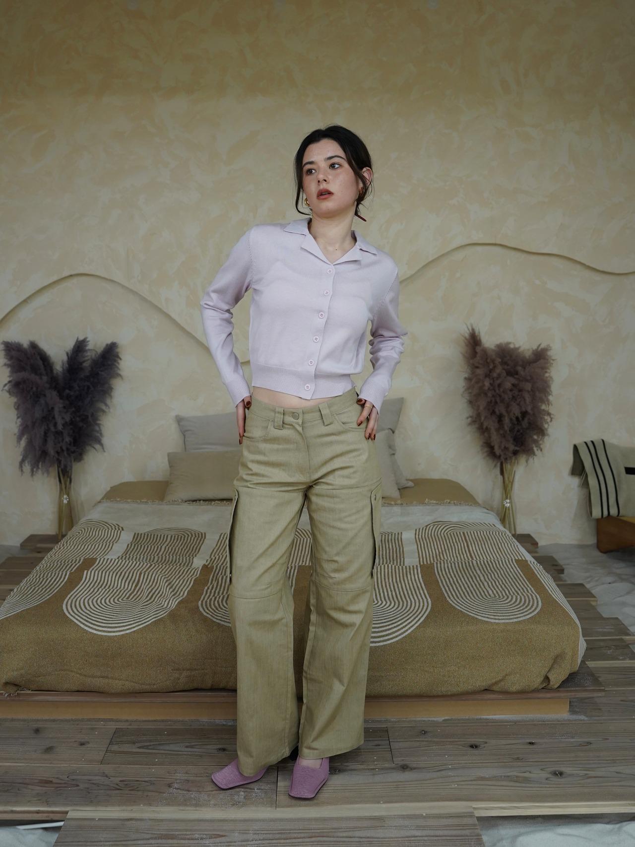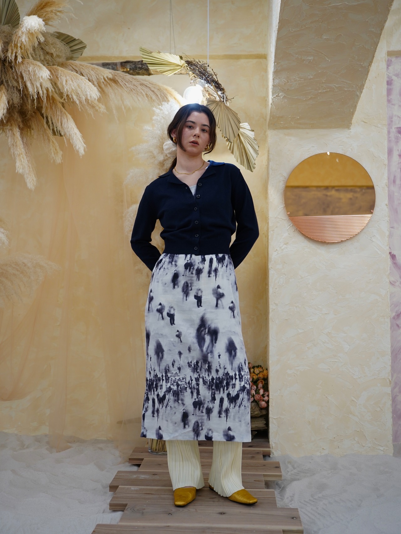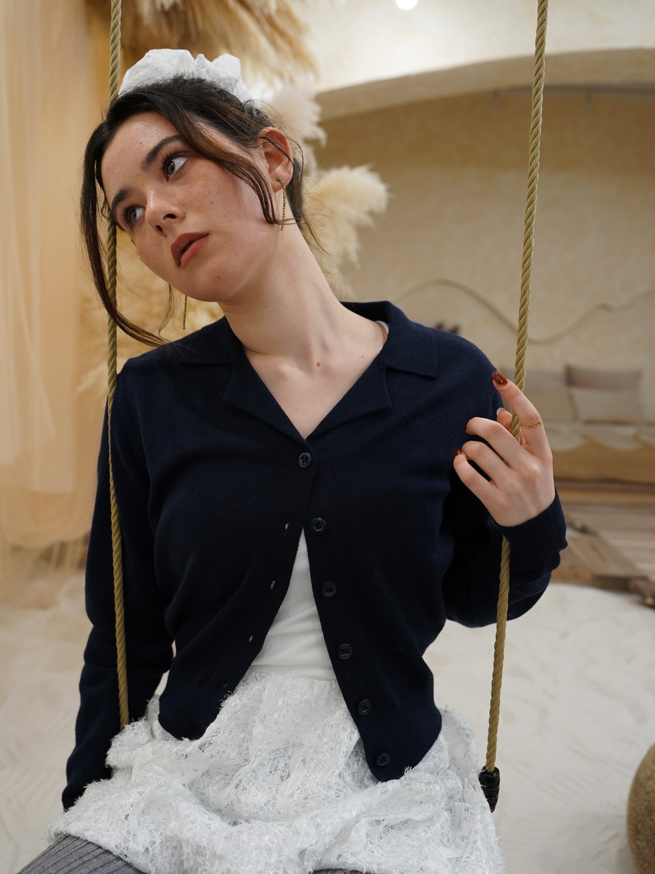 着回しとスタイルアップに富んだポロニットカーディガン。